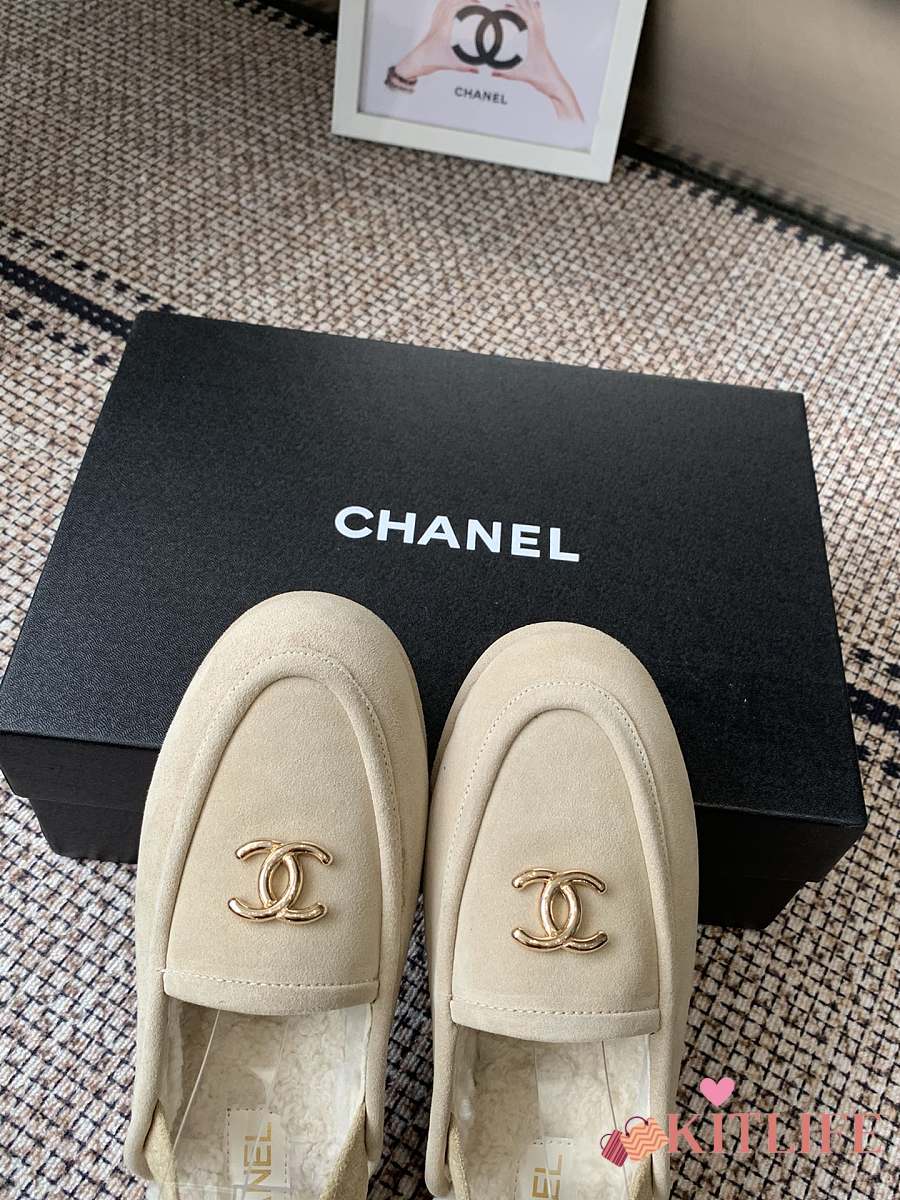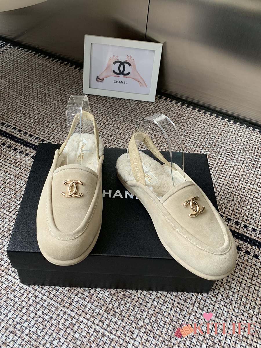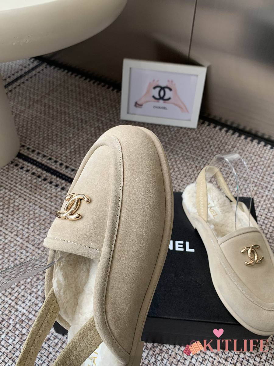 Kitlife Chanel Fur Sandals Cream Suede