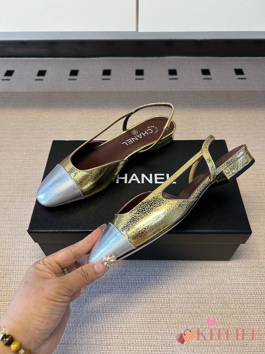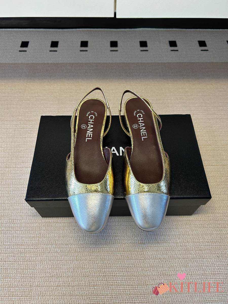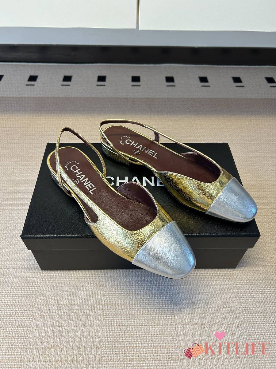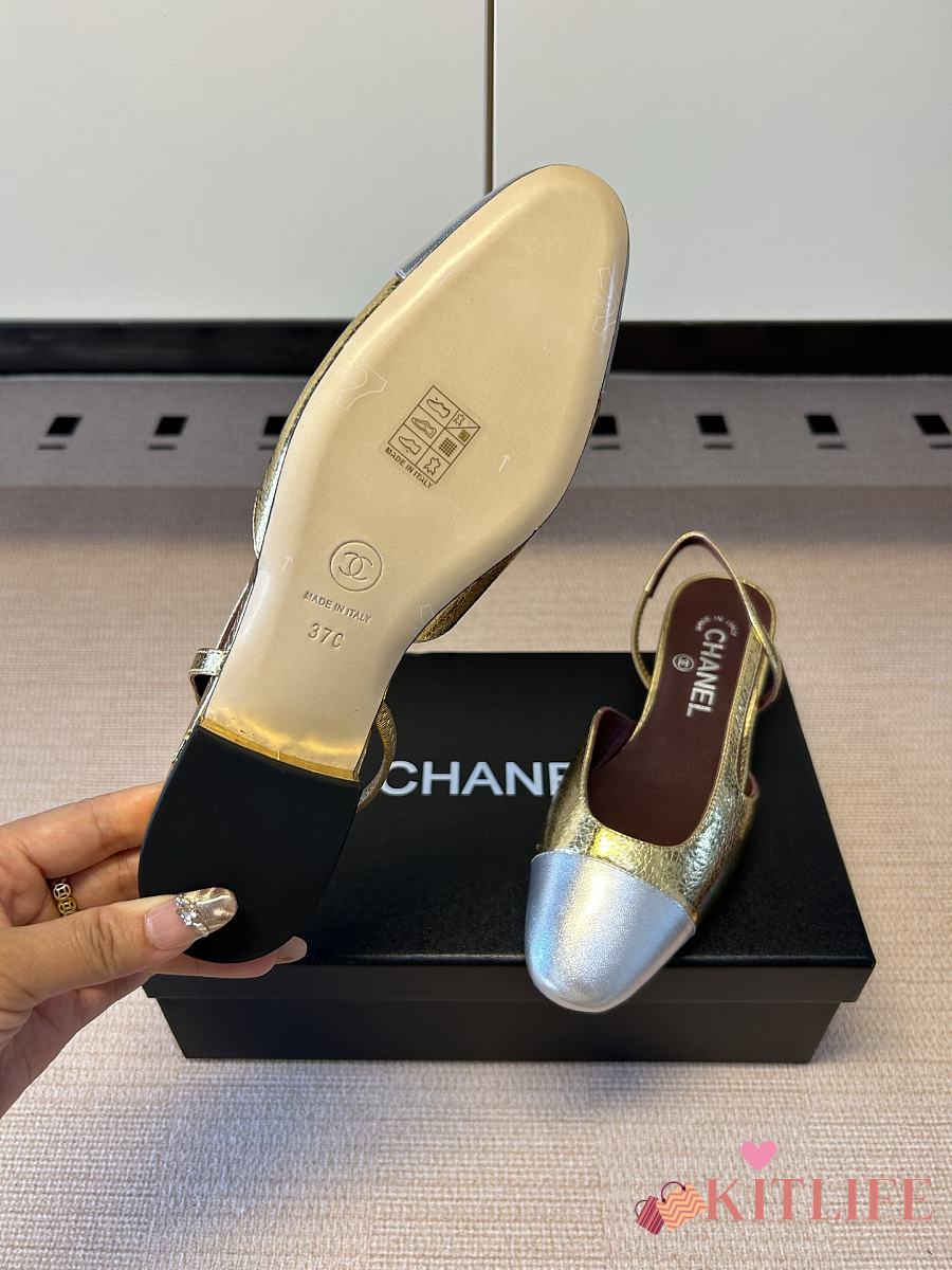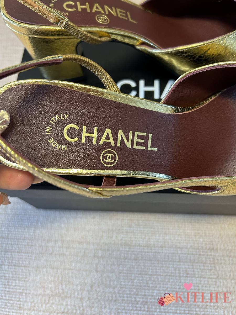 Kitlife Chanel Gold Cap Toe CC Slingback Sandals