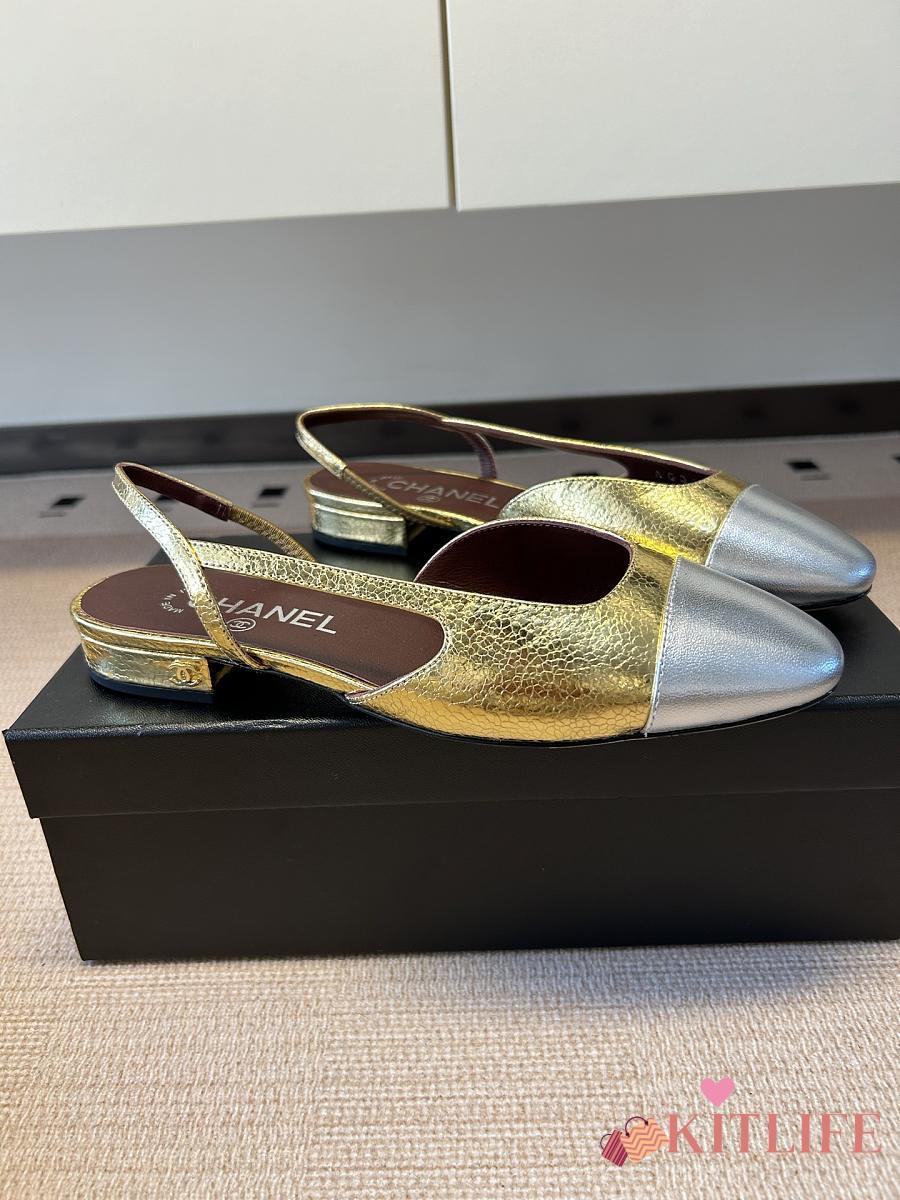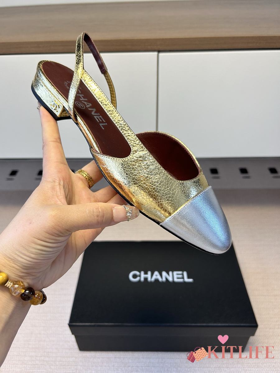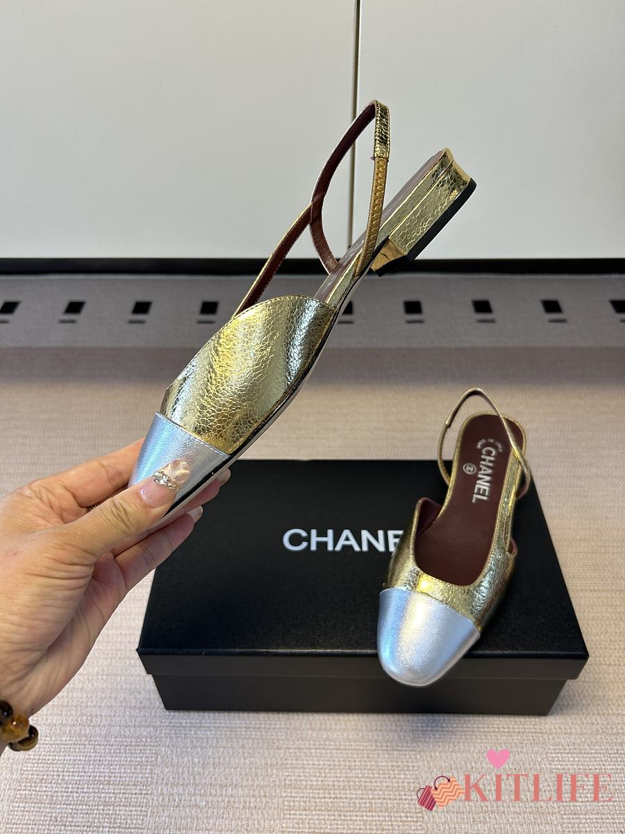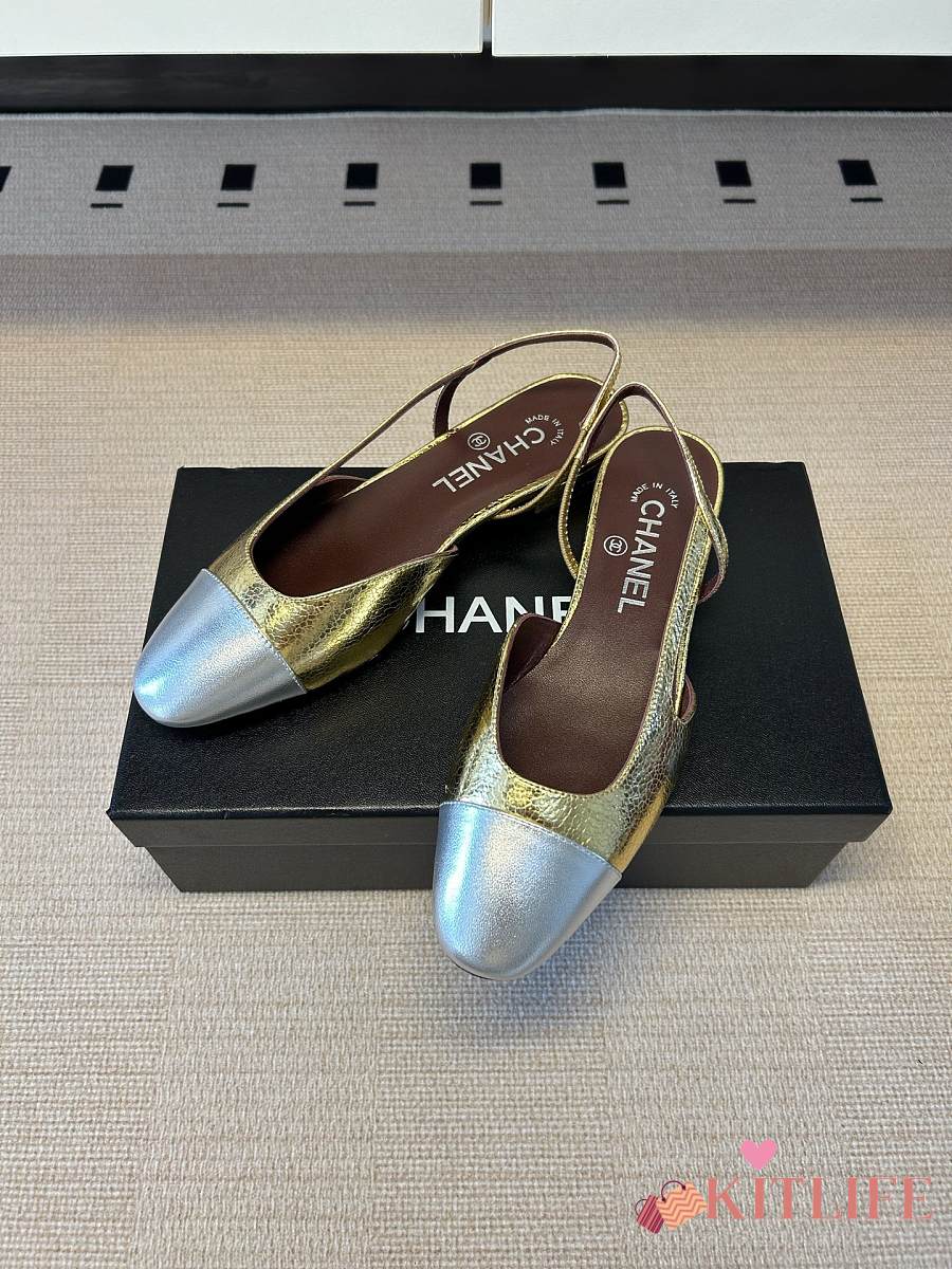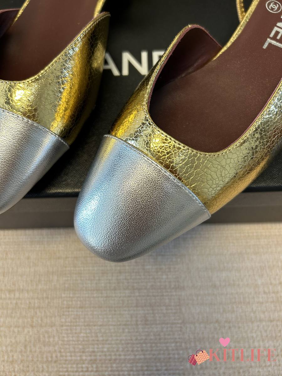 Kitlife Chanel Gold Cap Toe CC Slingback Sandals