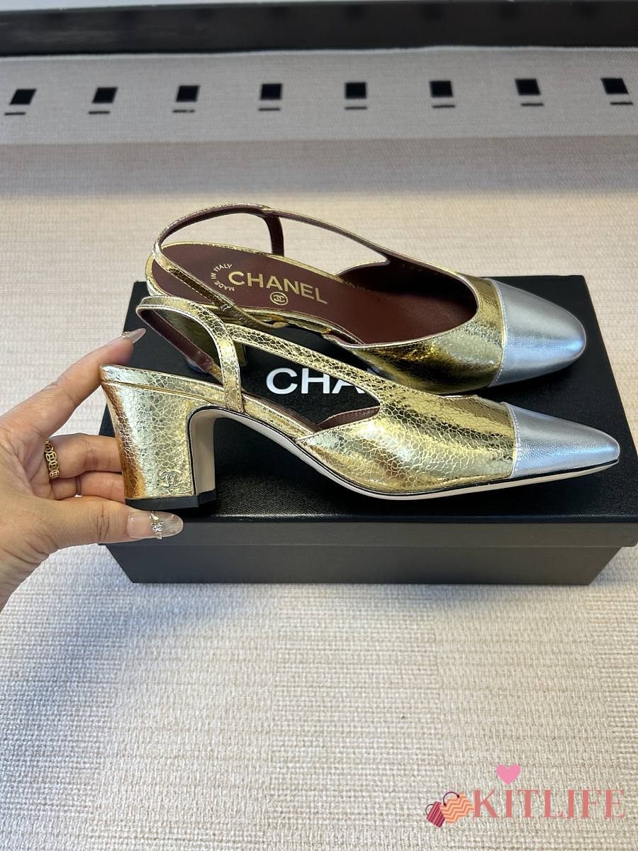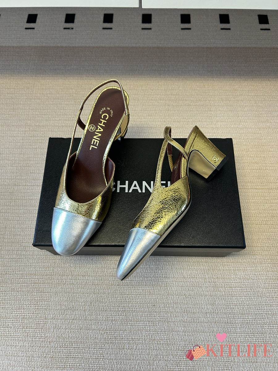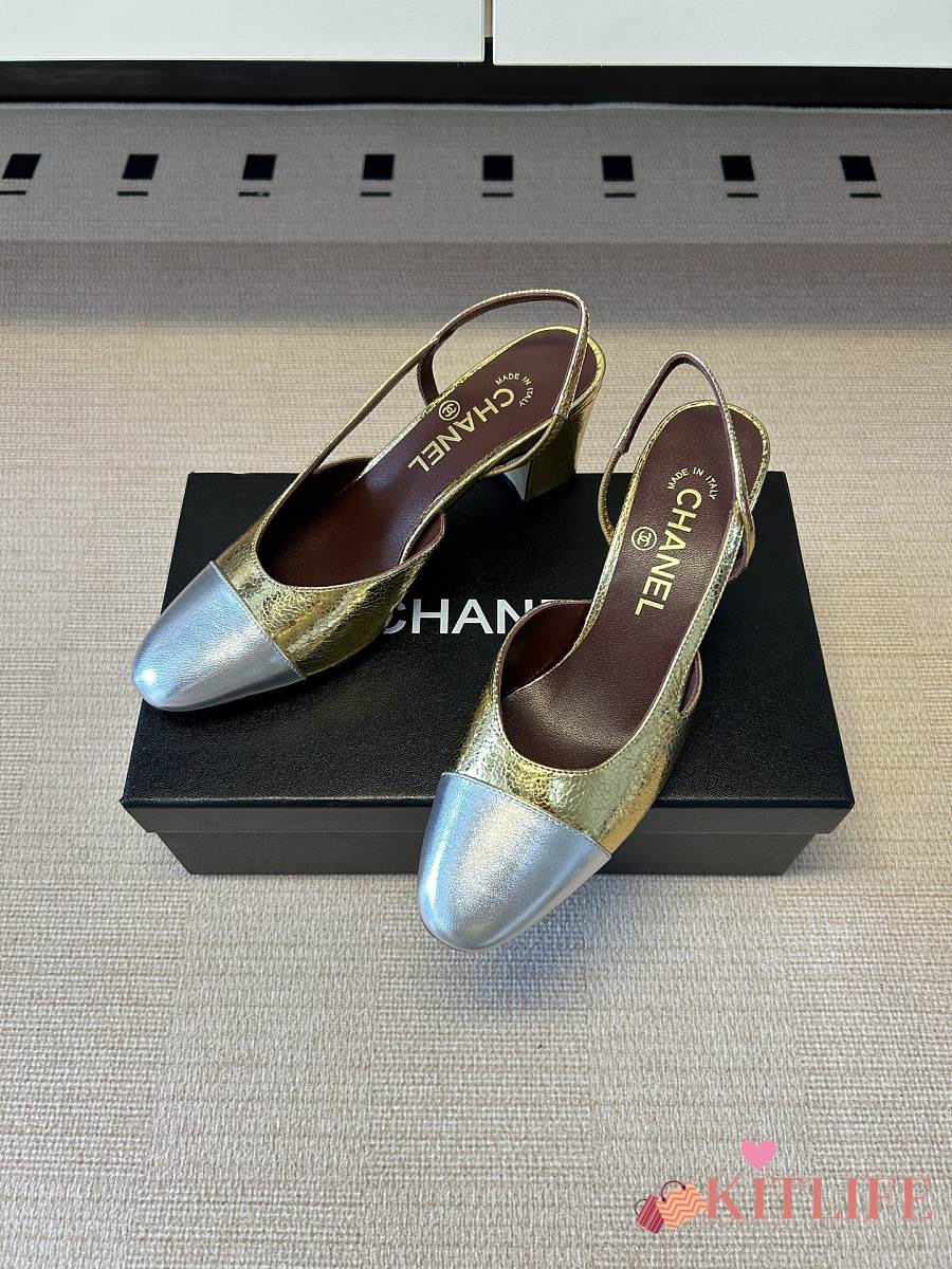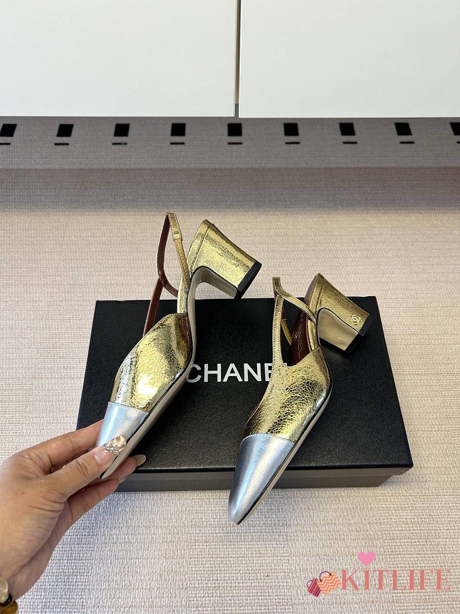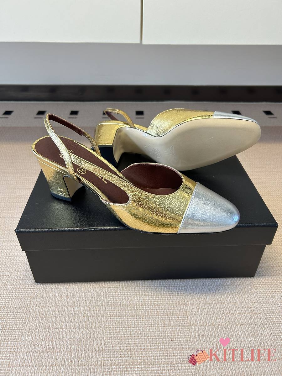 Kitlife Chanel Gold Cap Toe CC Slingback Sandals
