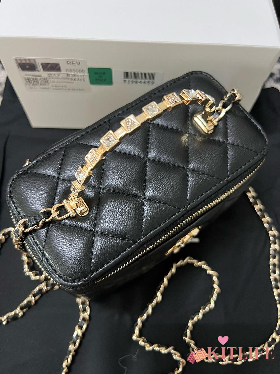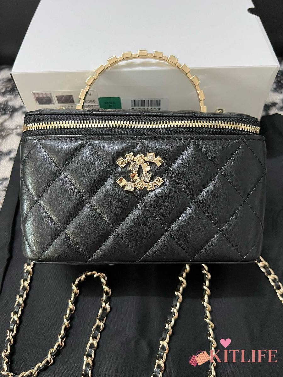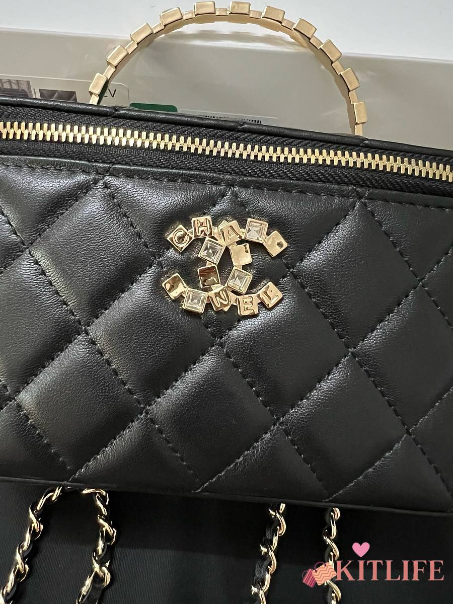 Kitlife Chanel Lambskin Quilted Crystal Top Handle Vanity Black 17cm