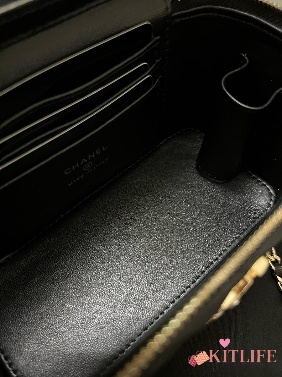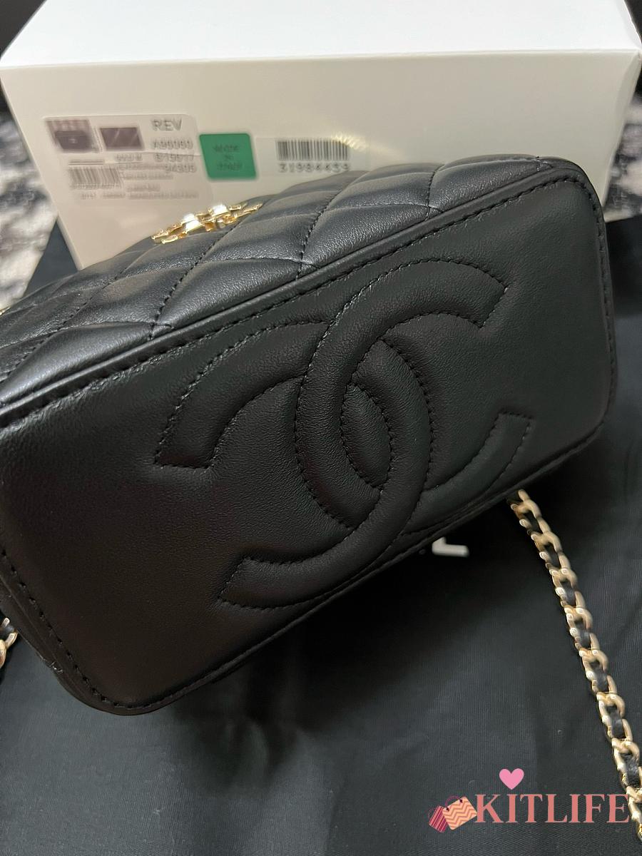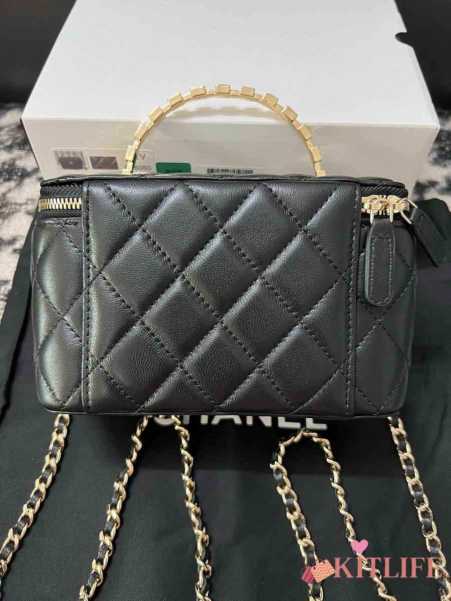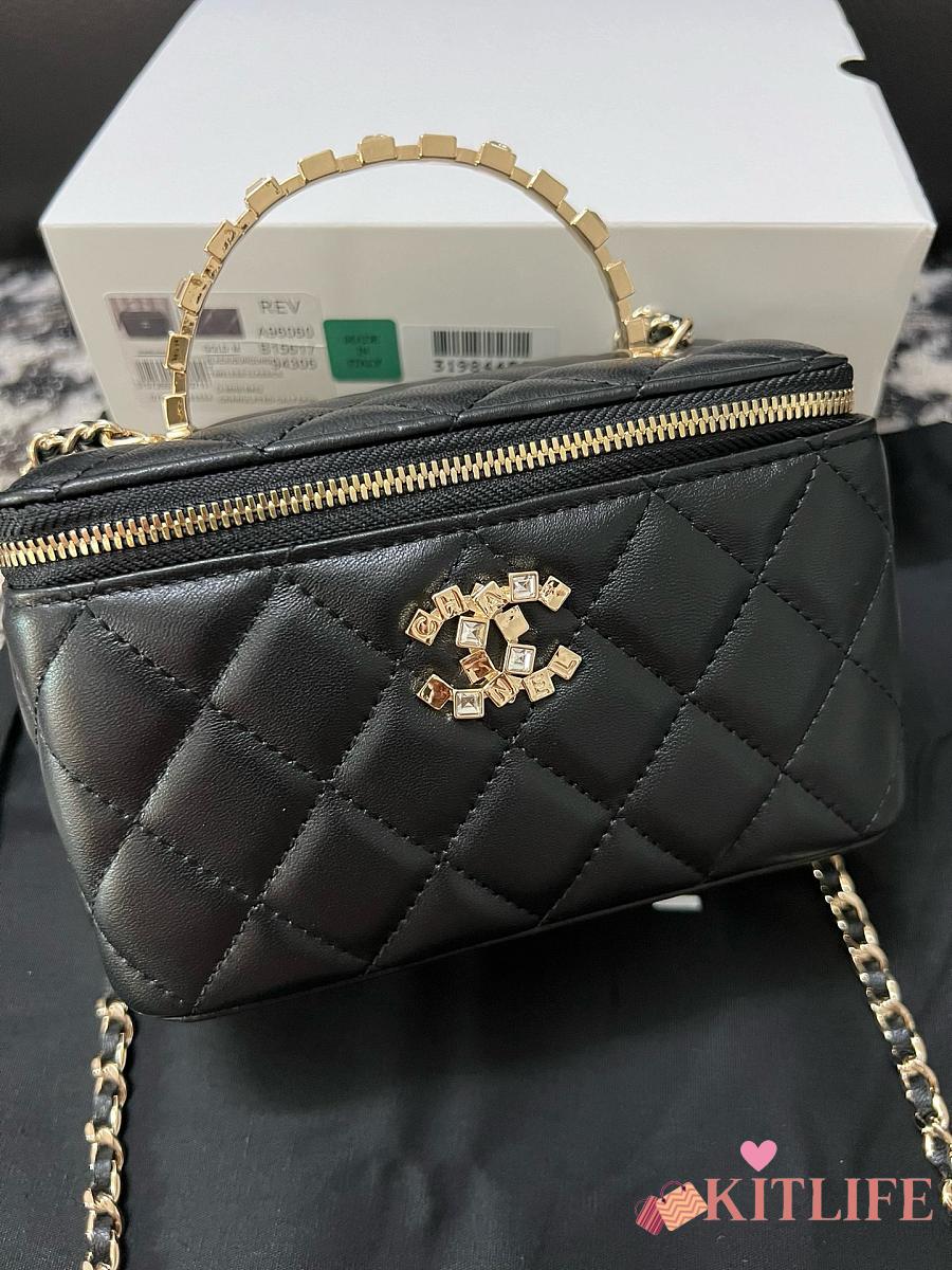 Kitlife Chanel Lambskin Quilted Crystal Top Handle Vanity Black 17cm