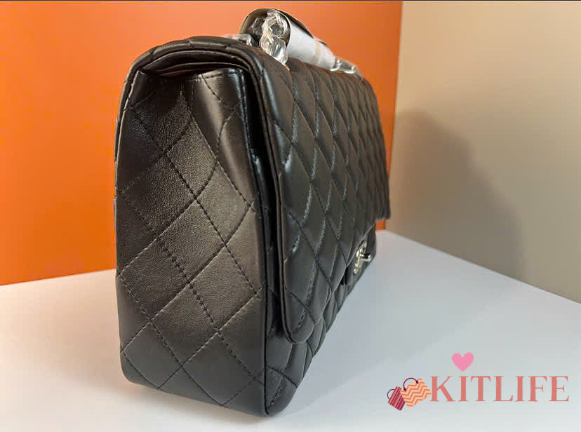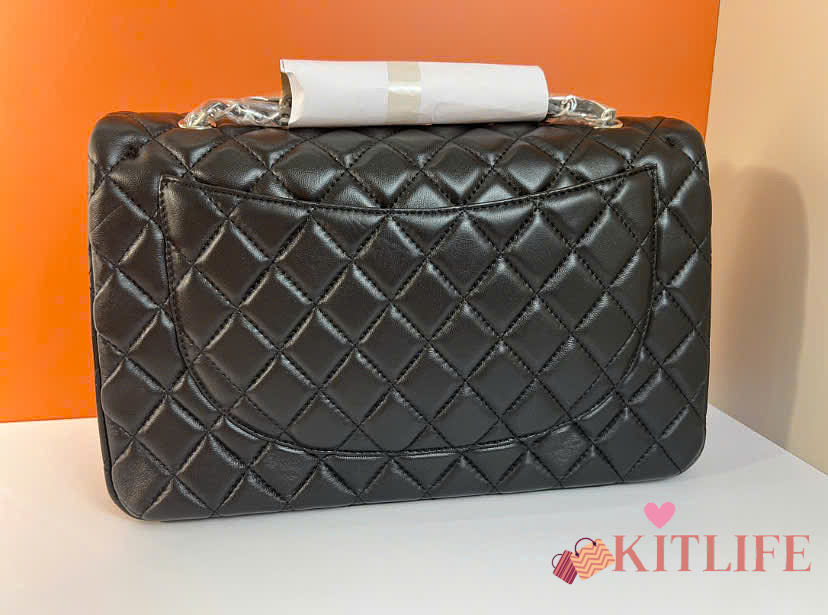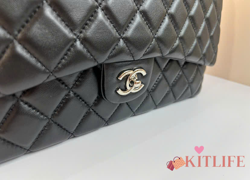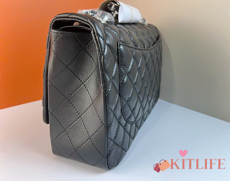 Kitlife Chanel Maxi Classic Flap Bag Black Silver Hardware 33x22x10cm