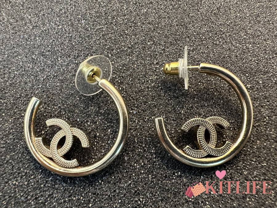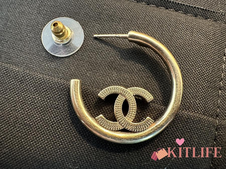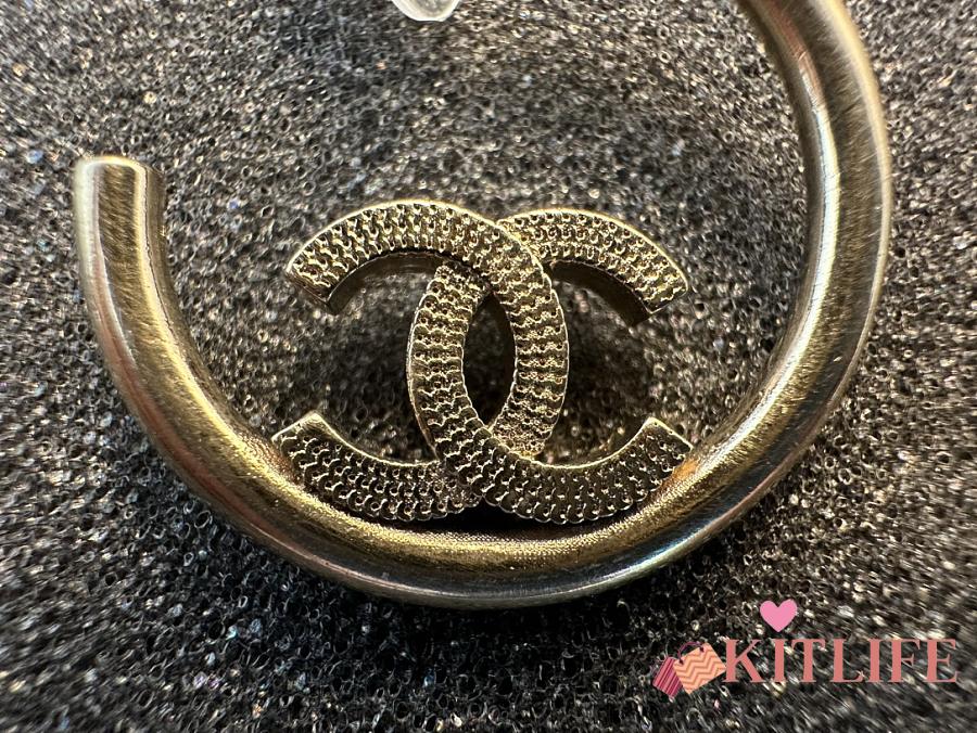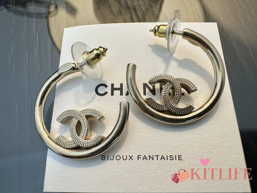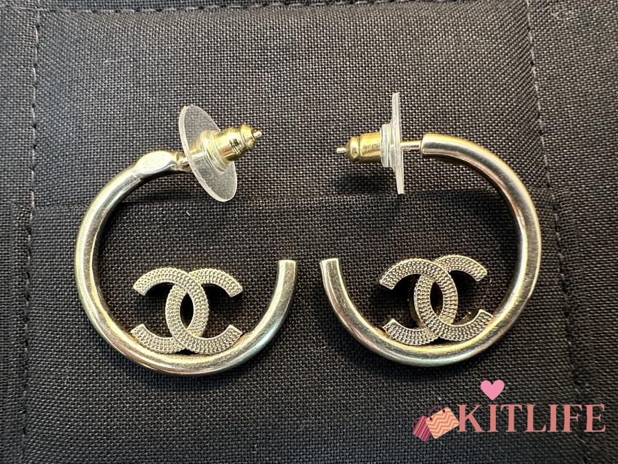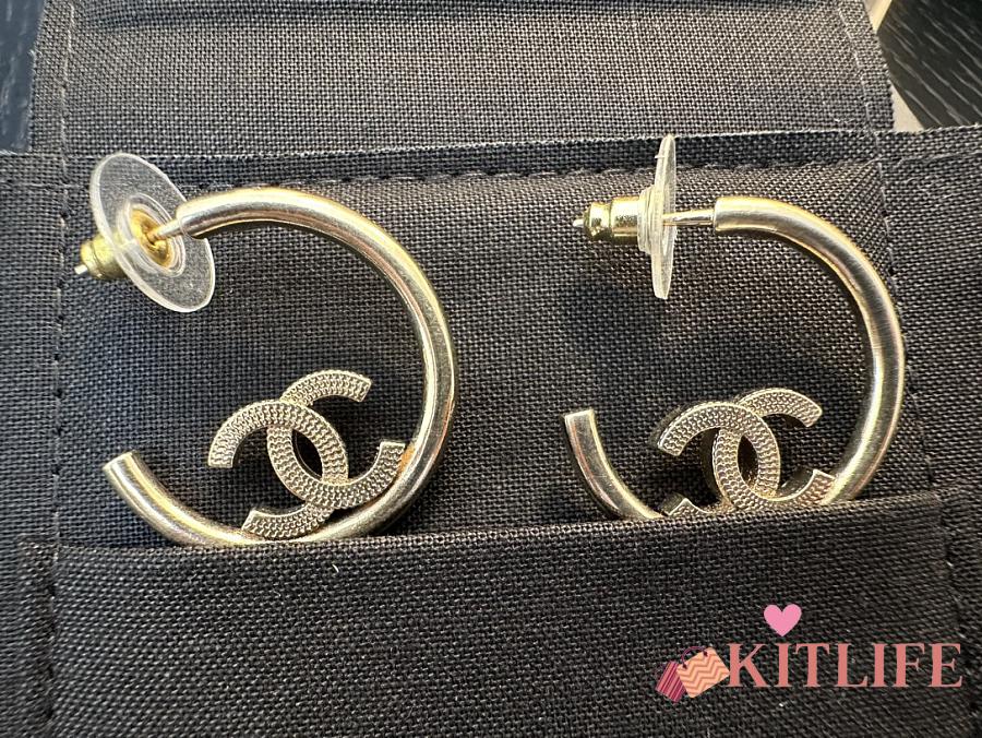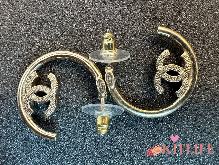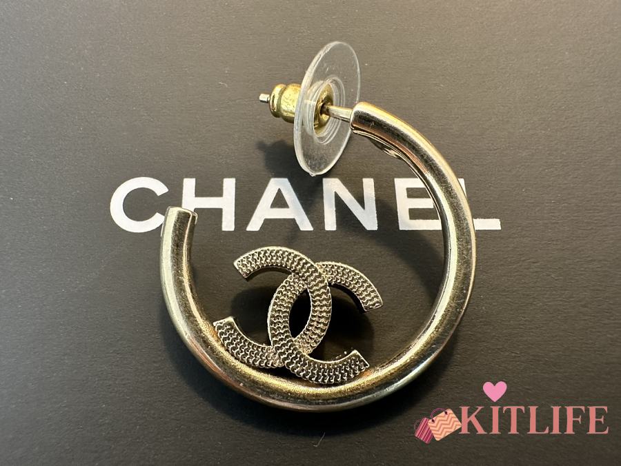 Kitlife Chanel Metal-Textured Cc-Hoop Earrings Gold