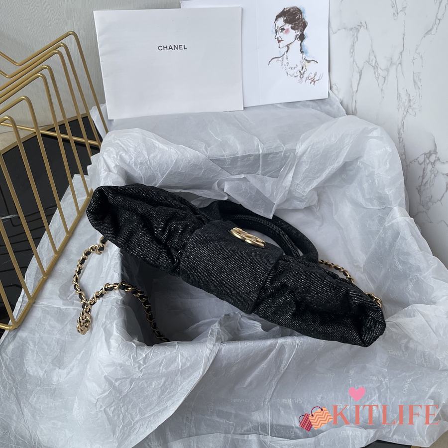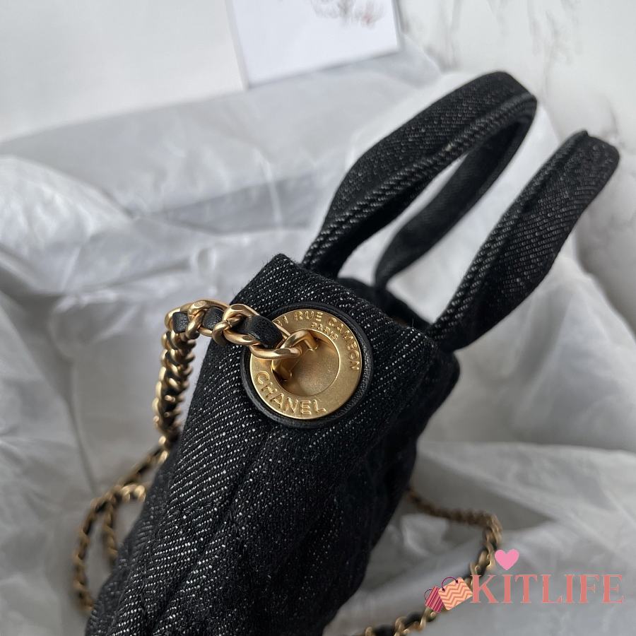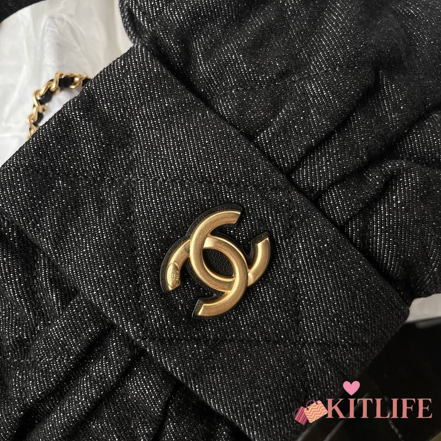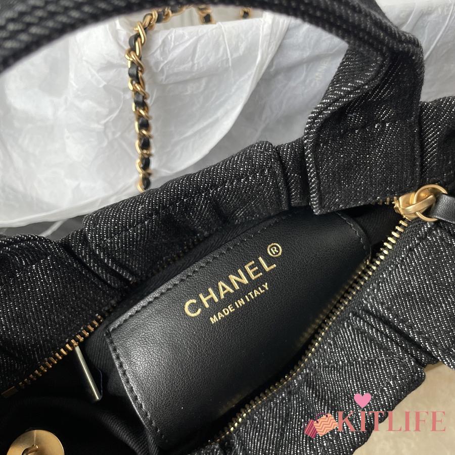 Kitlife Chanel Mini Bow Bag Black Denim & Gold Metallic AS5849 18x26x5cm
