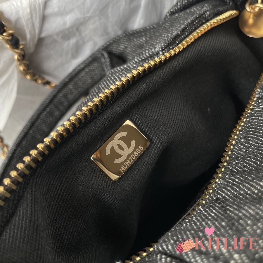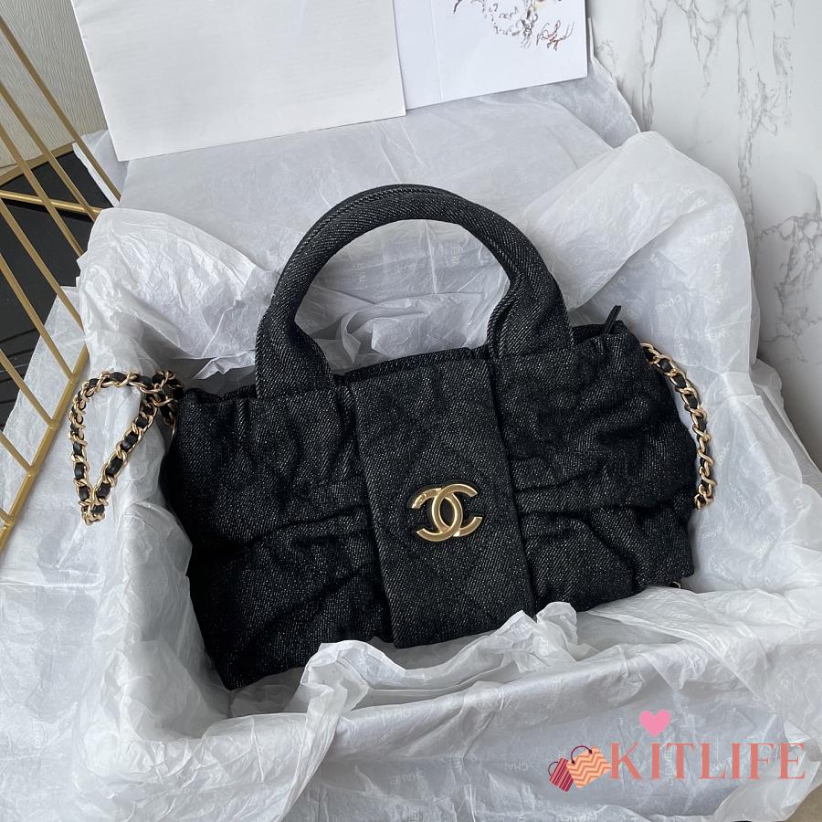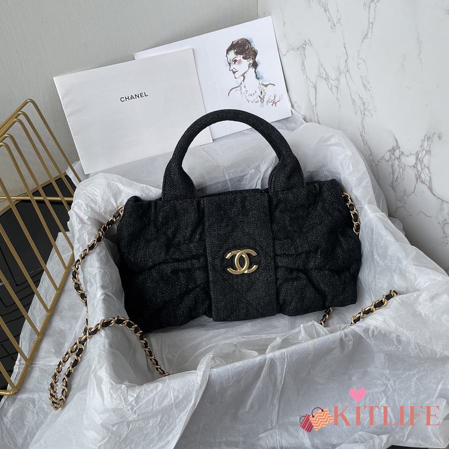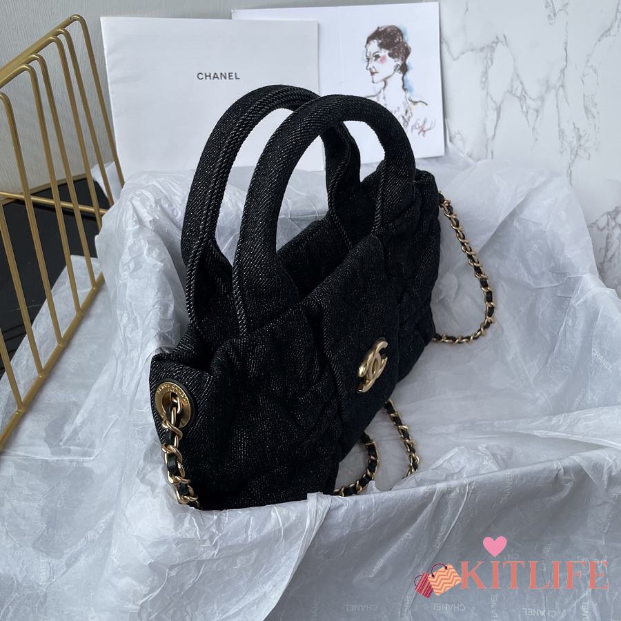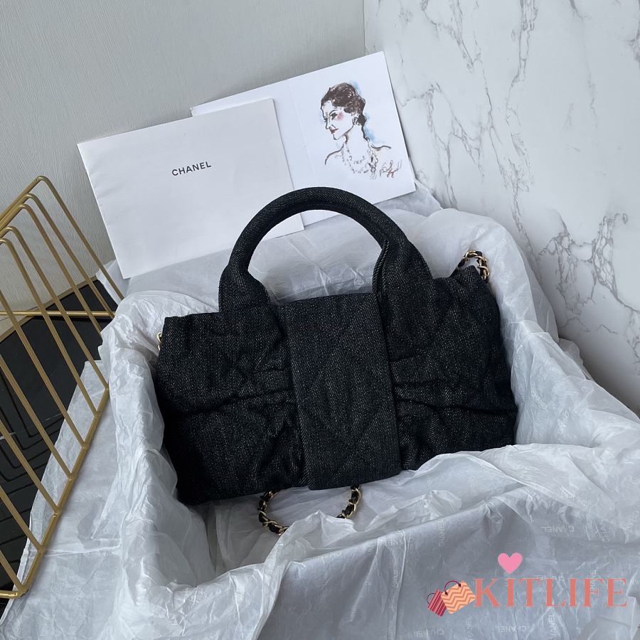 Kitlife Chanel Mini Bow Bag Black Denim & Gold Metallic AS5849 18x26x5cm