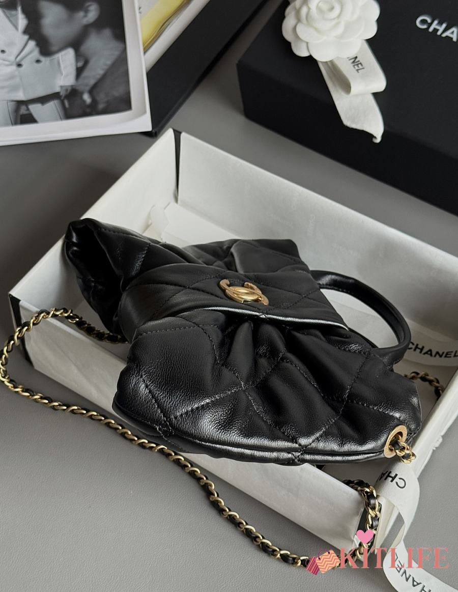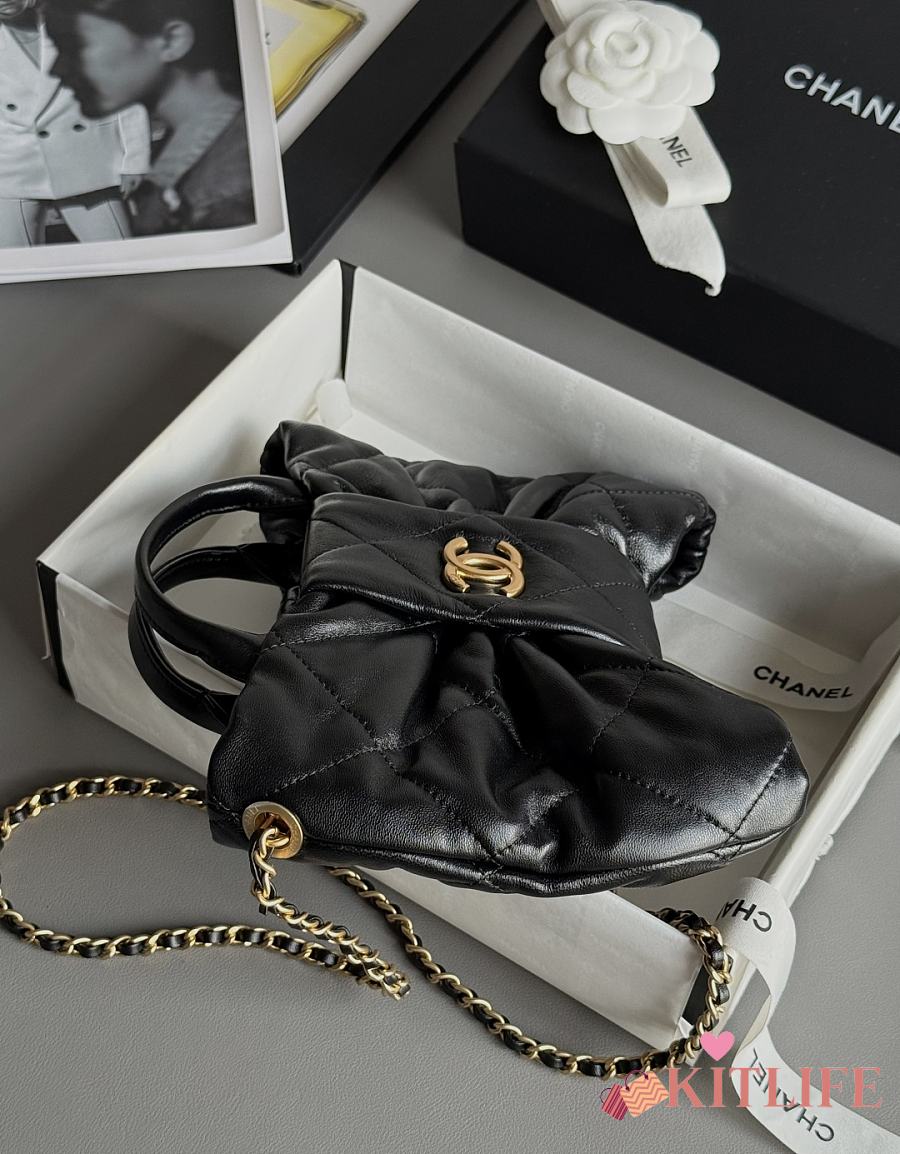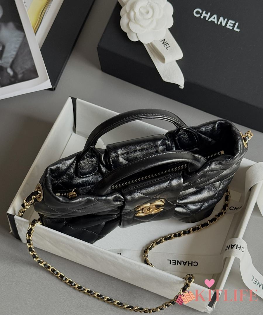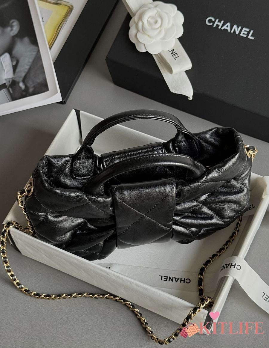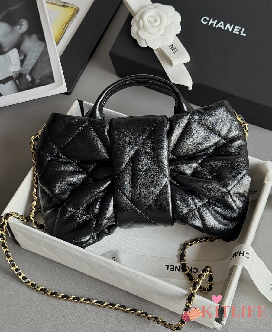 Kitlife Chanel Mini Bow Bag Black Shiny Lambskin & Gold Plated Metal AS5849 18x26x5cm