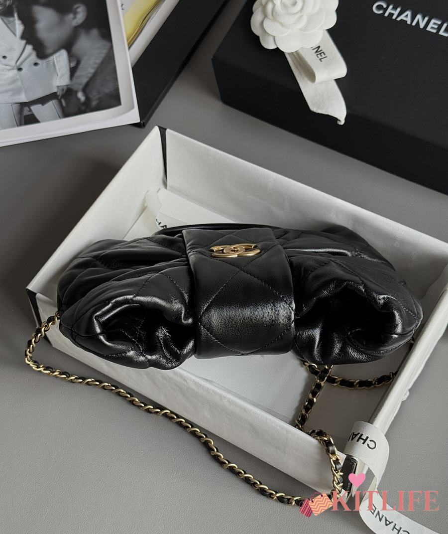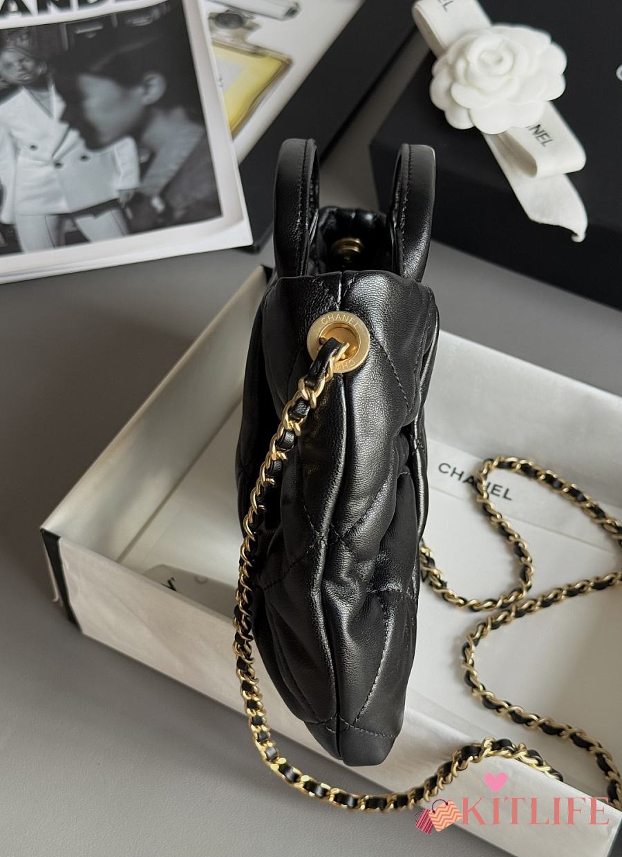 Kitlife Chanel Drawstring Handbag Black Leather & Gold Metallic AS5293 30x26x14cm