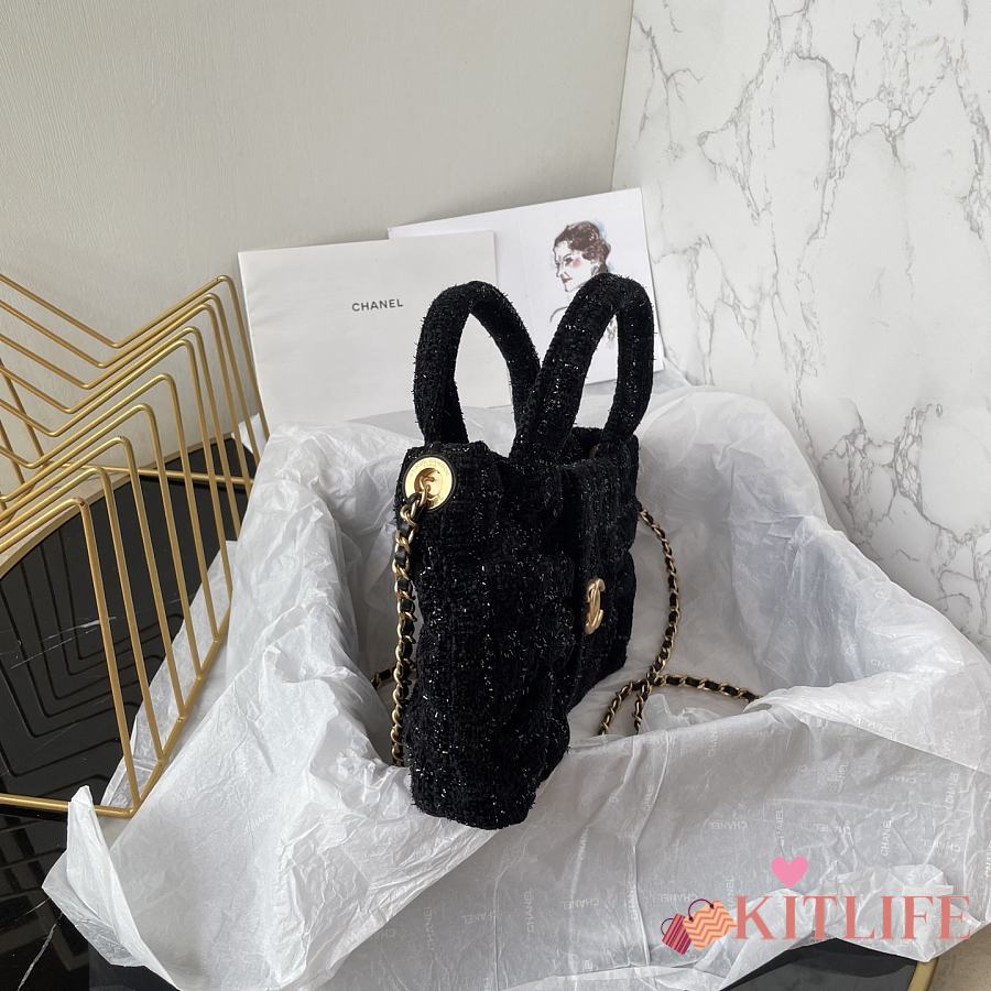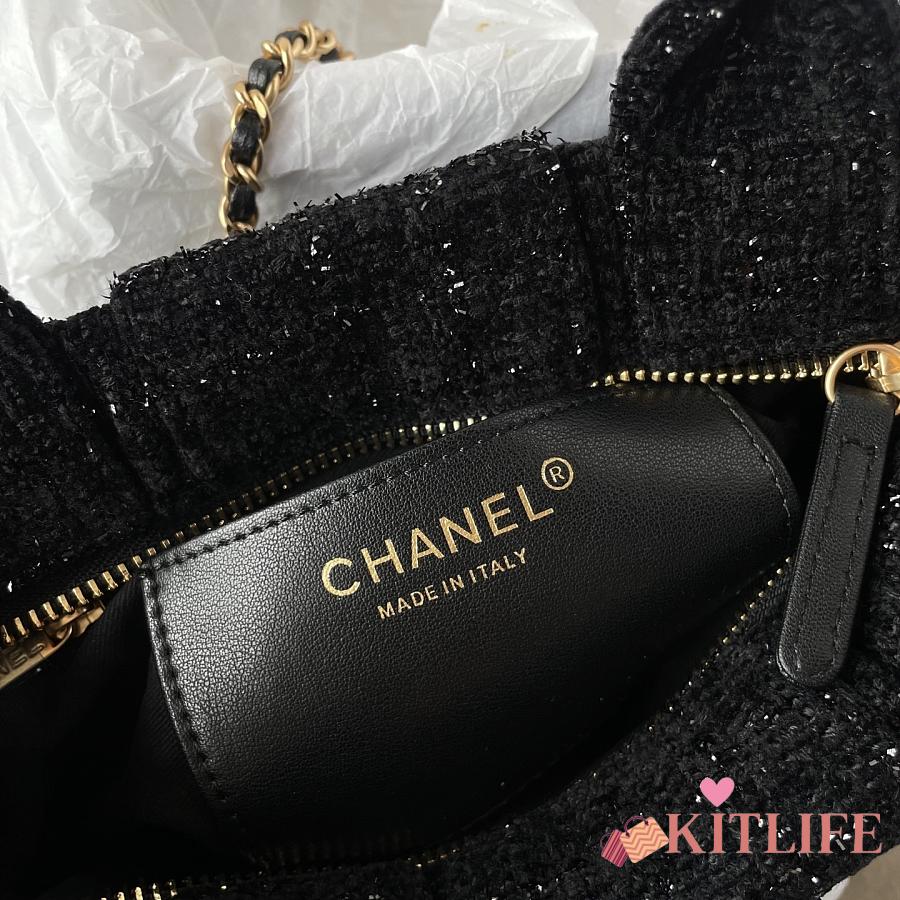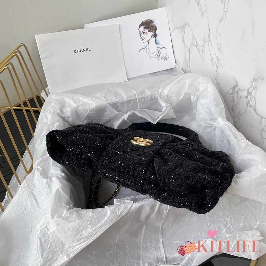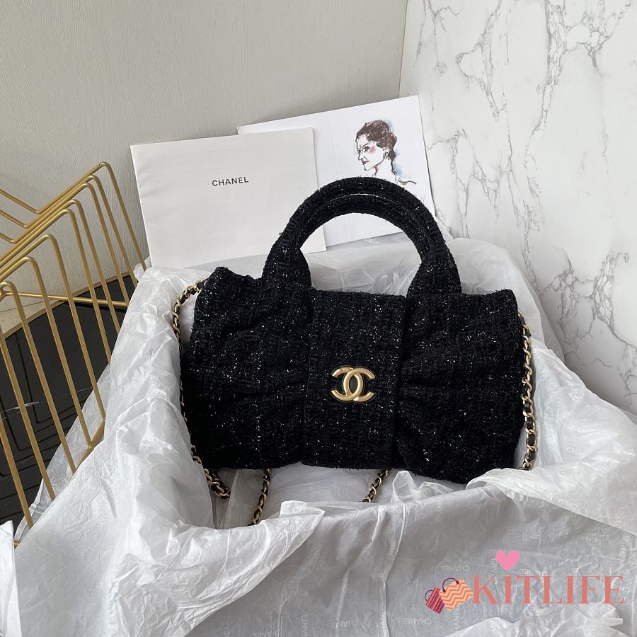 Kitlife Chanel Mini Bow Bag Black Tweed & Gold Plated Metal AS5849 18x26x5cm
