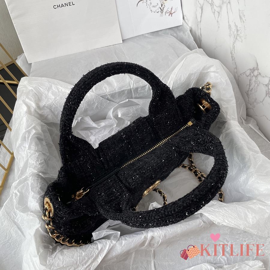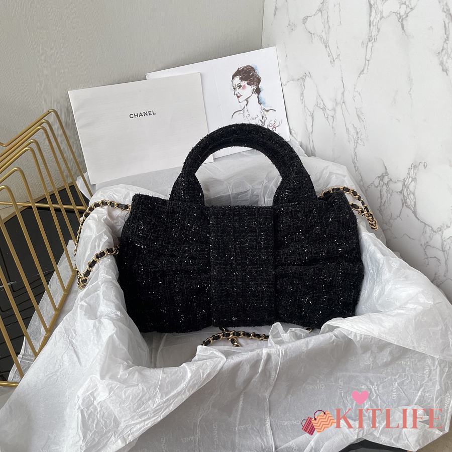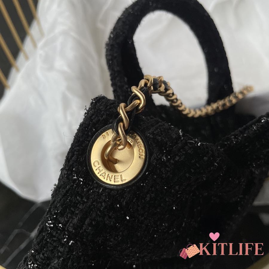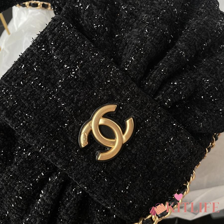 Kitlife Chanel Mini Bow Bag Black Tweed & Gold Plated Metal AS5849 18x26x5cm