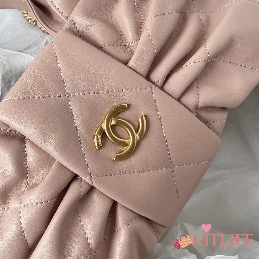Kitlife Chanel 25s Drawstring Bucket Hobo Bag Beige Leather 20x22x12.5cm