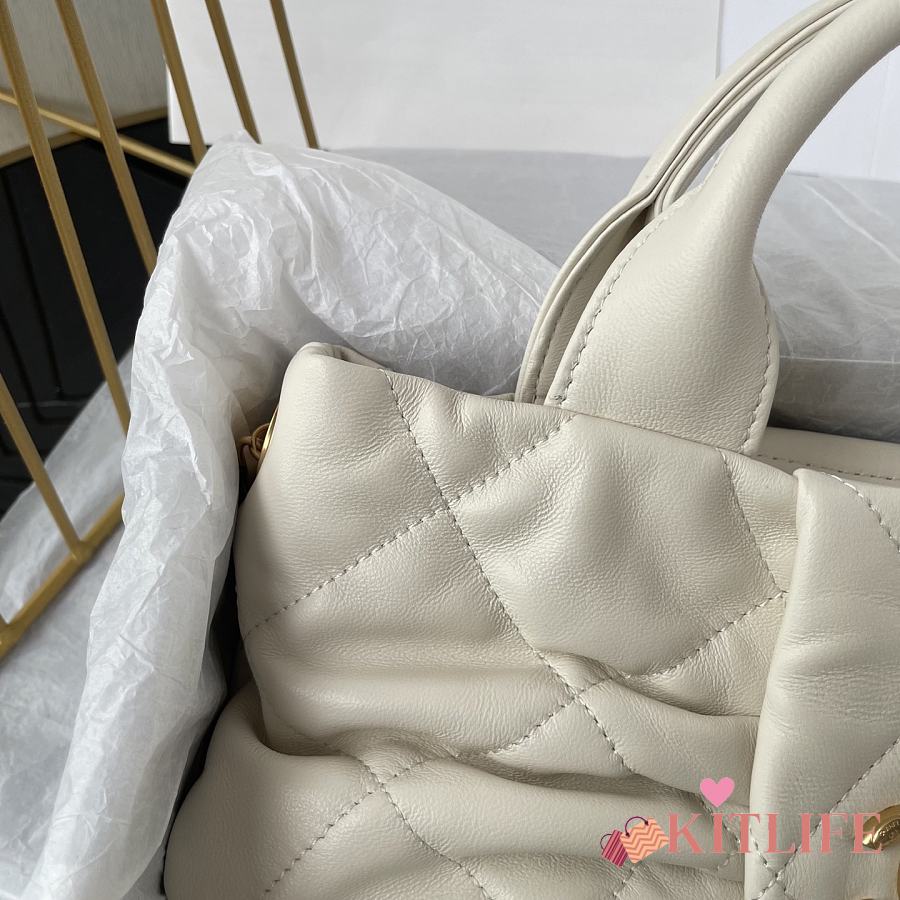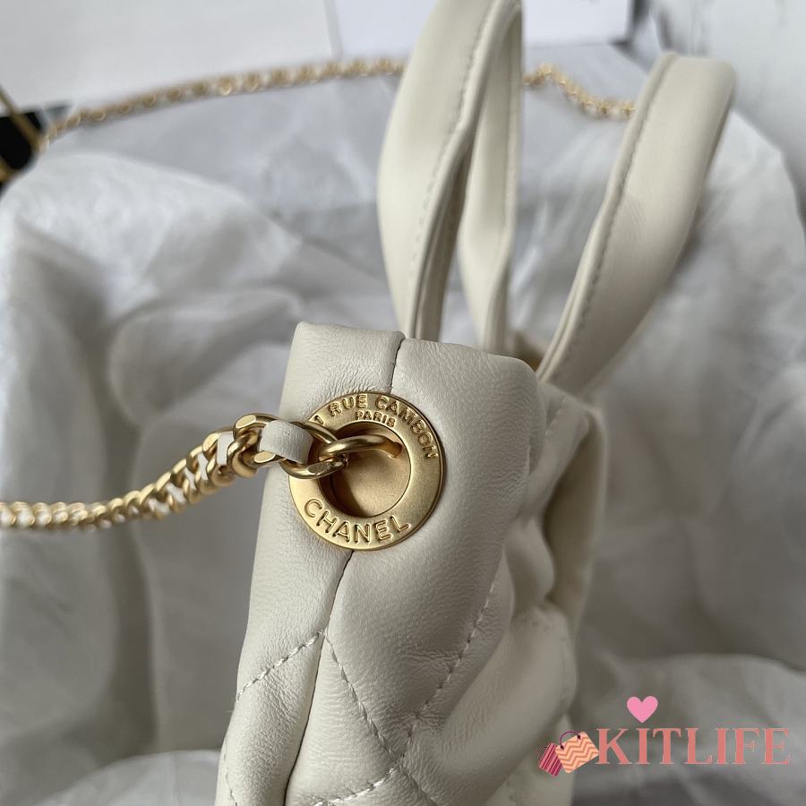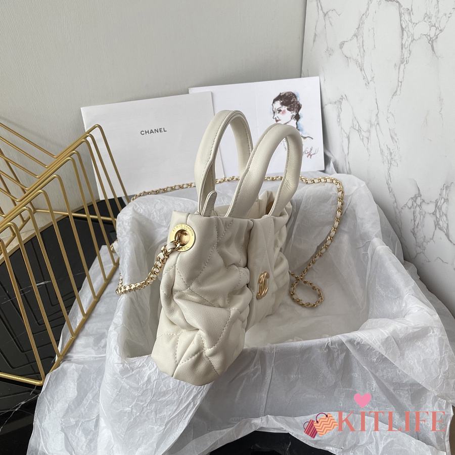 Kitlife Chanel Mini Handle Bowling Ball Classic Quilted Flap Bag White 18.5x11.5x10cm
