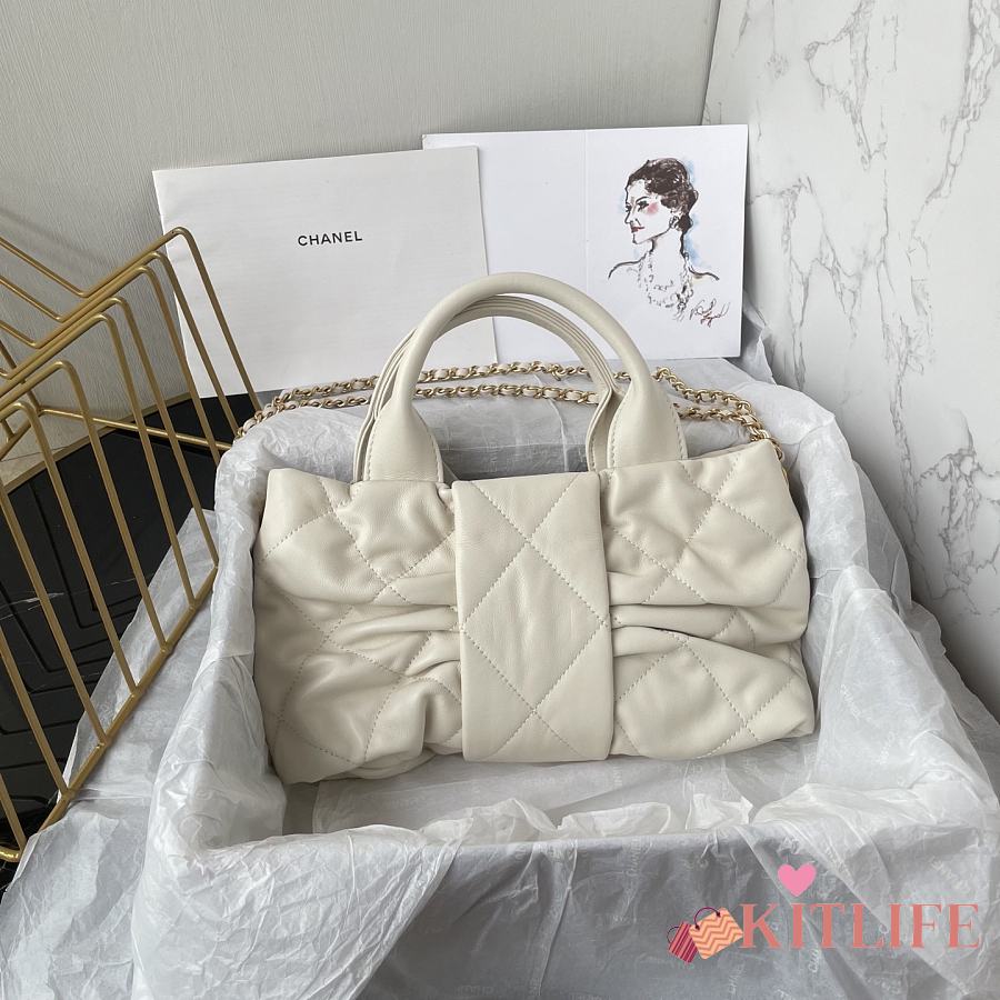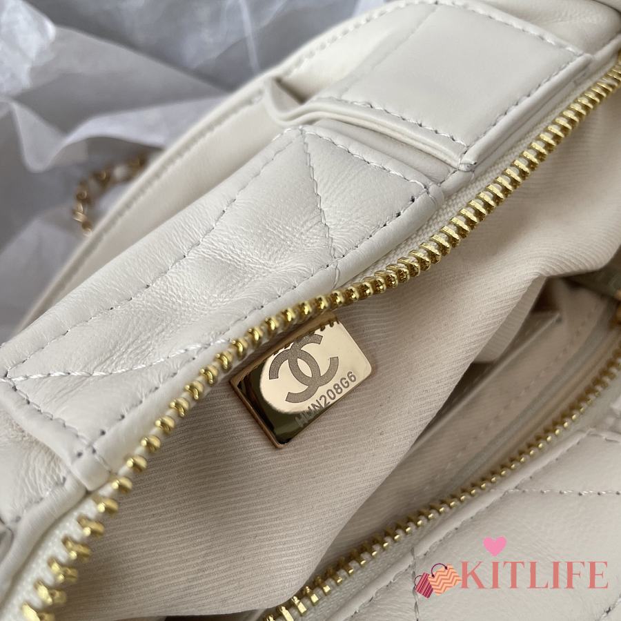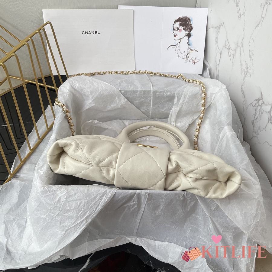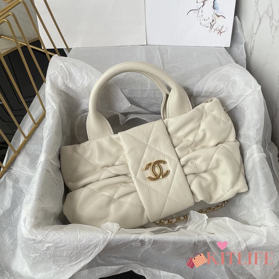 Kitlife Chanel Mini Bow Bag White Shiny Lambskin & Gold Plated Metal AS5849 18x26x5cm