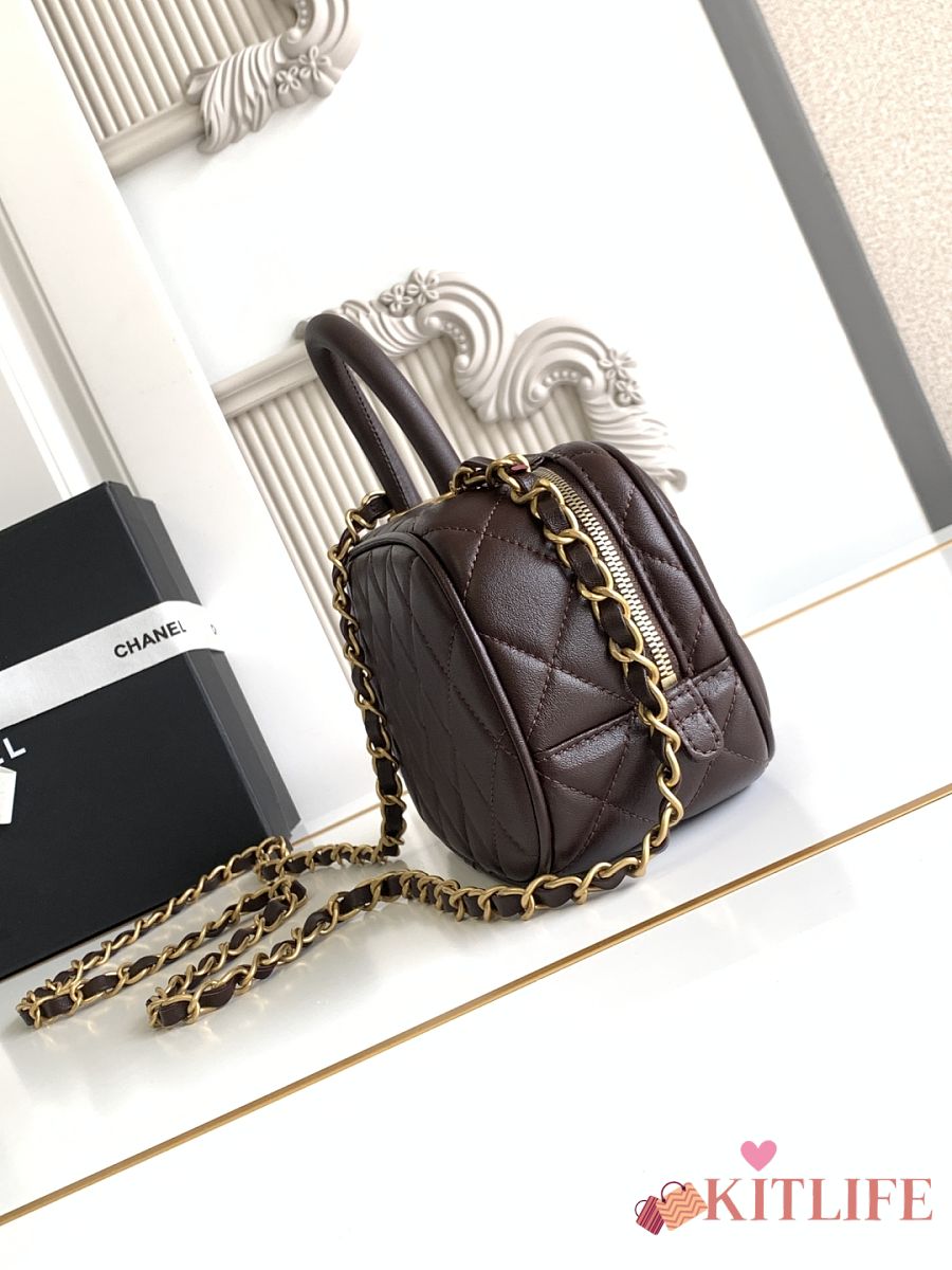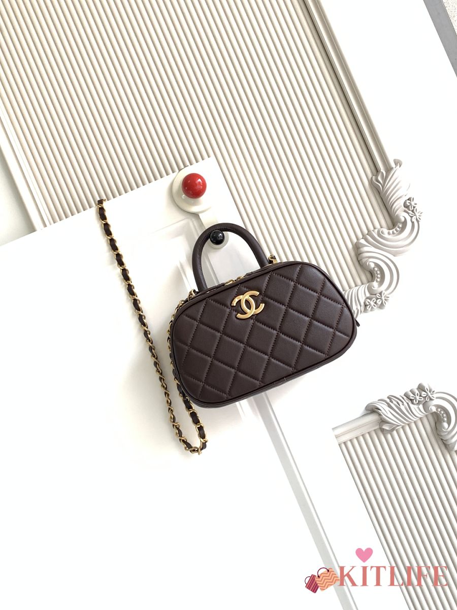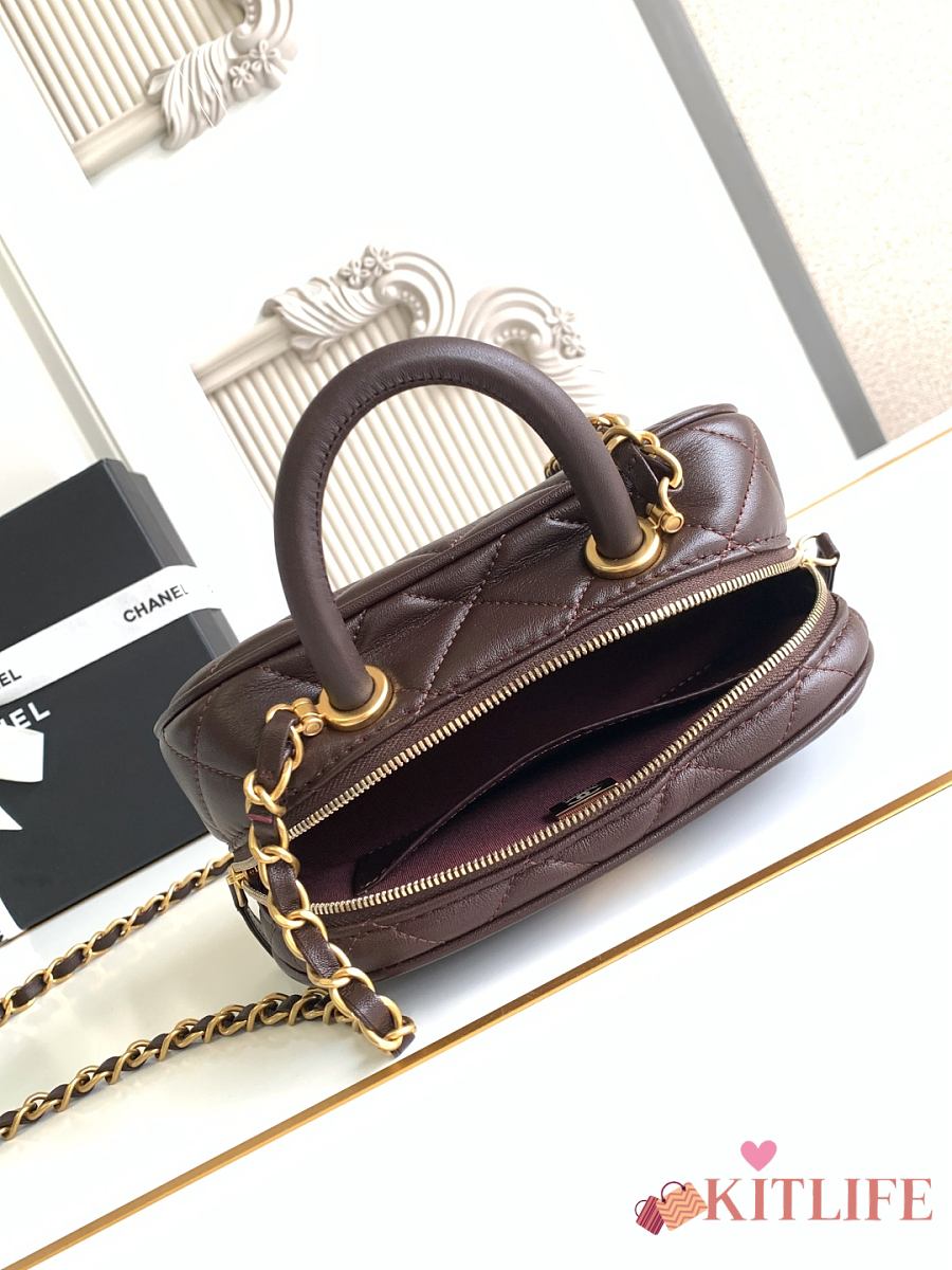 Kitlife Chanel Mini Bowling Bag Dark Brown Leather AS5572 11.5x20x8.5cm