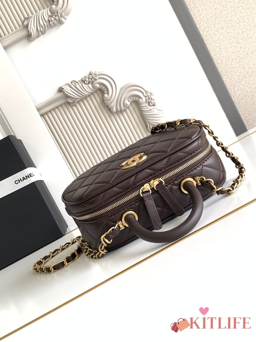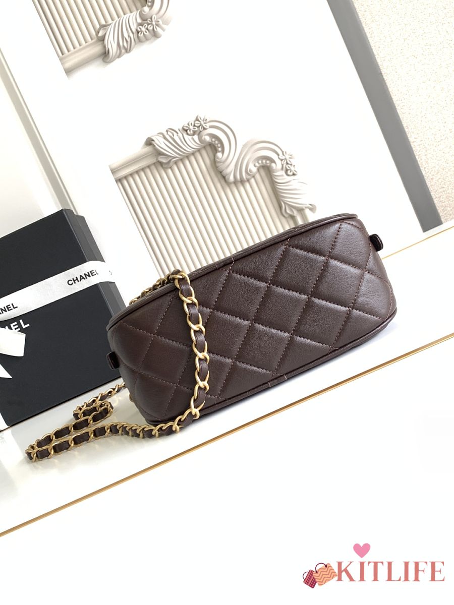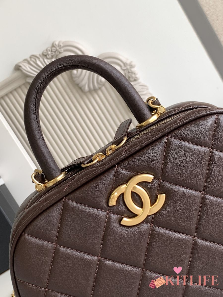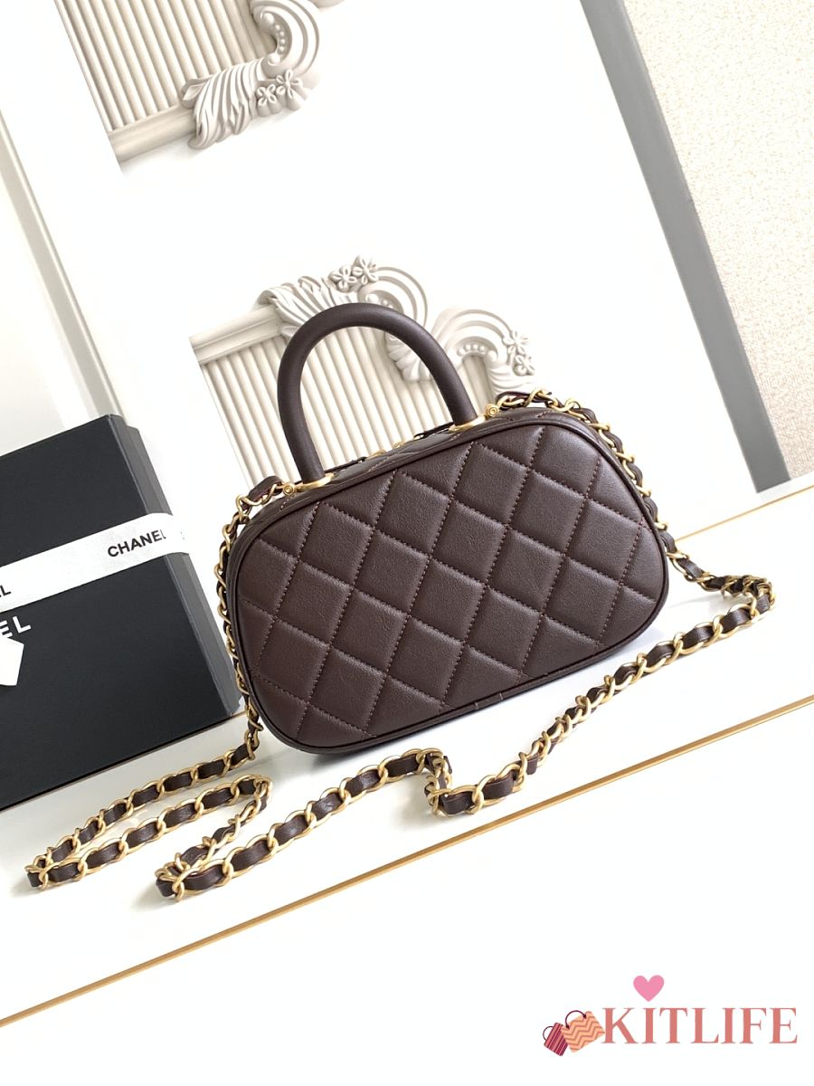 Kitlife Chanel Mini Bowling Bag Dark Brown Leather AS5572 11.5x20x8.5cm