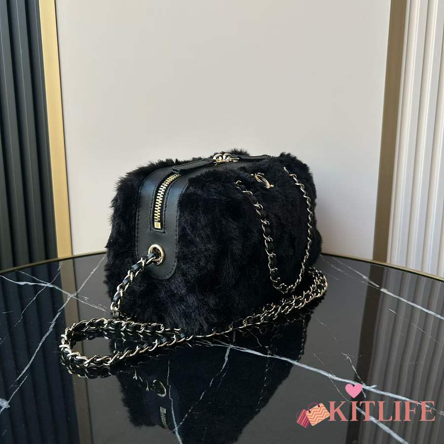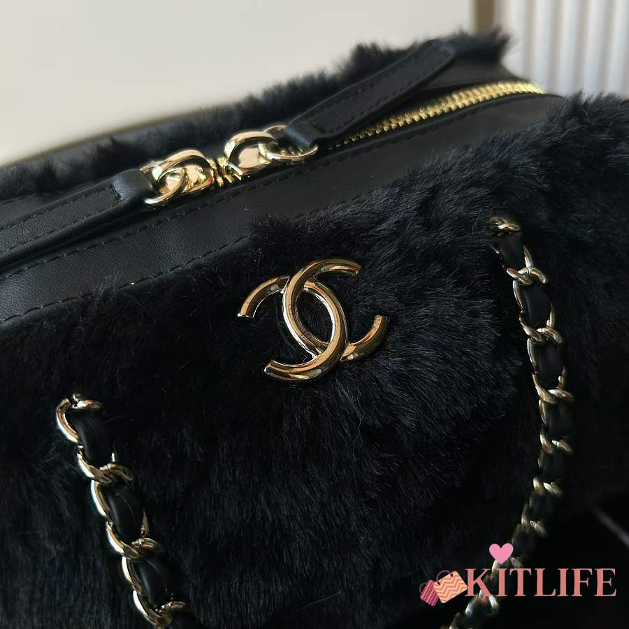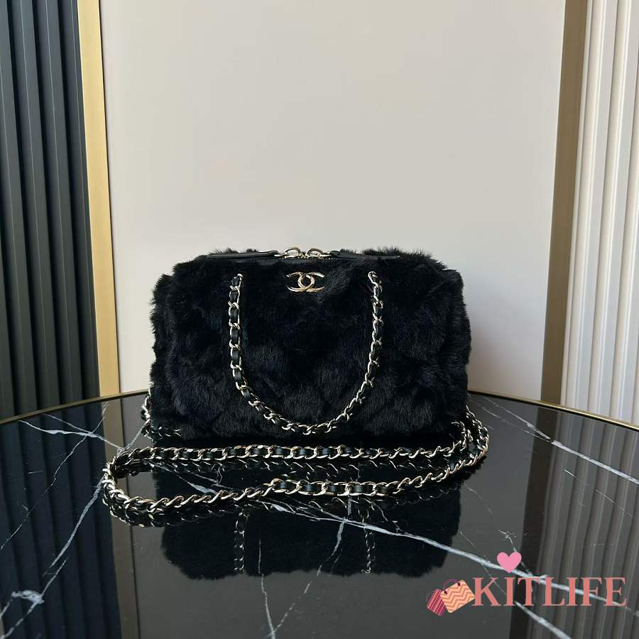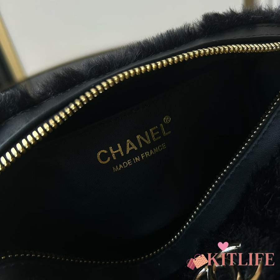 Kitlife Chanel Mini Handle Bowling Ball Classic Quilted Flap Bag Black 18.5x11.5x10cm