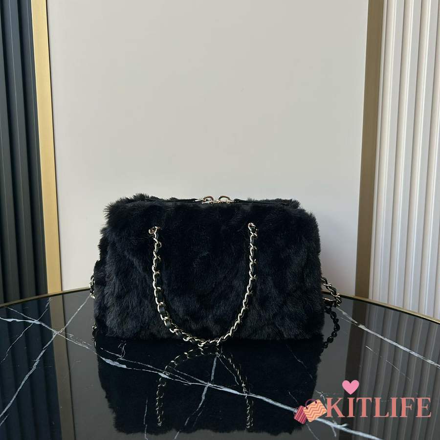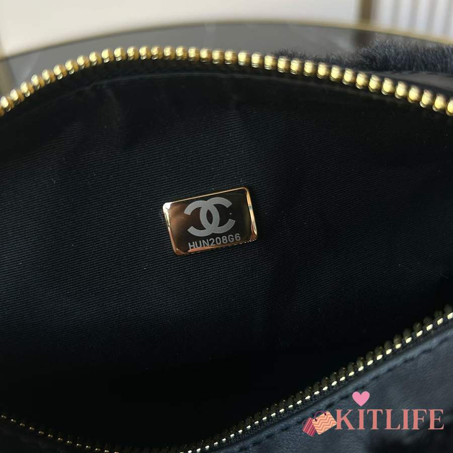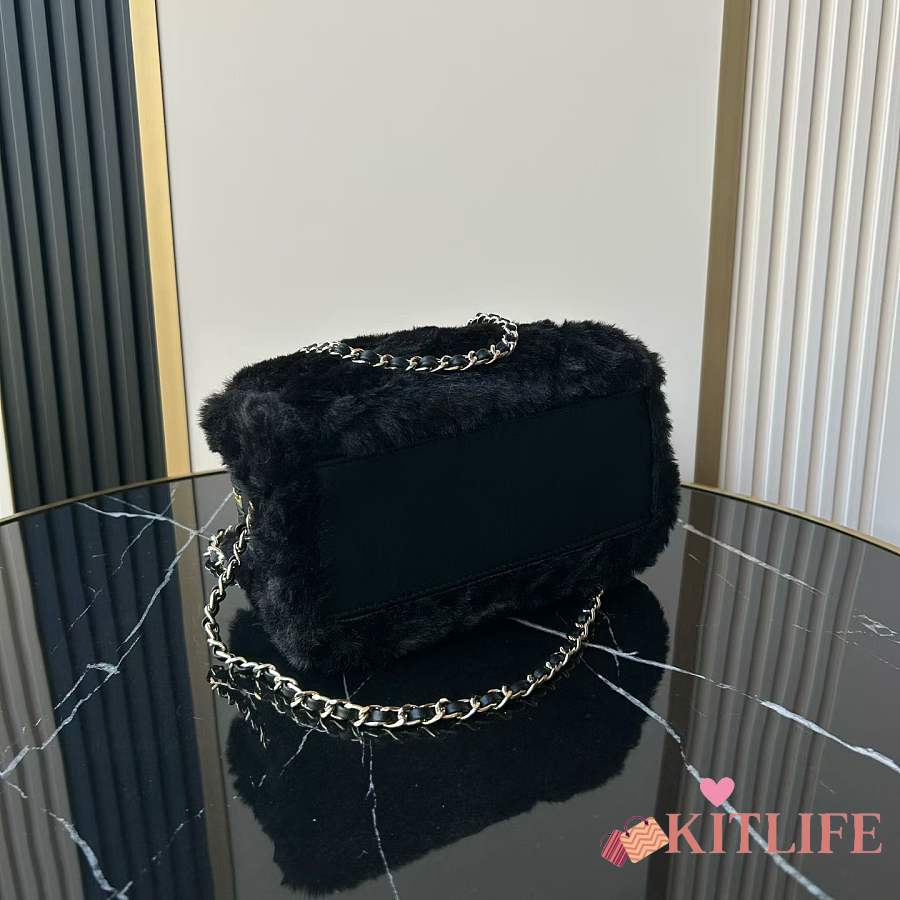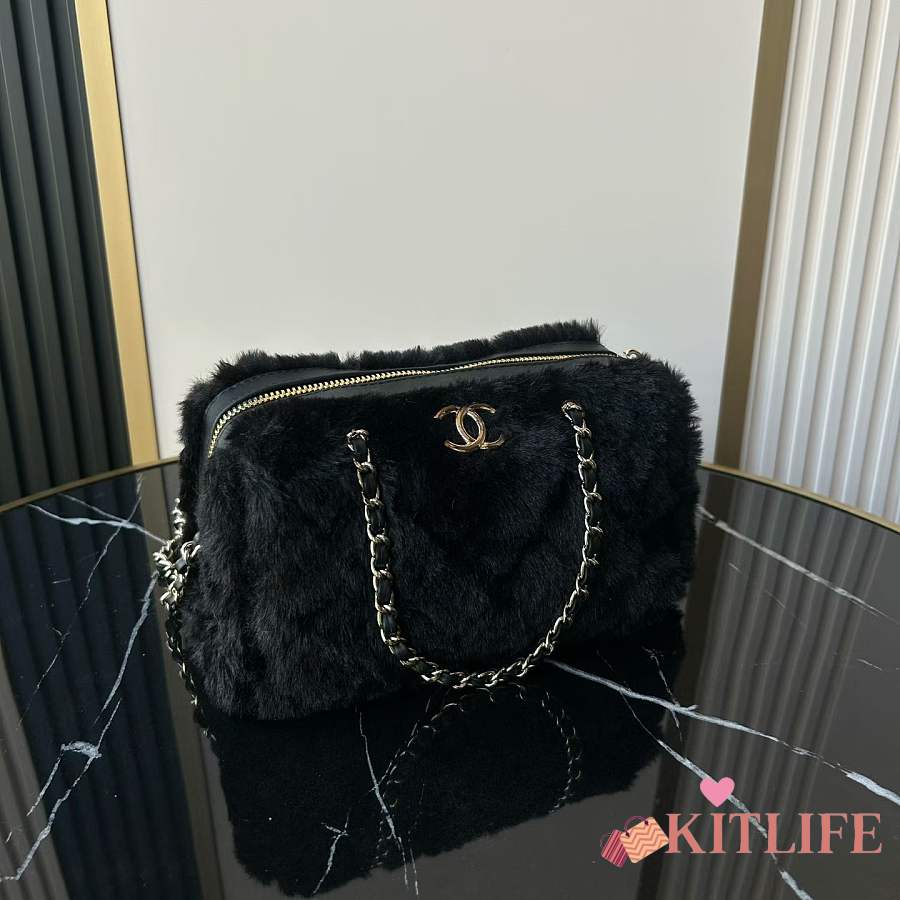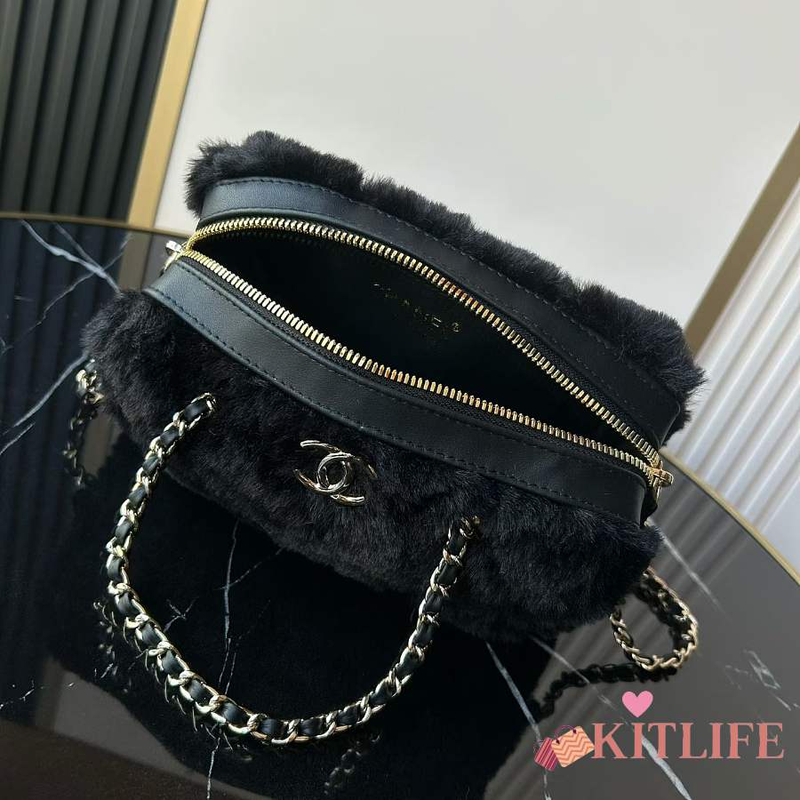 Kitlife Chanel Mini Handle Bowling Ball Classic Quilted Flap Bag Black 18.5x11.5x10cm