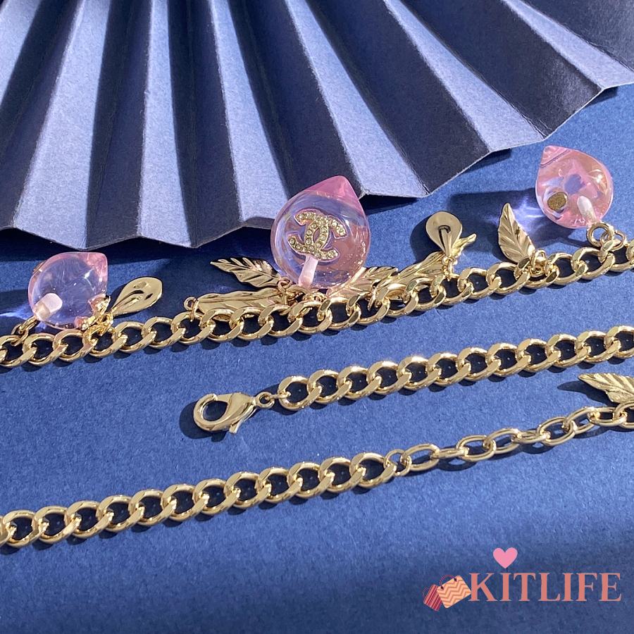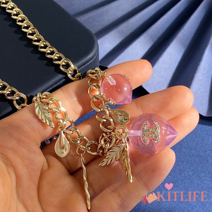 Kitlife Chanel Pink Diamond-encrusted Double C Necklace