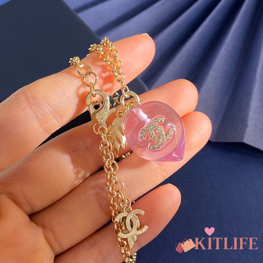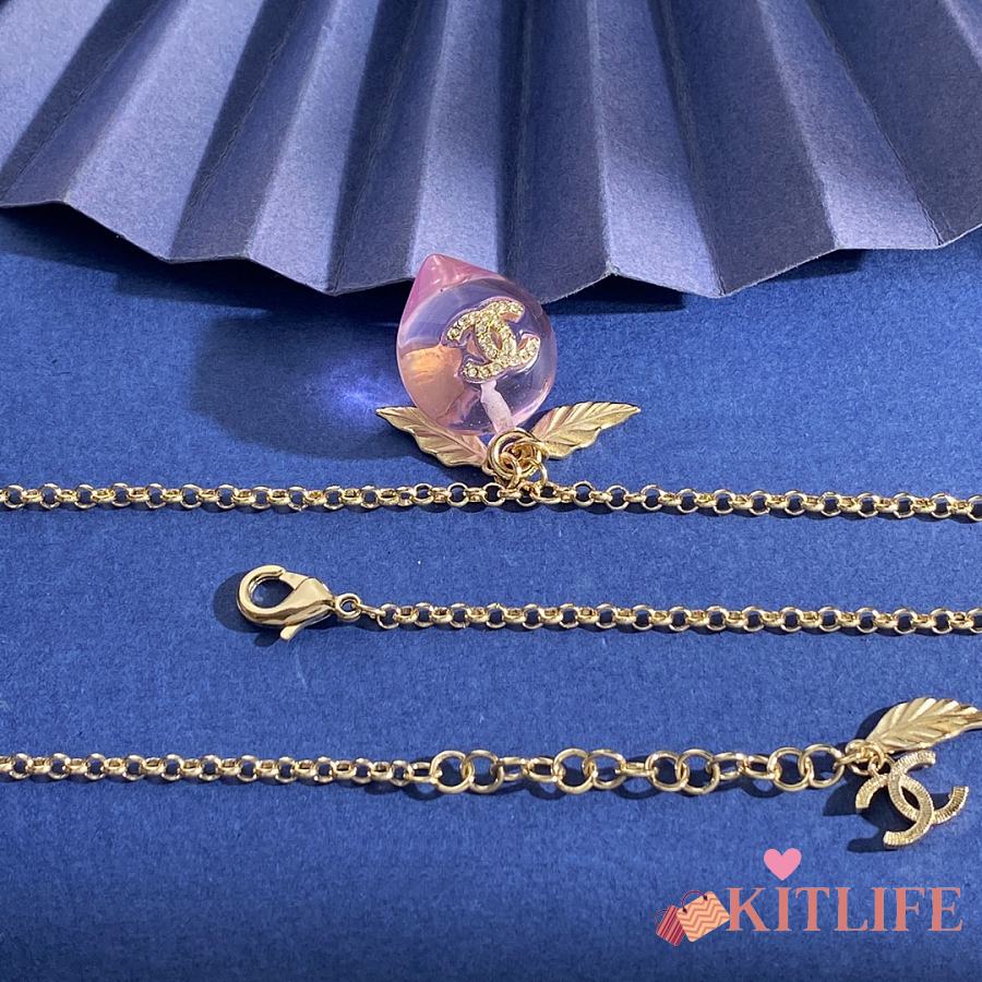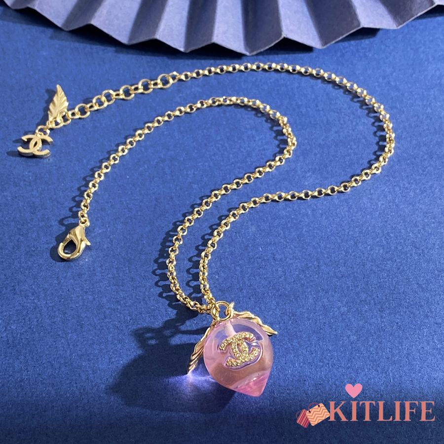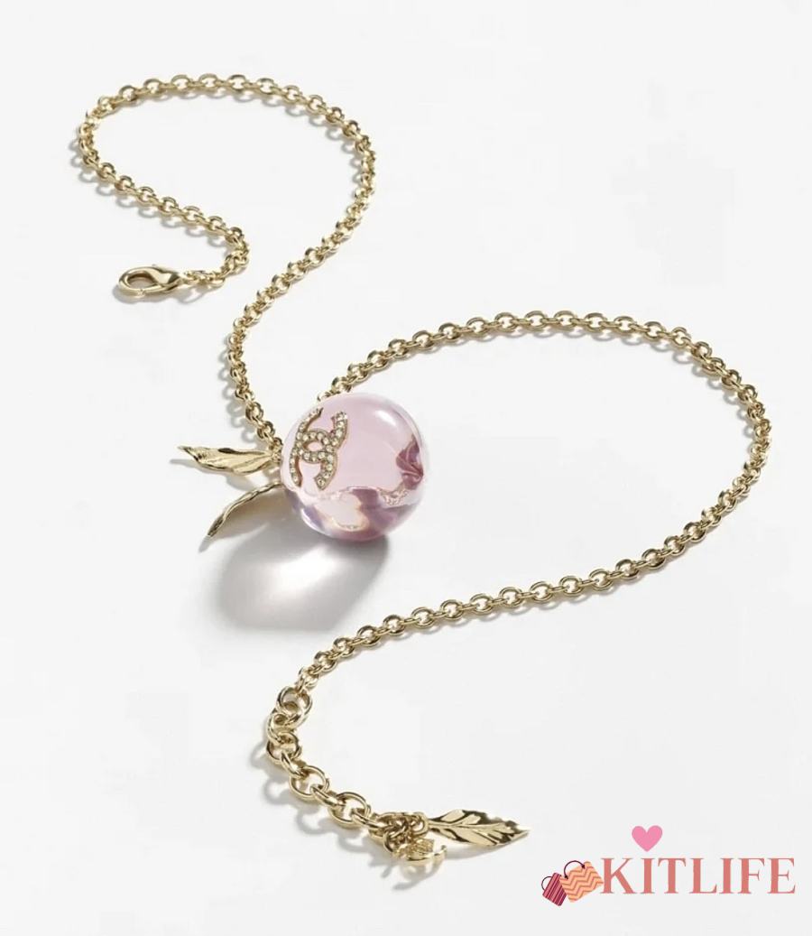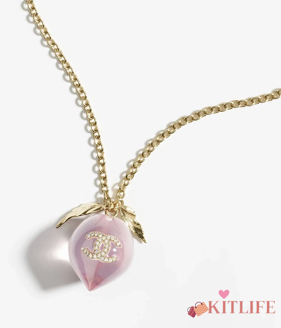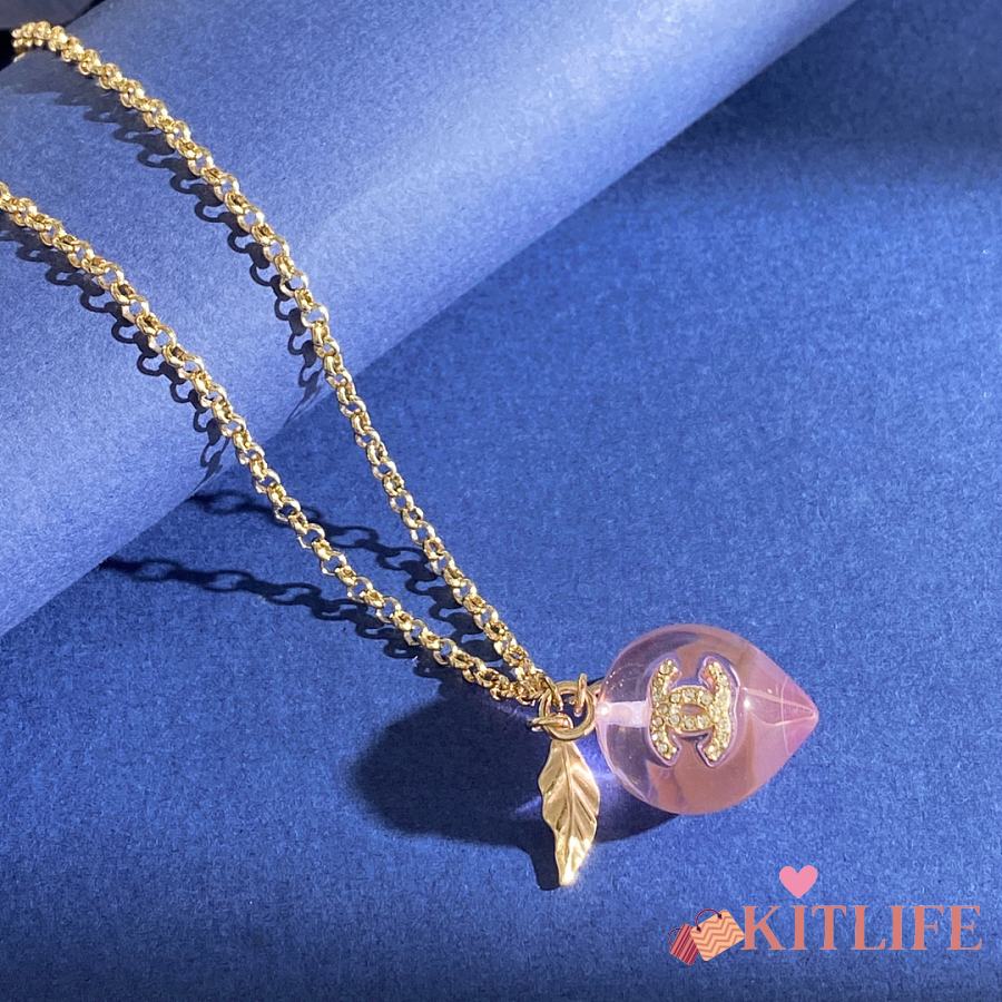Kitlife Chanel Pink Peach-shaped Metal and Leaf Necklace