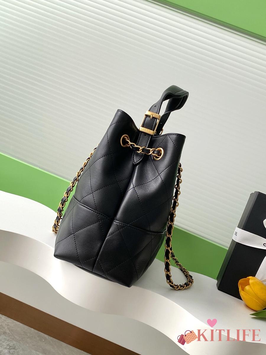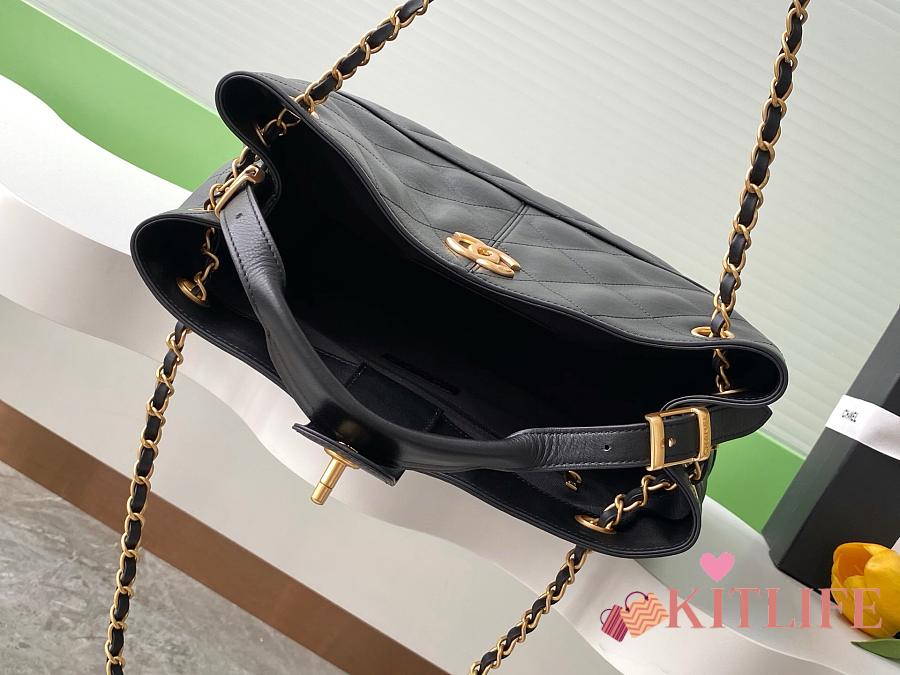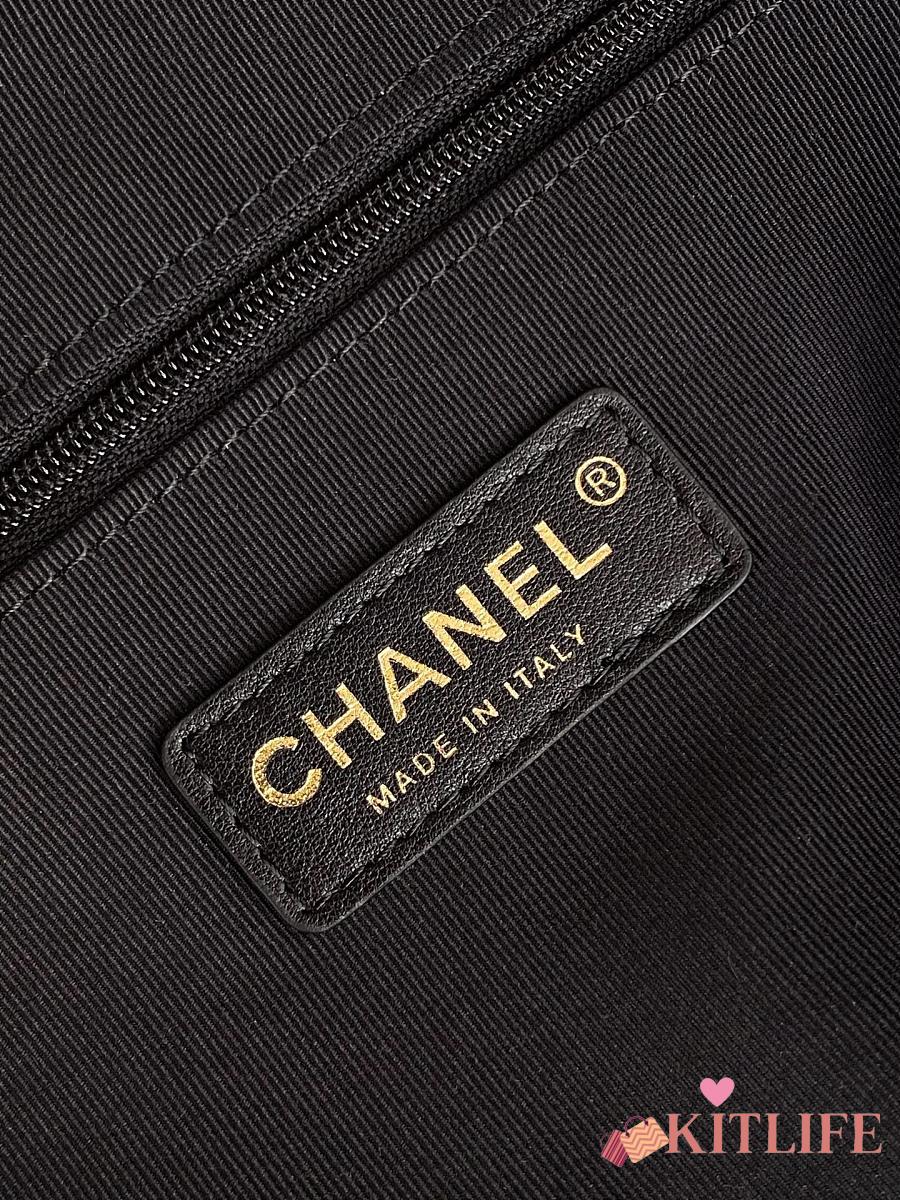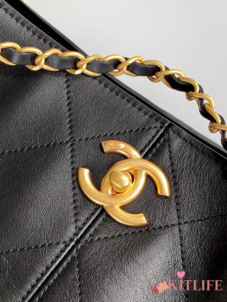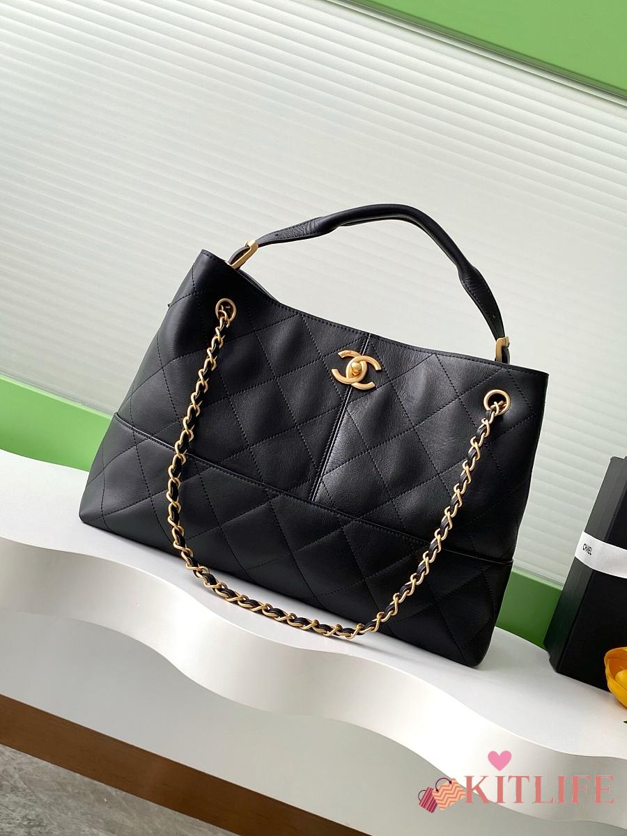 Kitlife Chanel Shopping Bag Black Calfskin and Gold Plated Metal AS5634 36x24x12cm