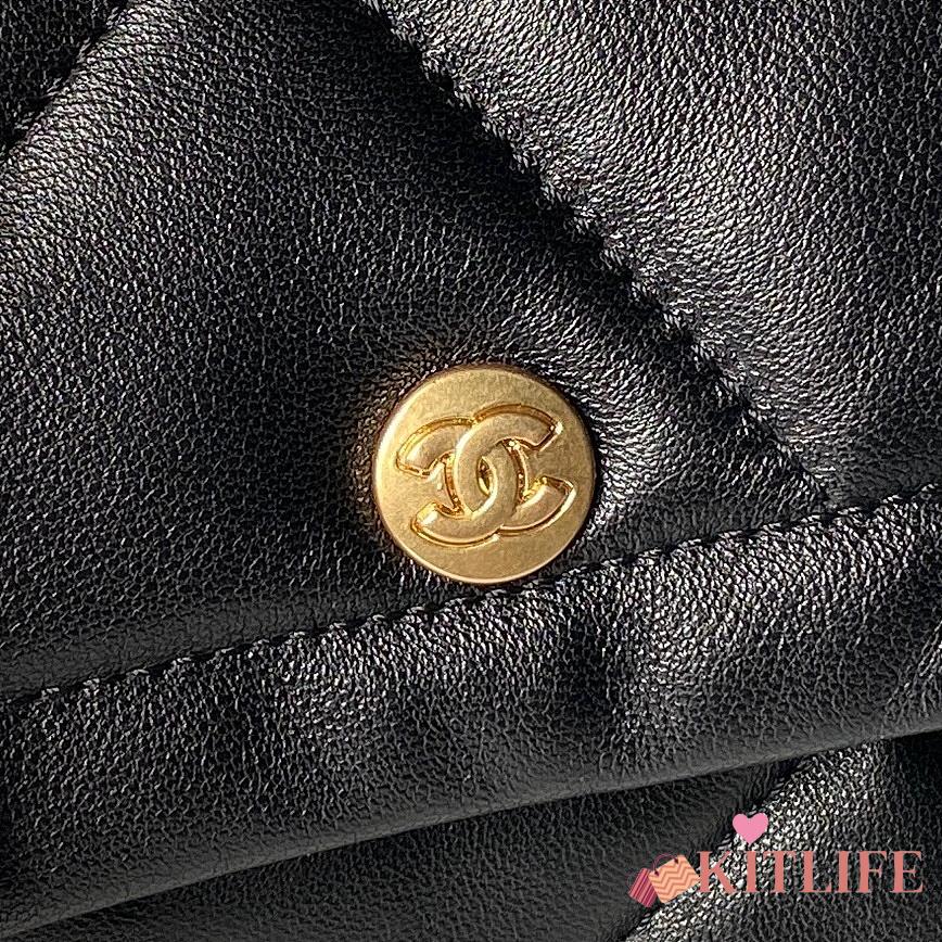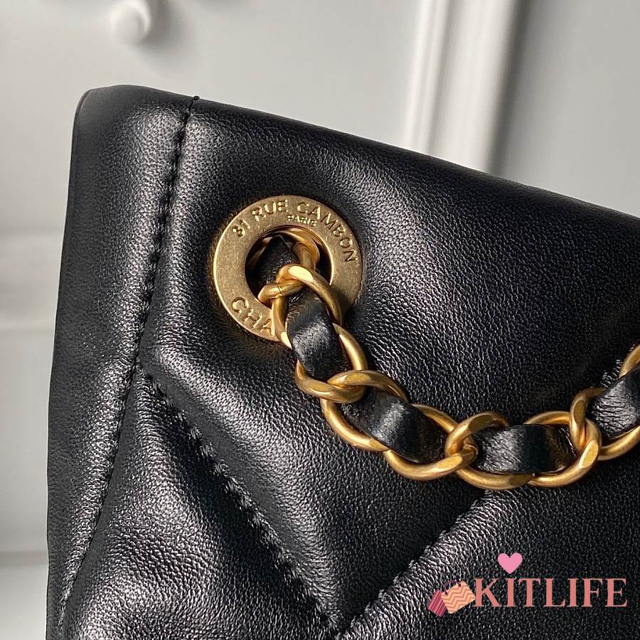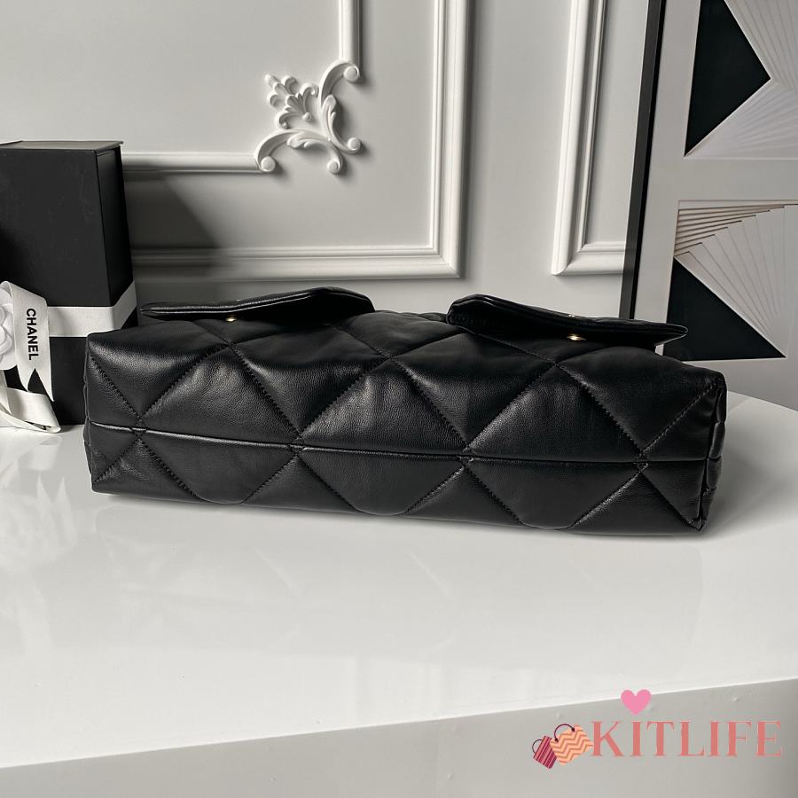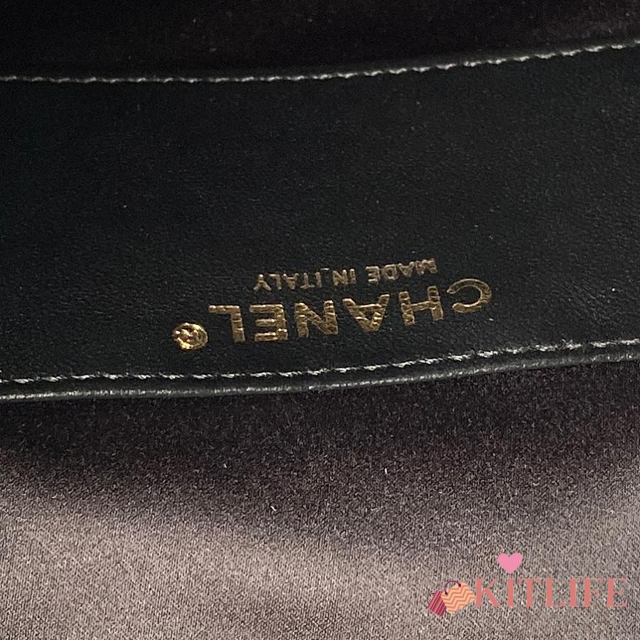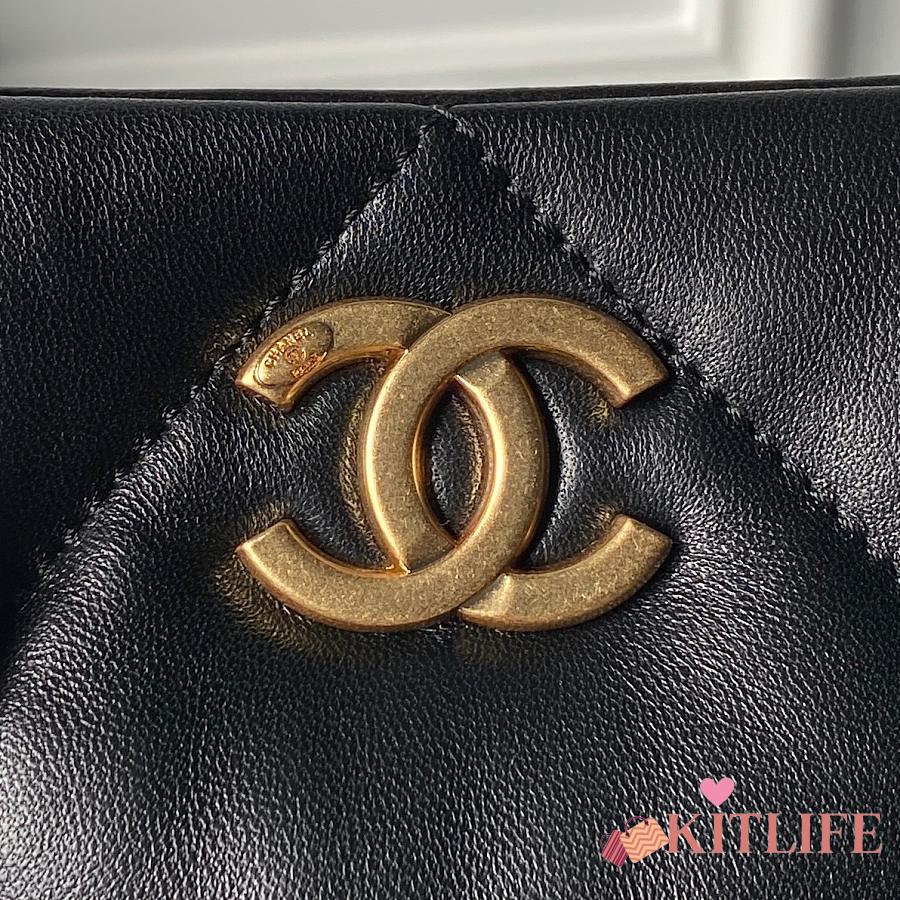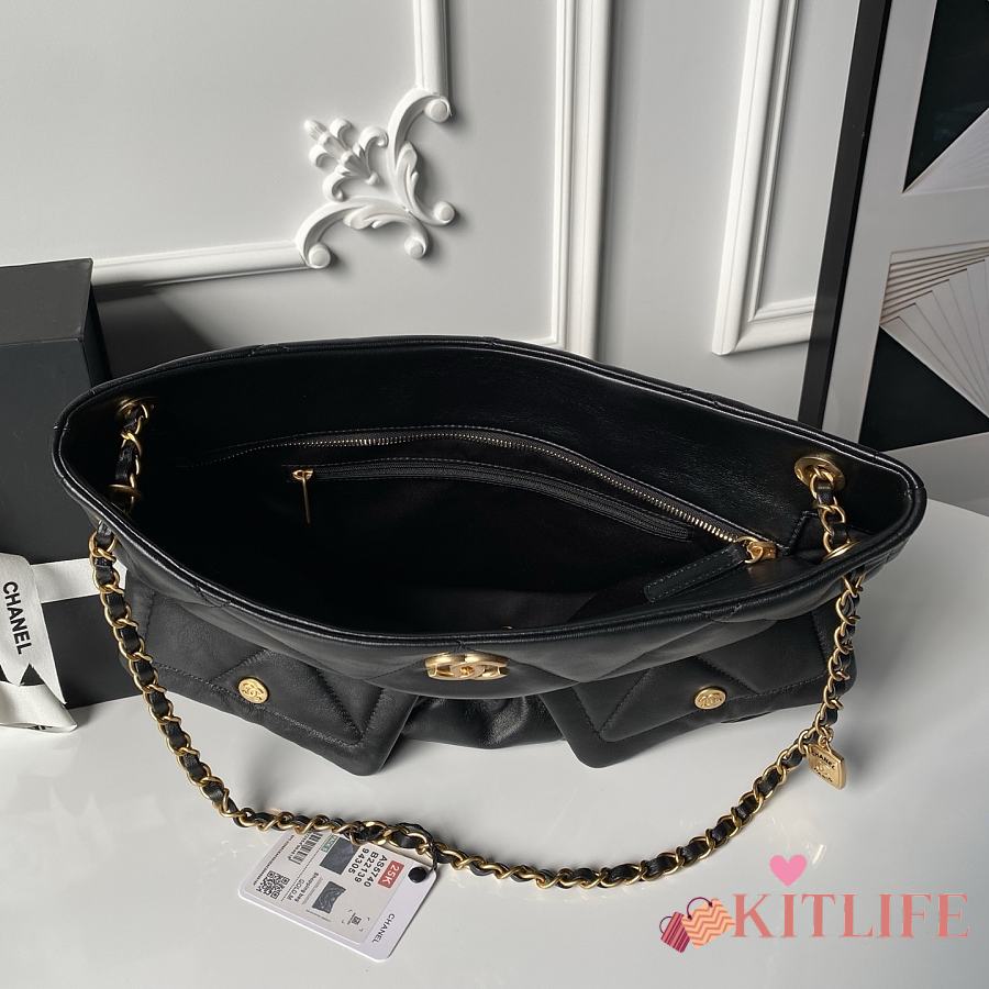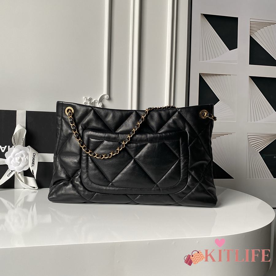 Kitlife Chanel Shopping Bag Black Shiny Lambskin & Gold Plated Metal AS5740 26x38x11cm
