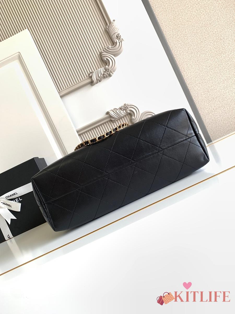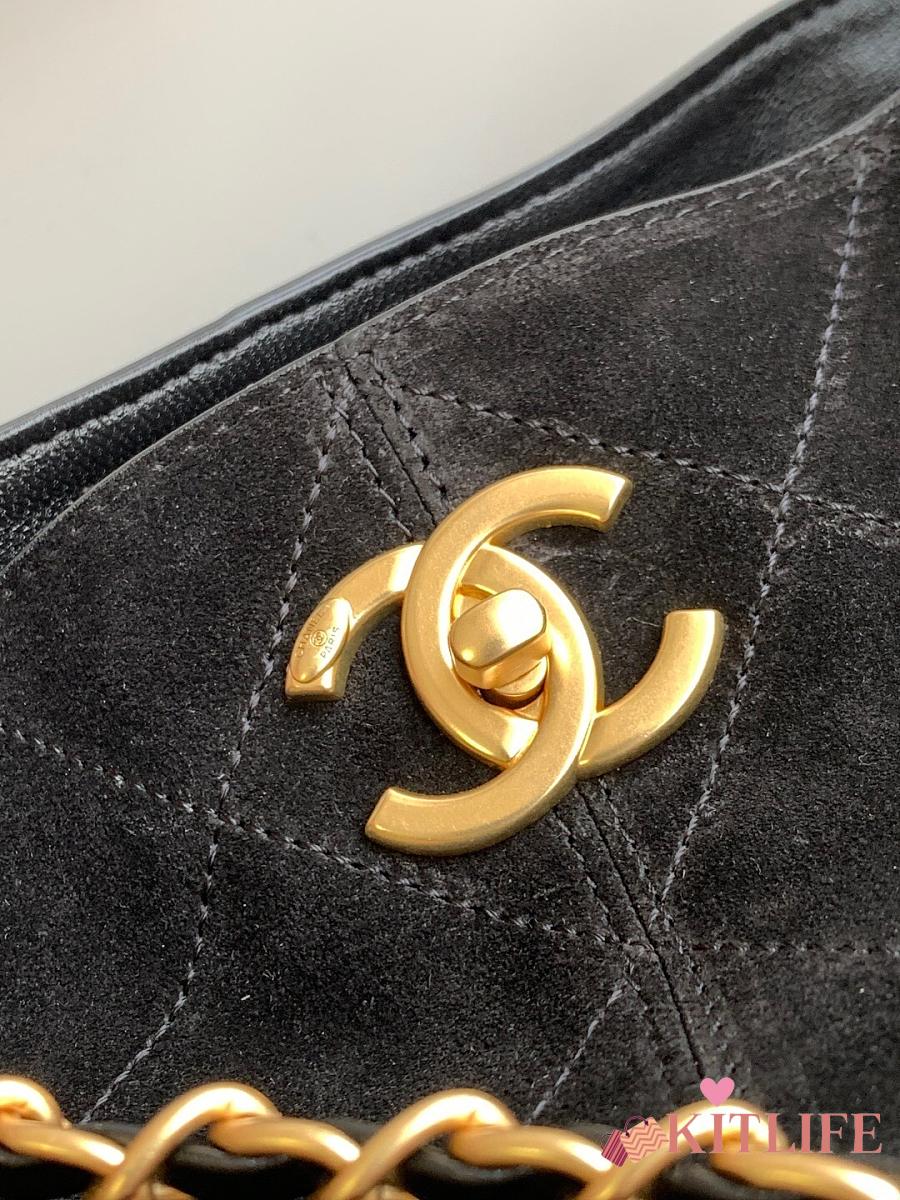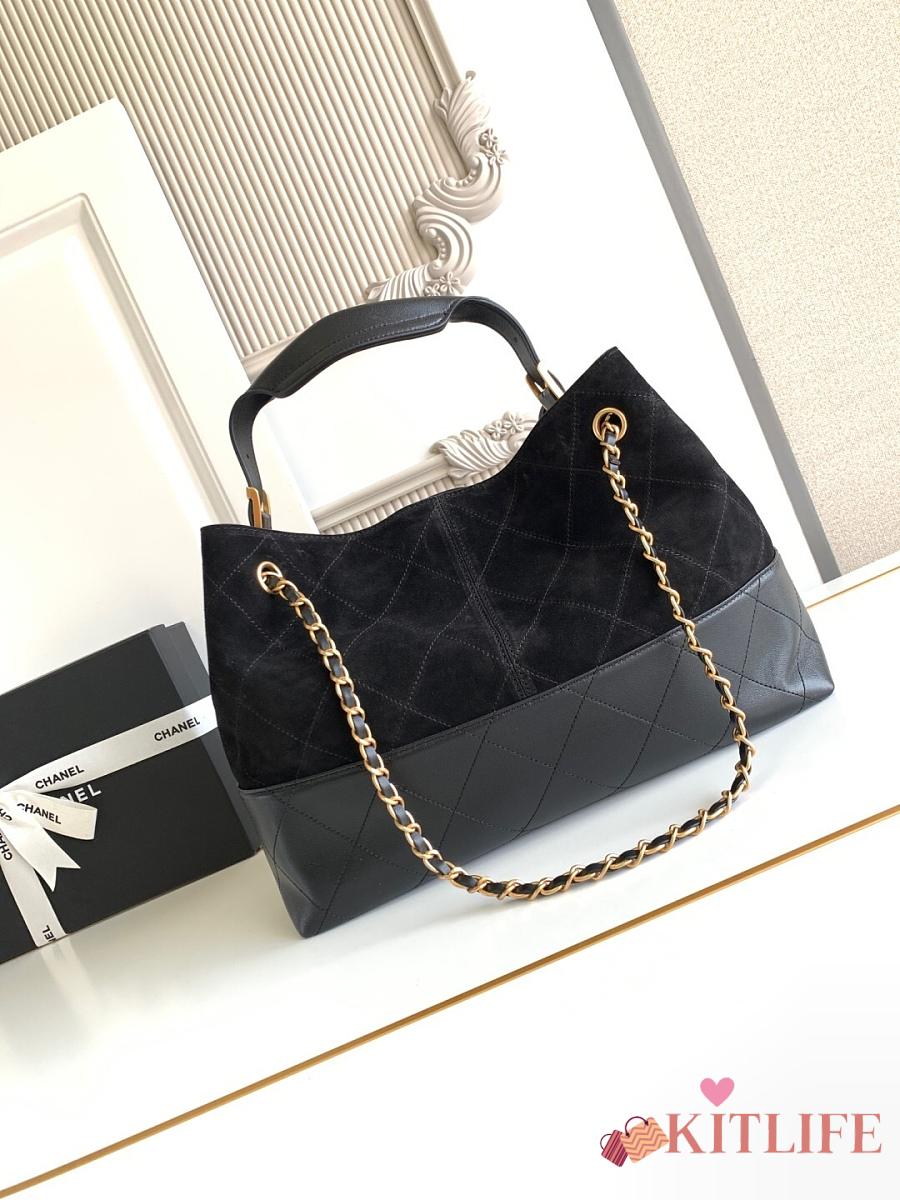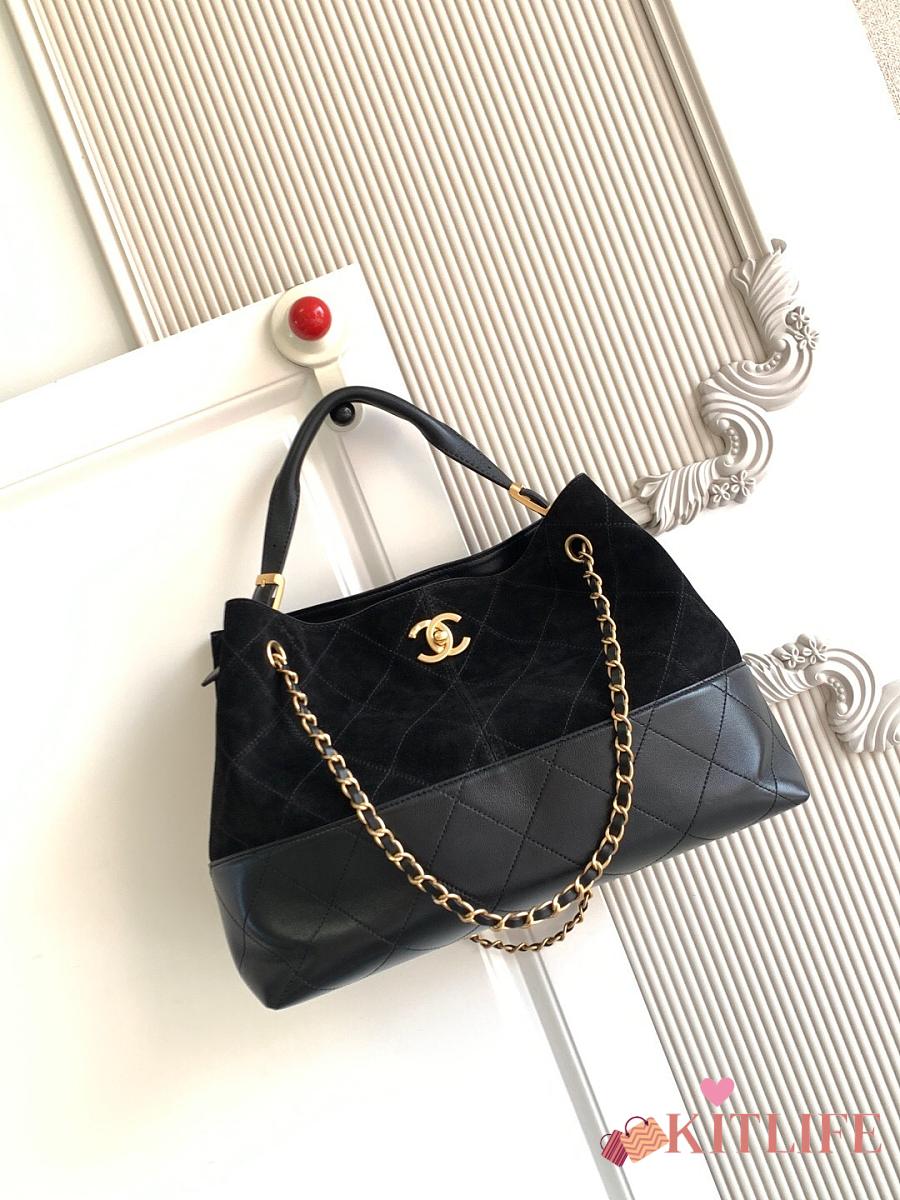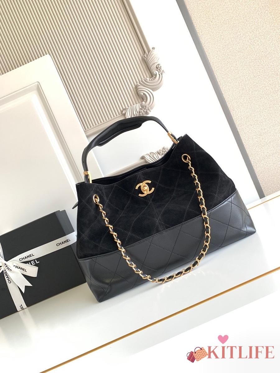 Kitlife Chanel Shopping Bag Black Suede Calfskin and Shiny Lambskin & Gold-Tone Metal 36x24x12cm