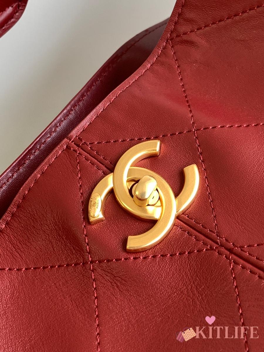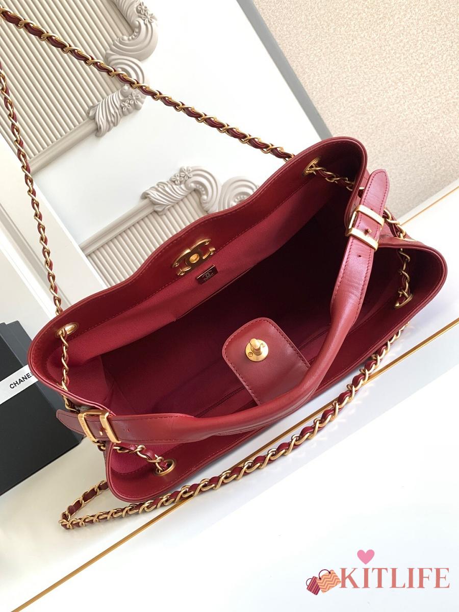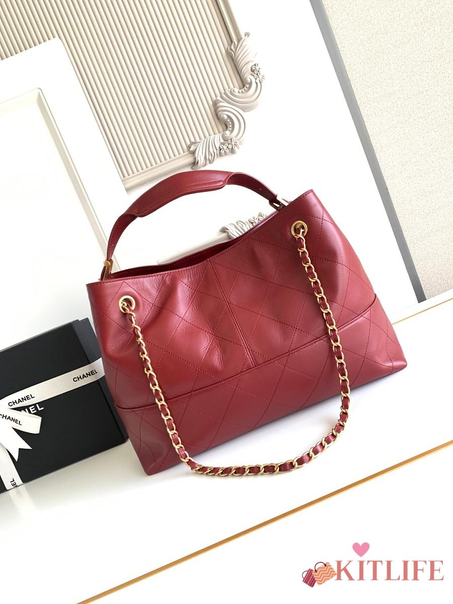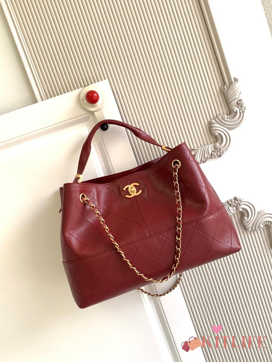 Kitlife Chanel Shopping Bag Burgundy Calfskin and Gold Plated Metal AS5634 36x24x12cm