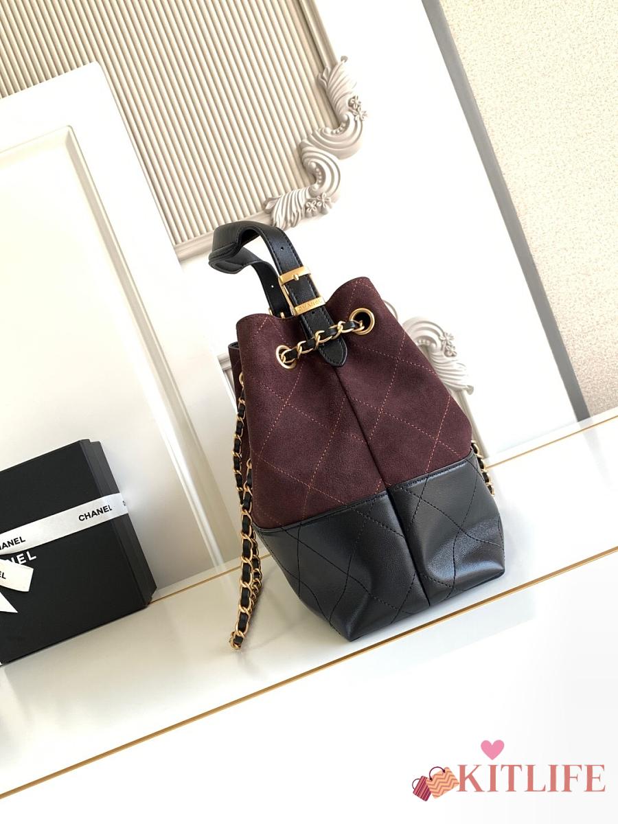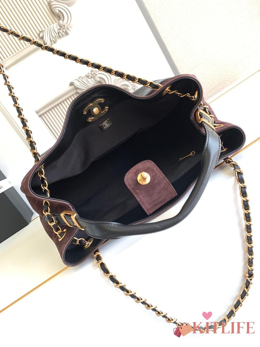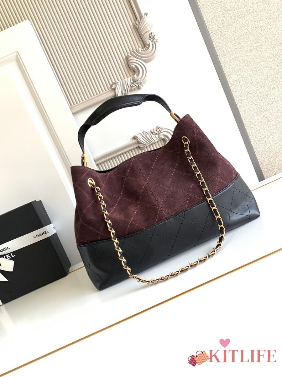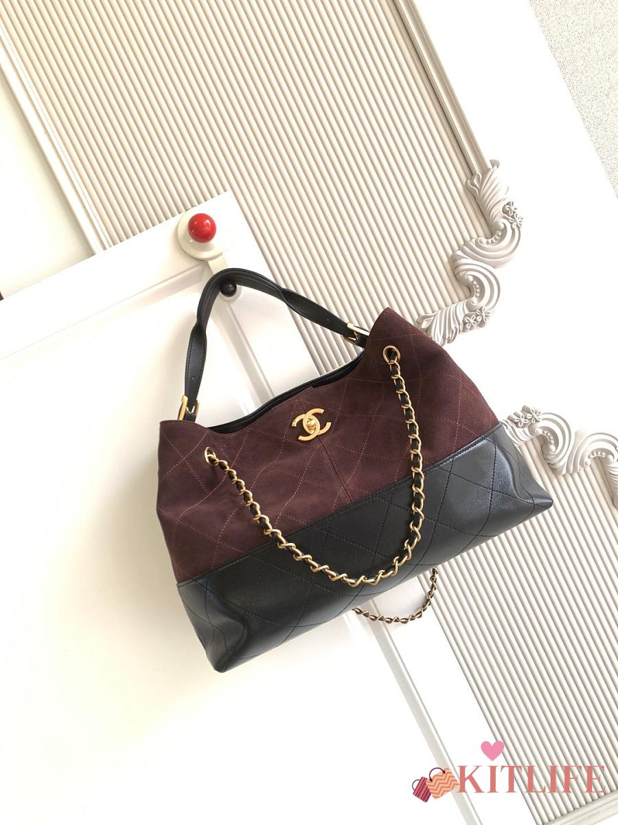 Kitlife Chanel Shopping Bag Dark Brown Suede Calfskin and Black Shiny Lambskin & Gold-Tone Metal 36x24x12cm