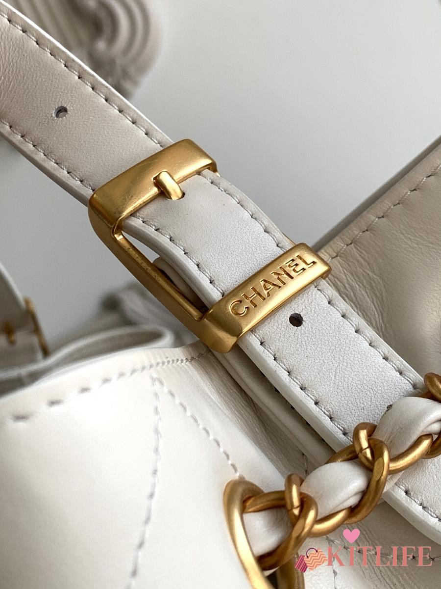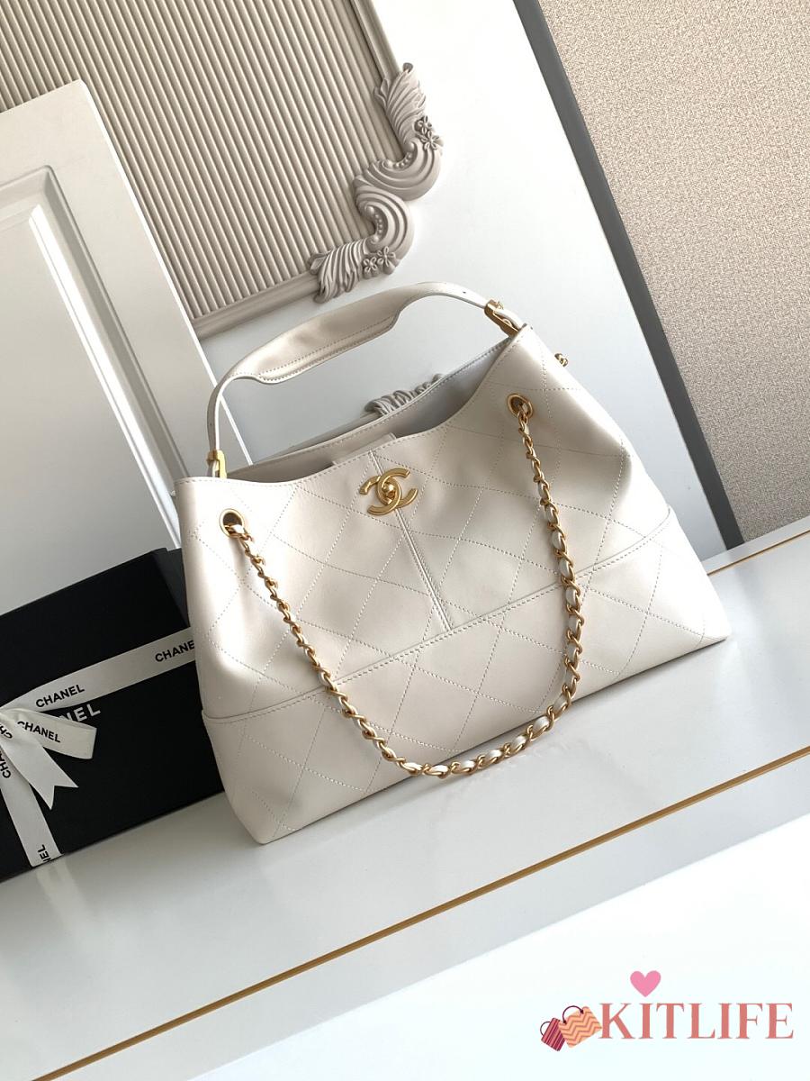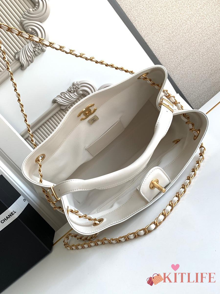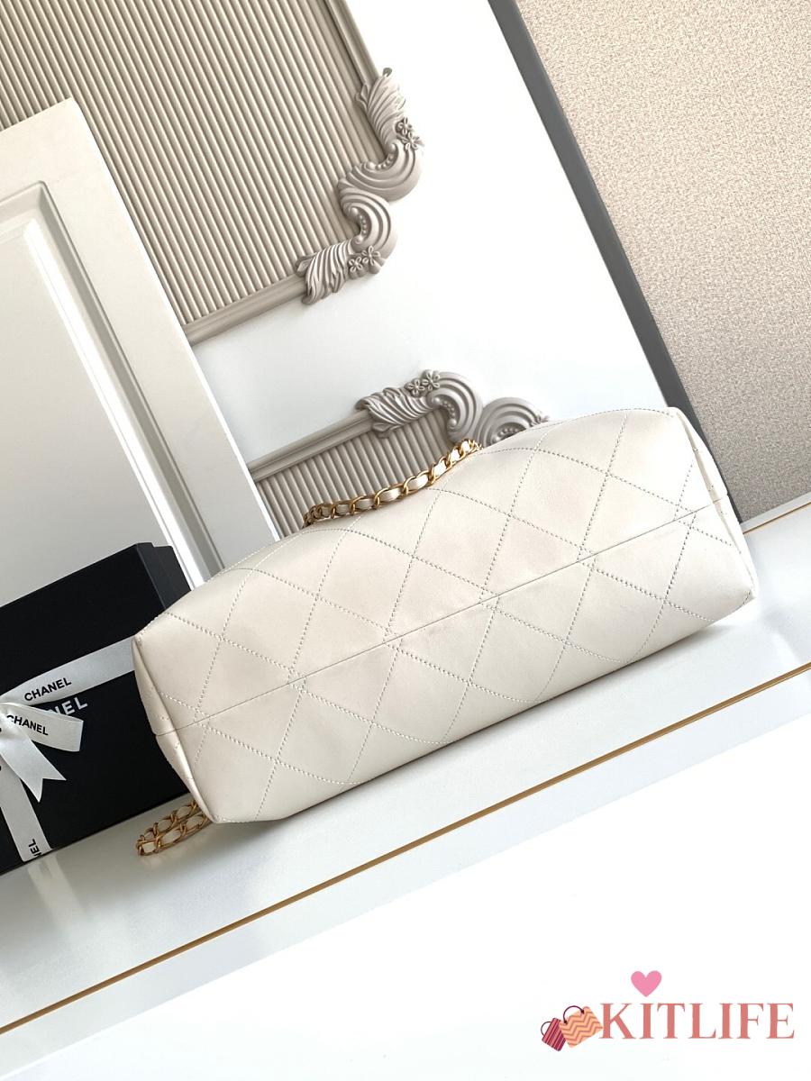 Kitlife Chanel Shopping Bag White Calfskin and Gold Plated Metal AS5634 36x24x12cm