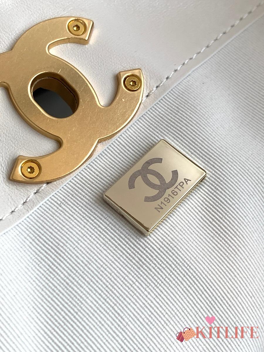 Kitlife Chanel Flap Bag With Top Handle Lambskin White with Silver Hardware - 27 × 17 × 12 cm