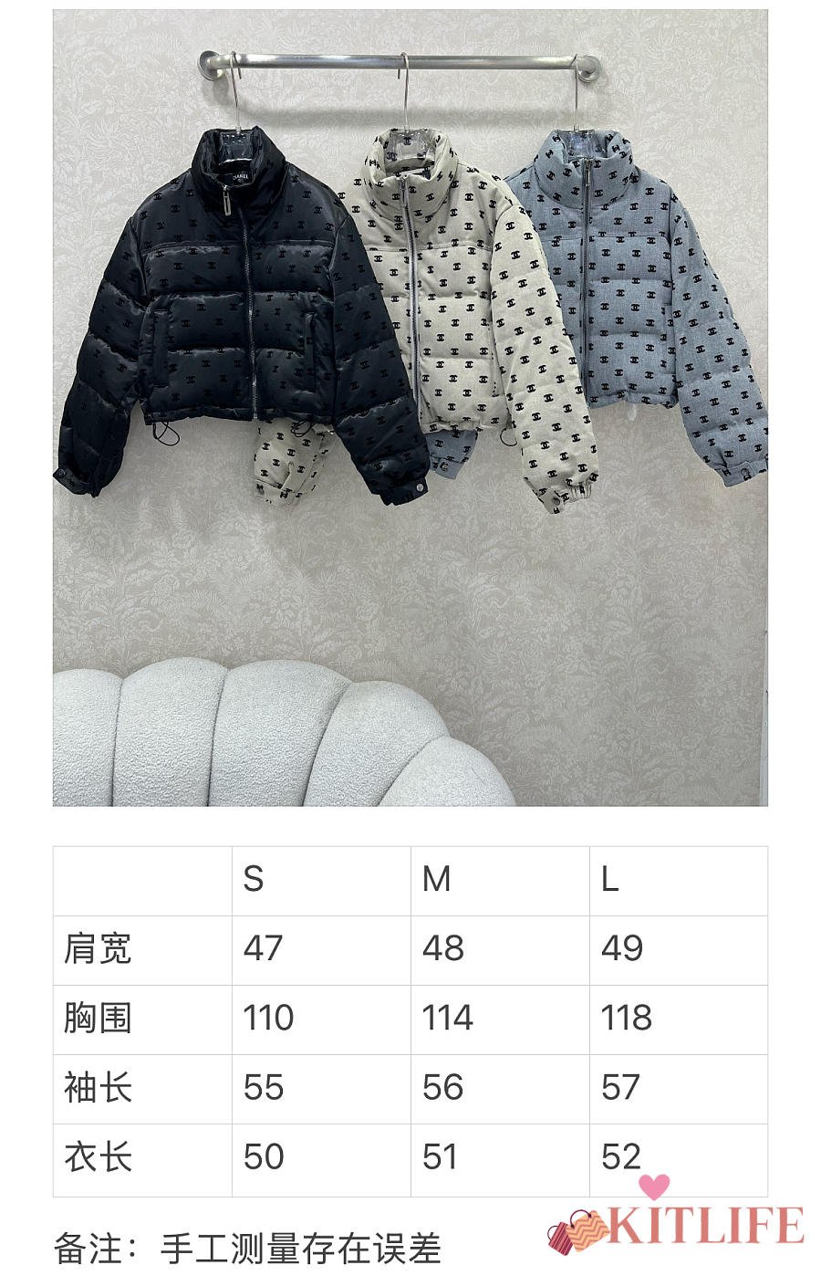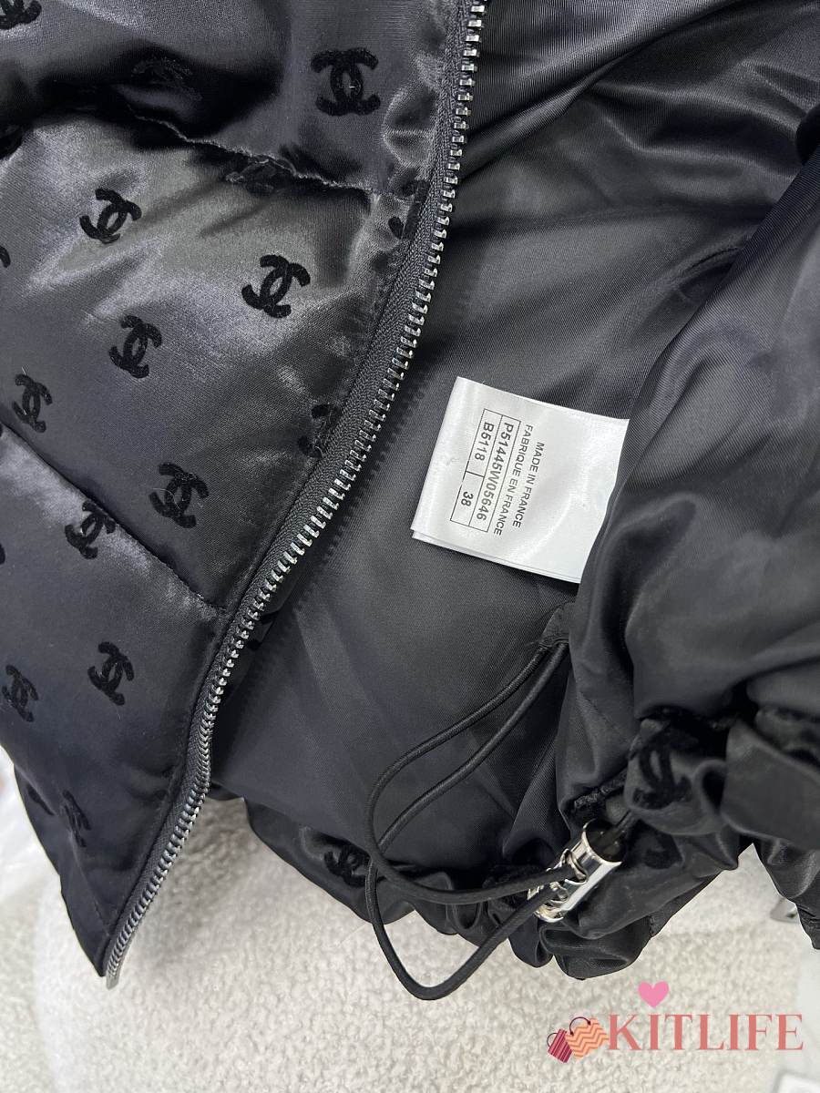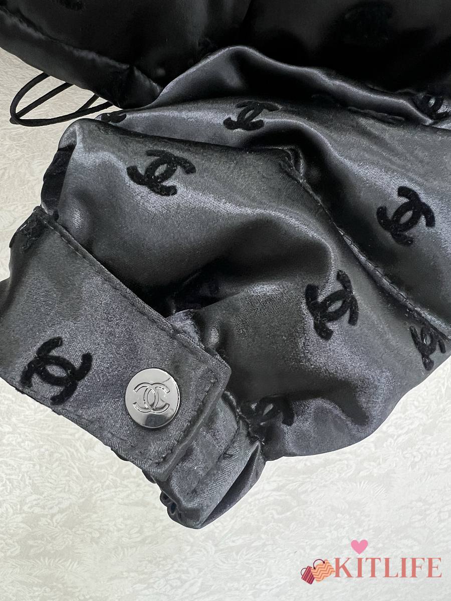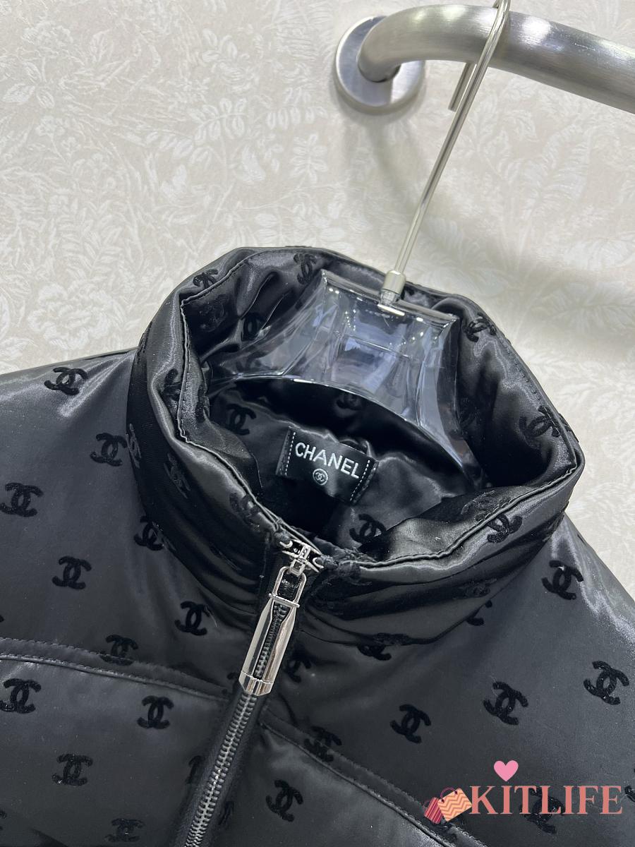 Kitlife Chanel Stand Collar Flocked Satin Down Jacket Black