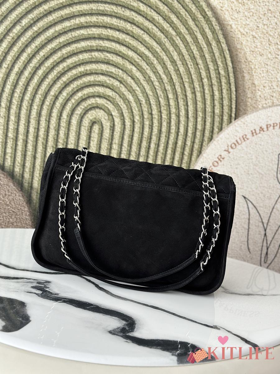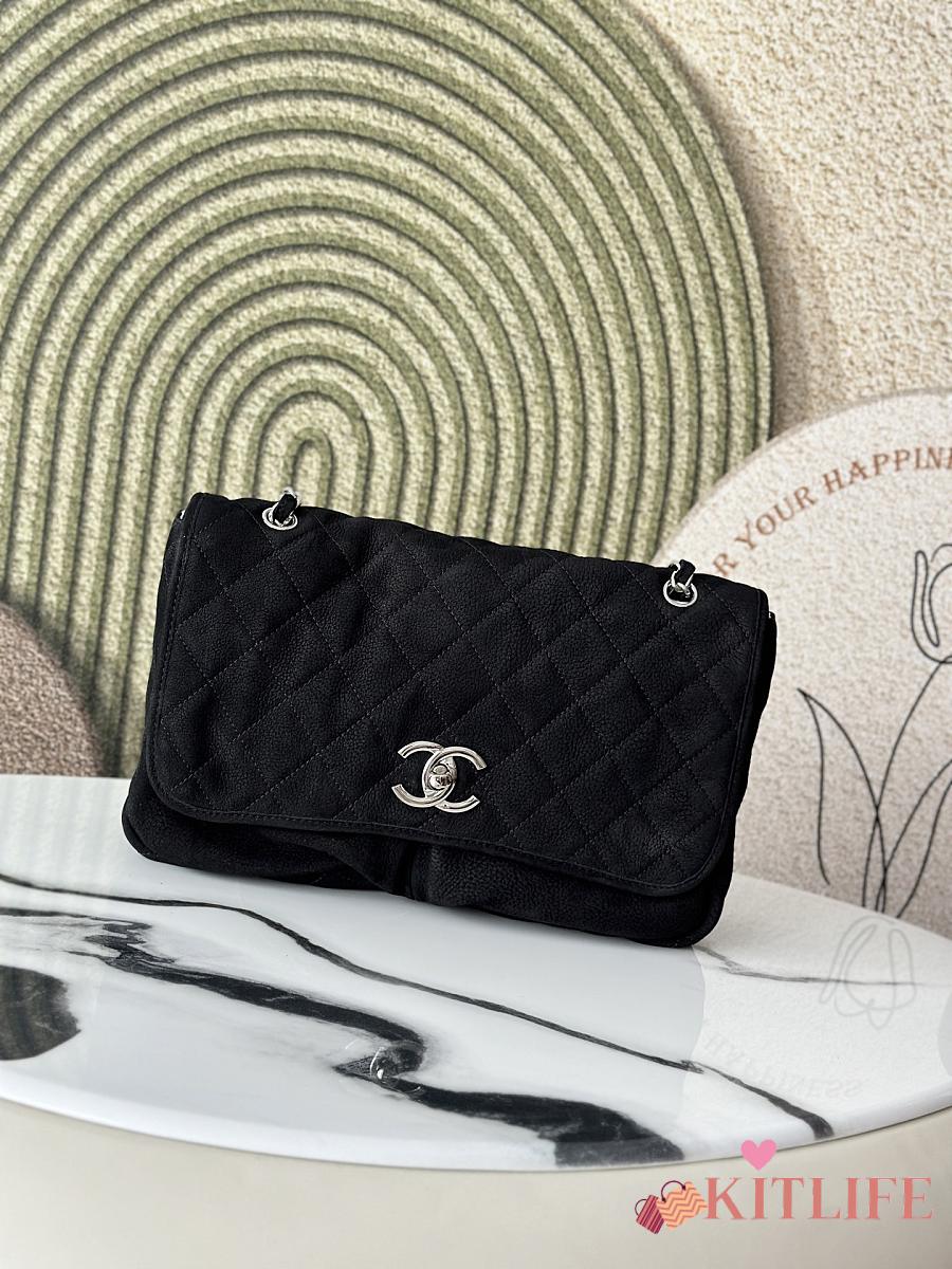 Kitlife Chanel Ultra Soft Suede Calfskin Large Natural Beauty Flap Black Bag 34x25x10cm
