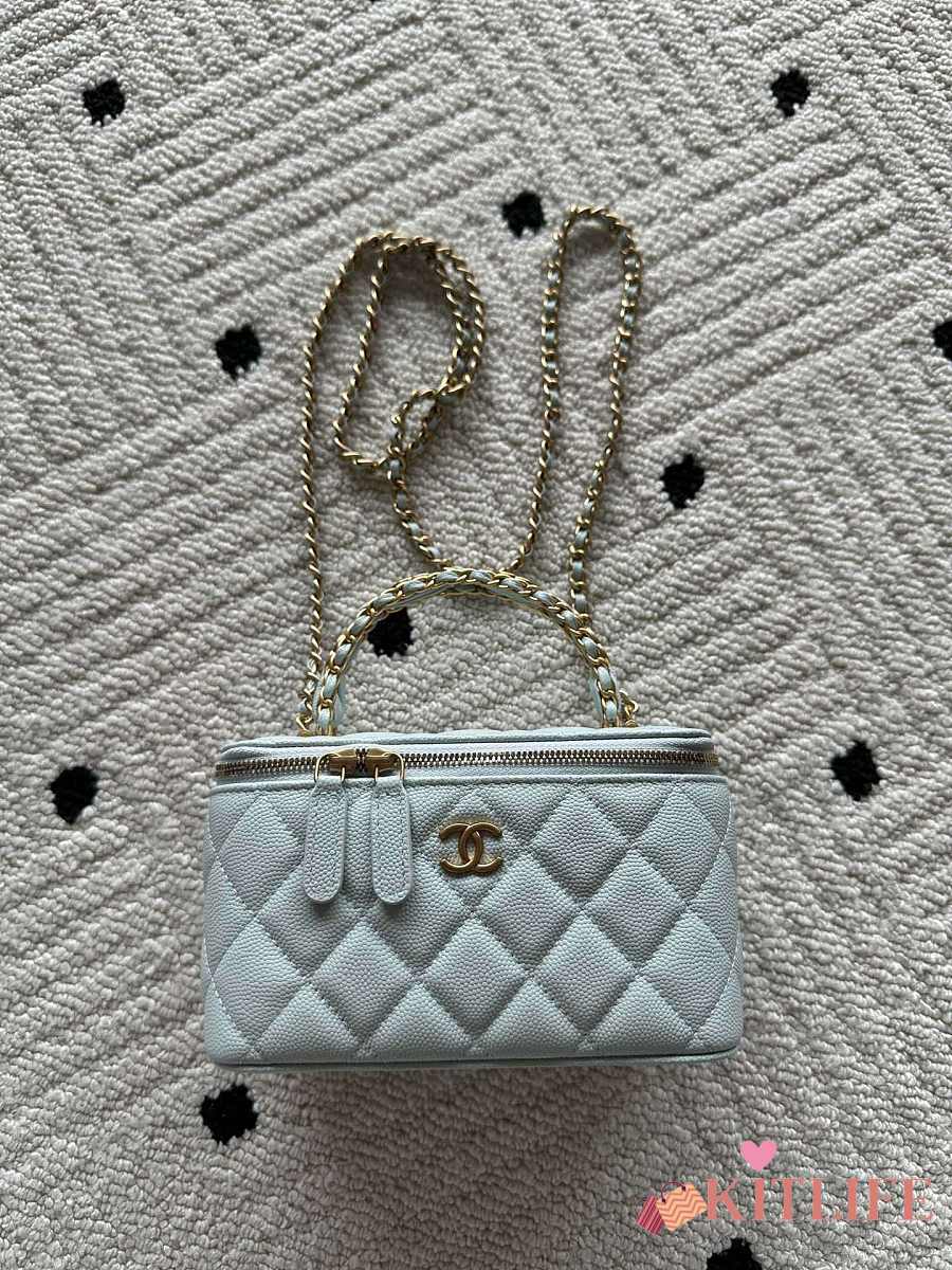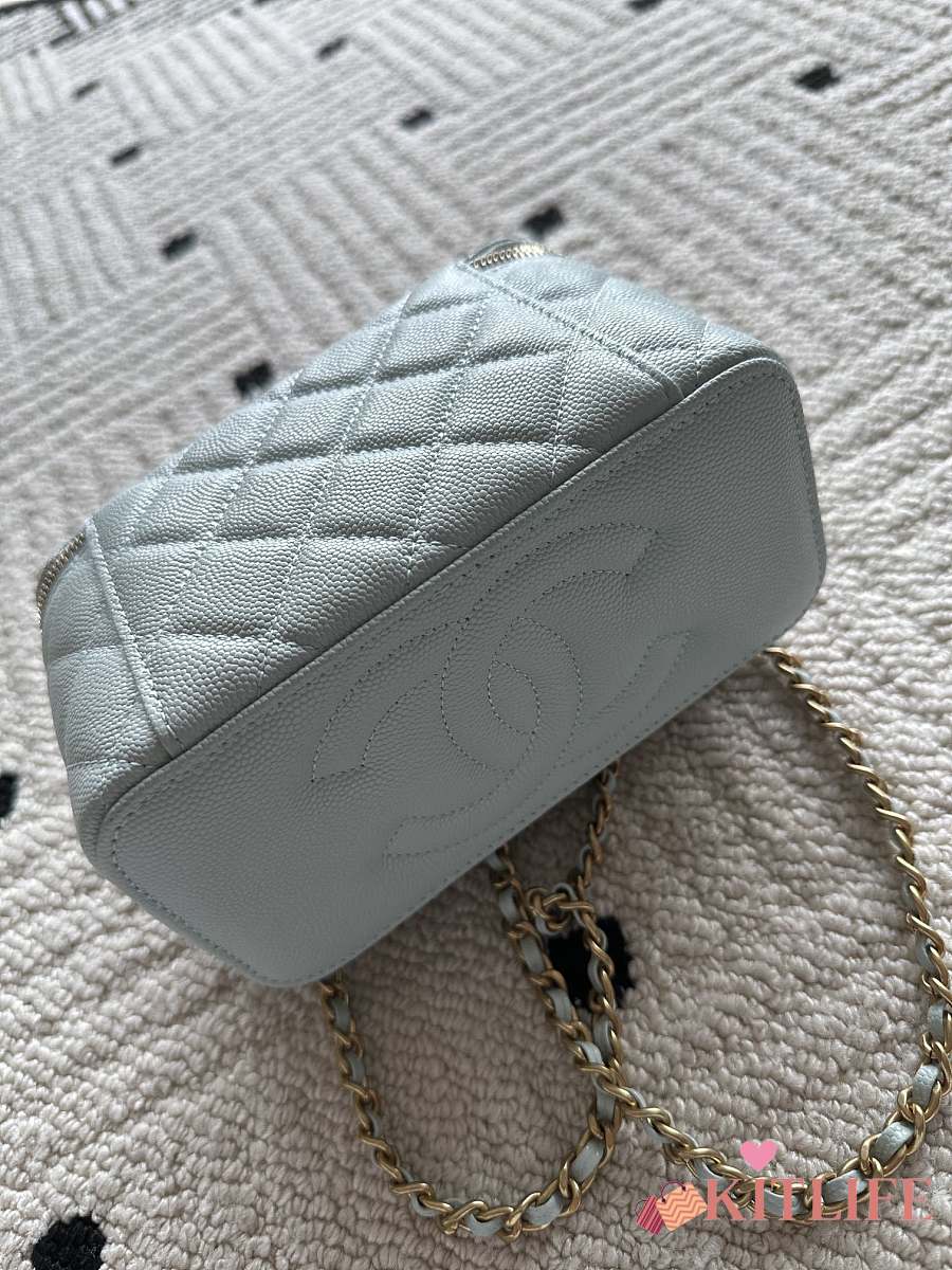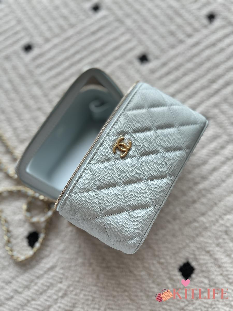 Kitlife Chanel Vanity Blue Grained Leather AP3940 17x9.5x8cm