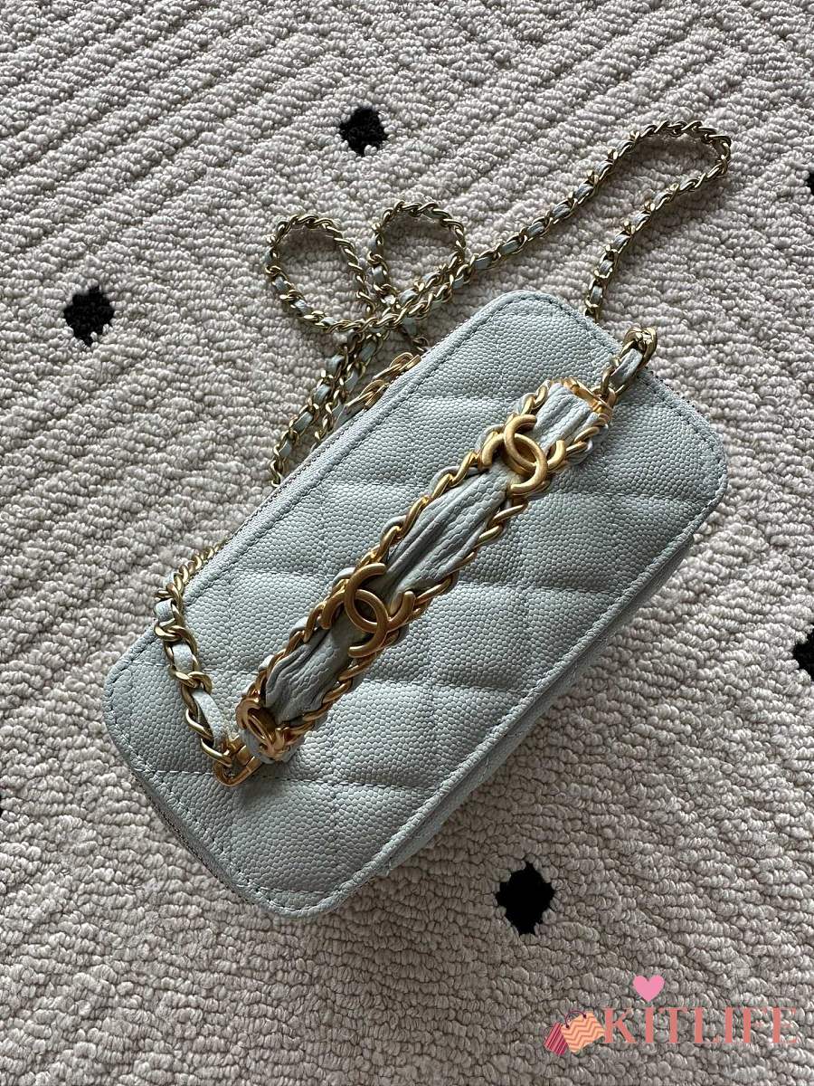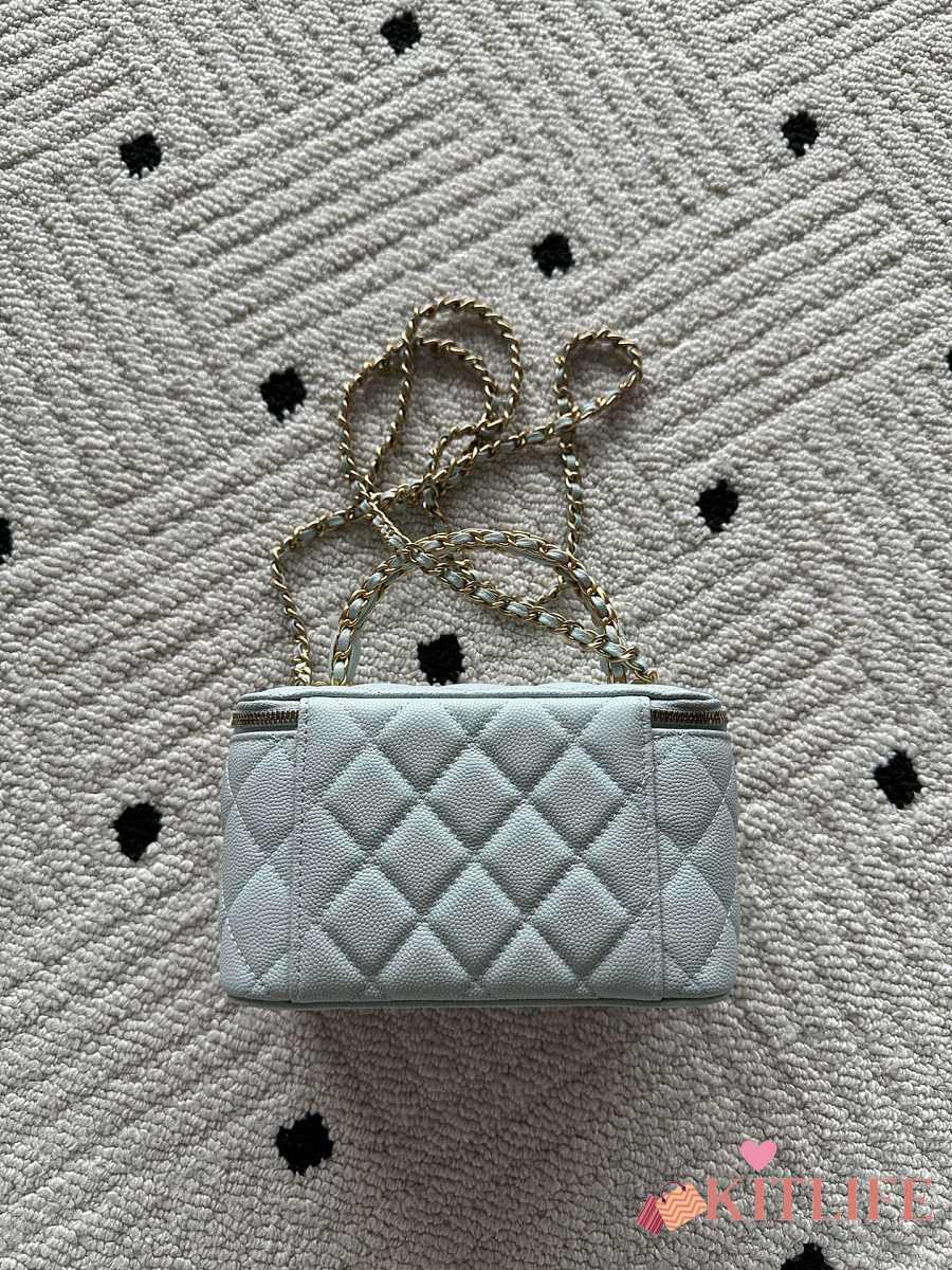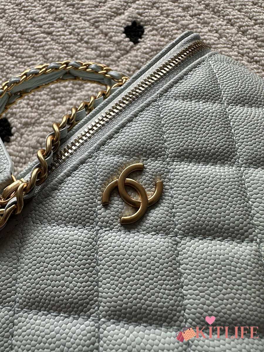 Kitlife Chanel Vanity Blue Grained Leather AP3940 17x9.5x8cm
