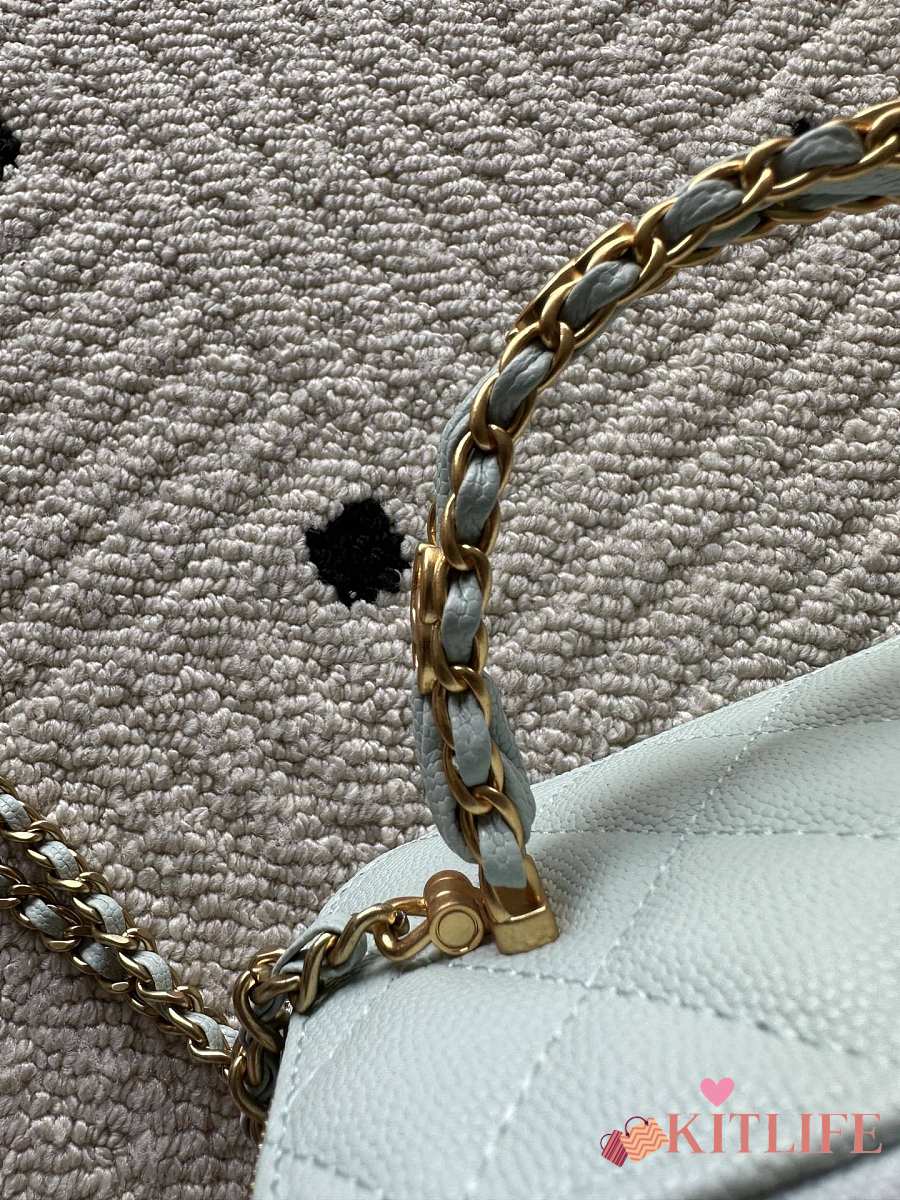 Kitlife Chanel 19 Flap Bag Wool Tweed, Calfskin & Gold-Tone Dark Blue&Beige - 26cm