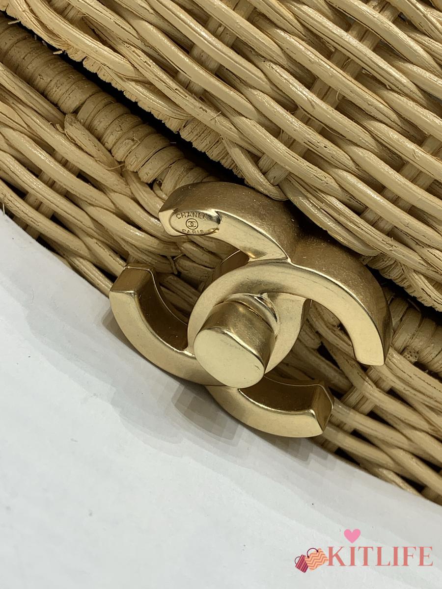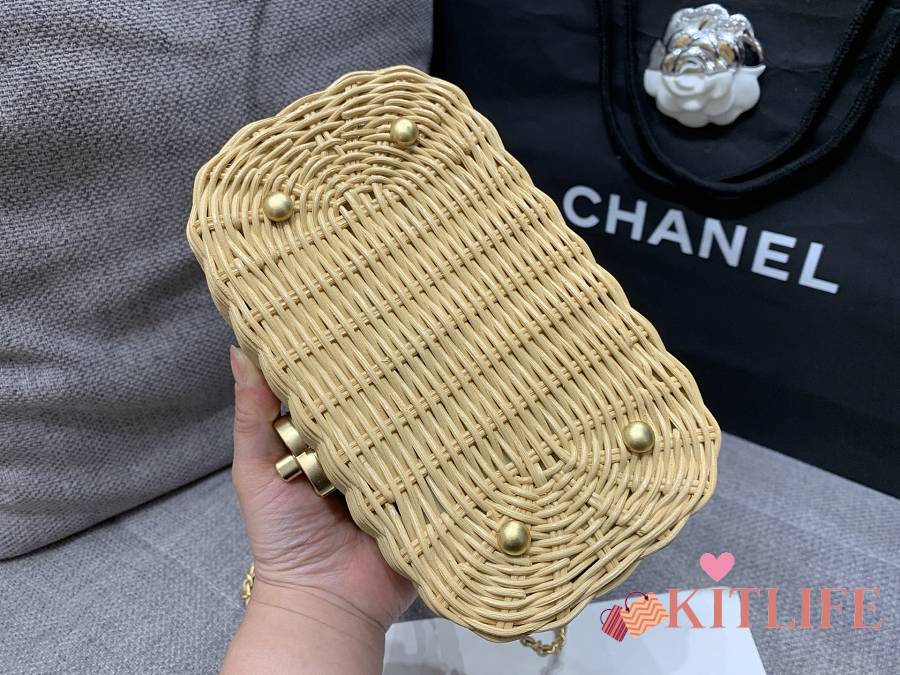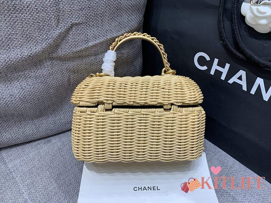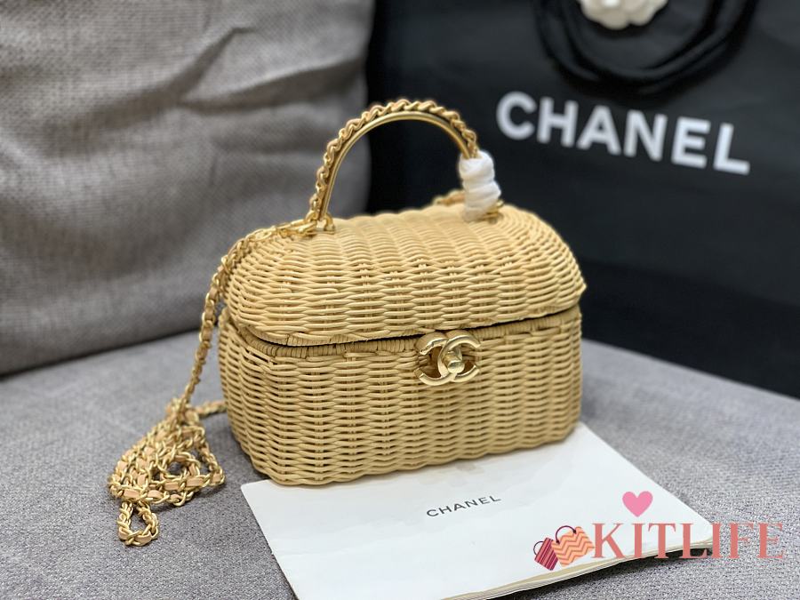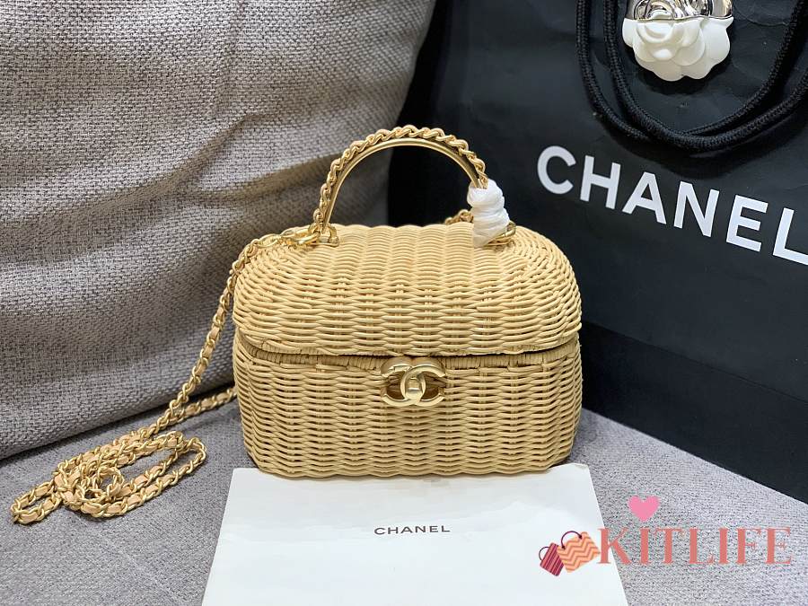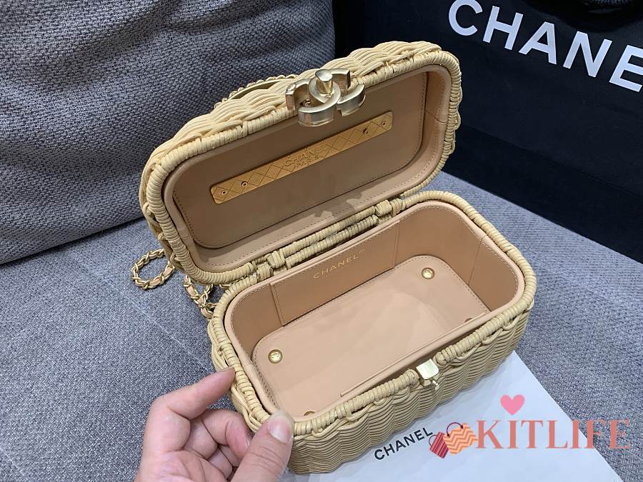 Kitlife Chanel Vanity Case Braided Rattan & Gold-Tone Metal Beige AS5993 11.5x19.5x11cm
