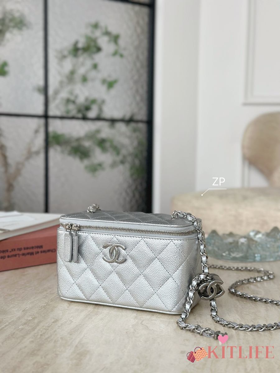 Kitlife Chanel Vanity Case Silver 3940 17x9.5x8cm