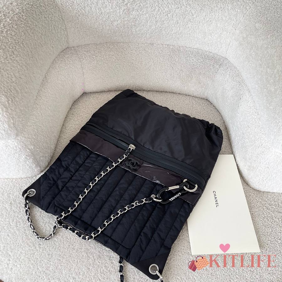 Kitlife Chanel Vintage Jennie Nylon Backpack Black 44x35cm