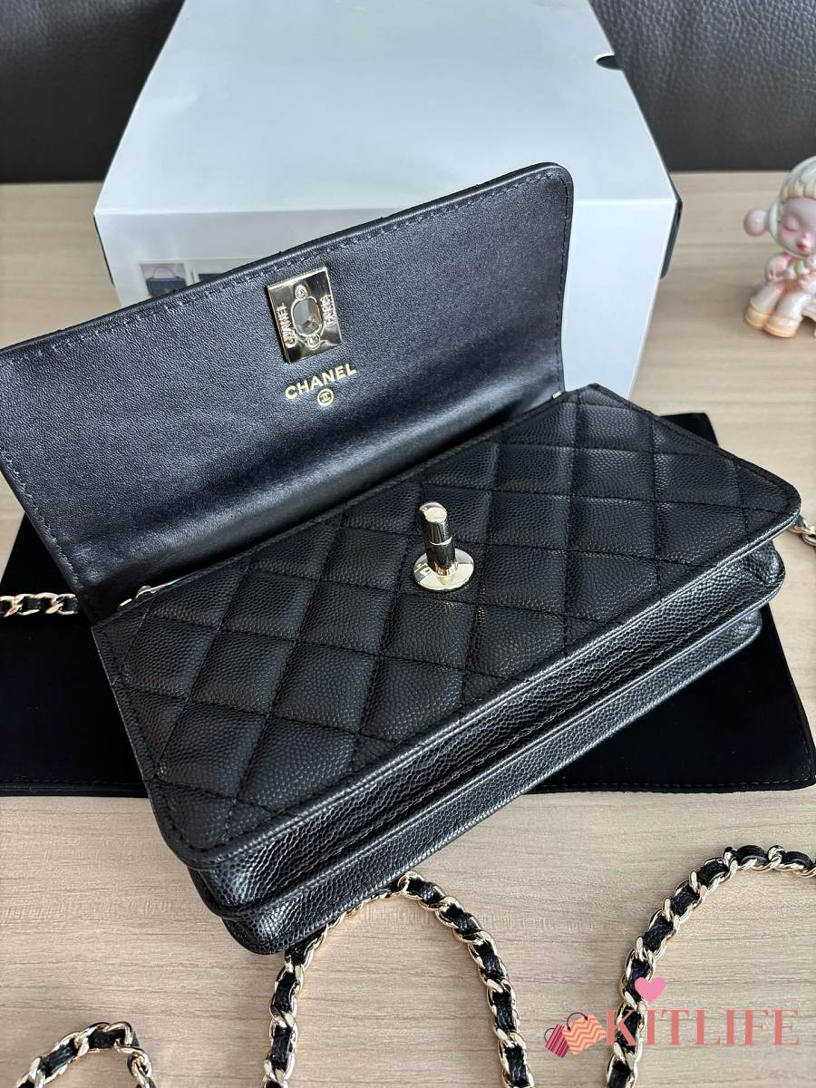 Kitlife Chanel Woc Handle Top Flap Bag Black Caviar Leather A96152 19cm