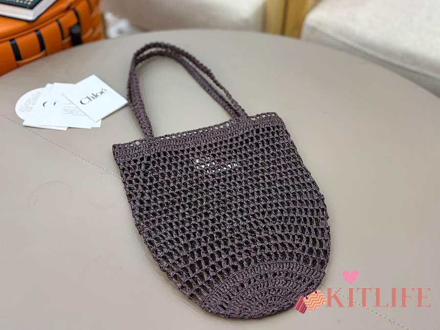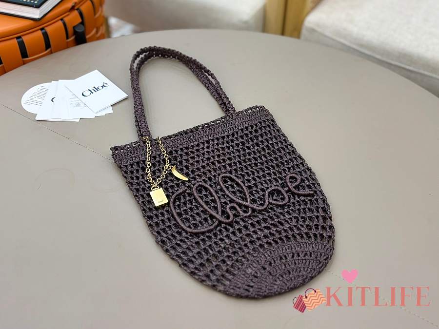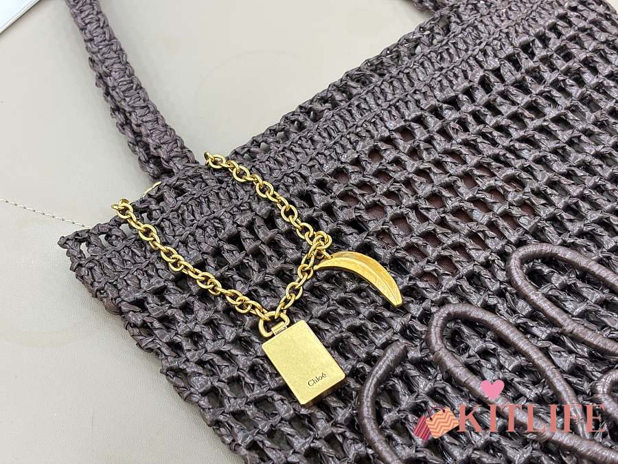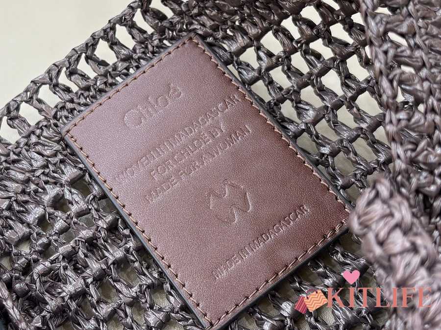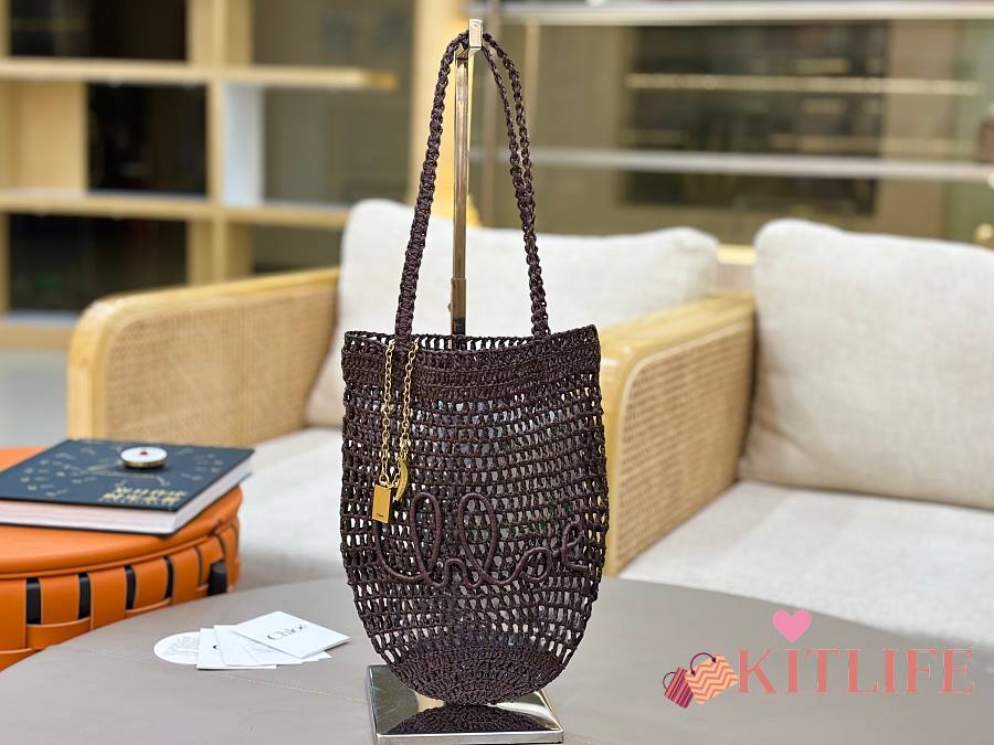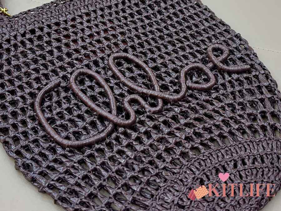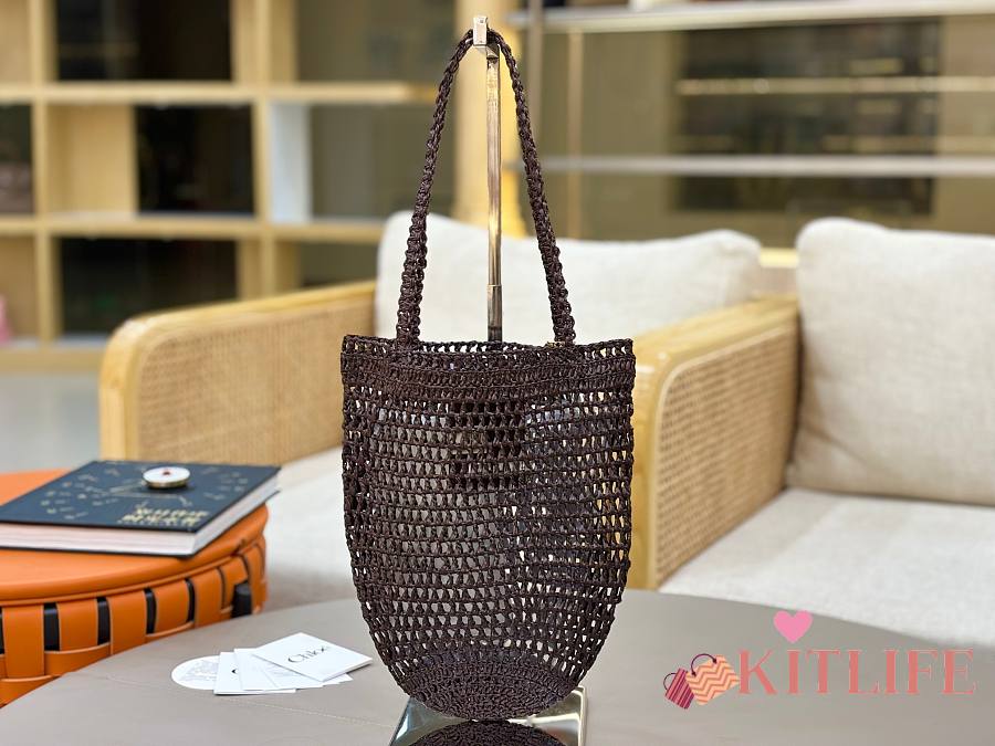 Kitlife Chloe Banana Embellished Raffia Tote Bag Dark Brown 22x30x2cm