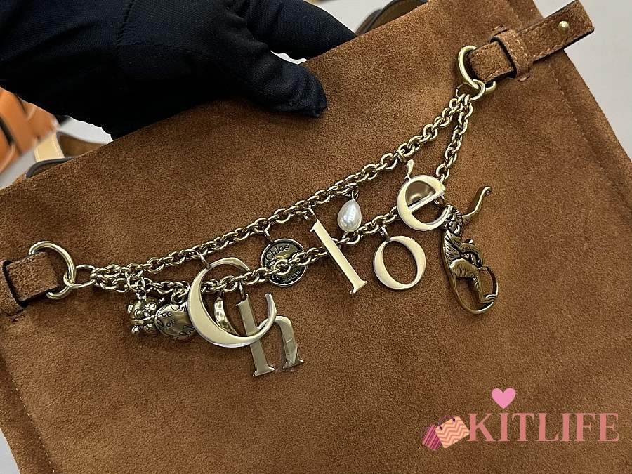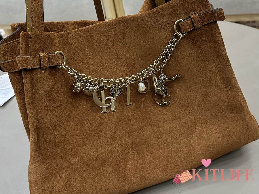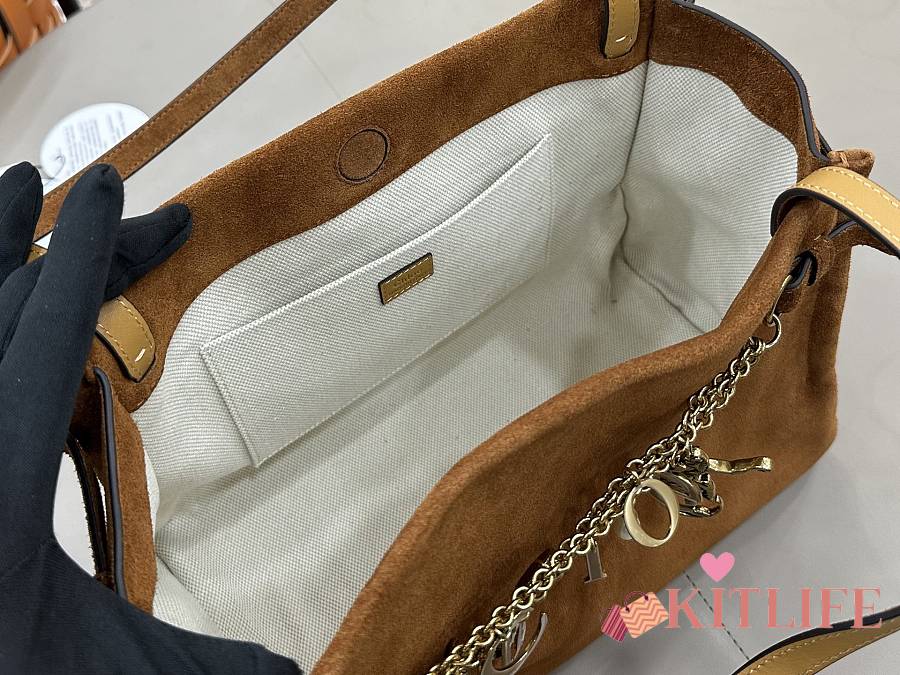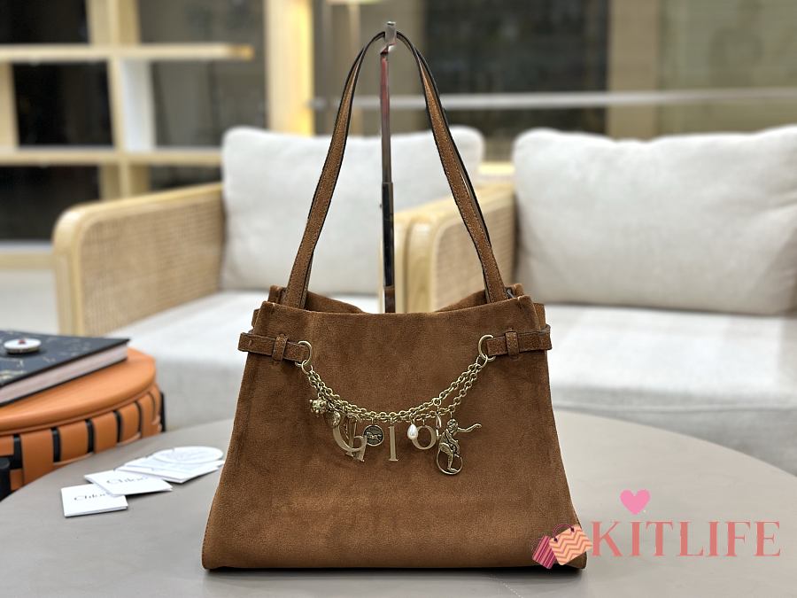 Kitlife Chloe Charms Hobo Bag In Brown Suede Leather 34x25x17cm