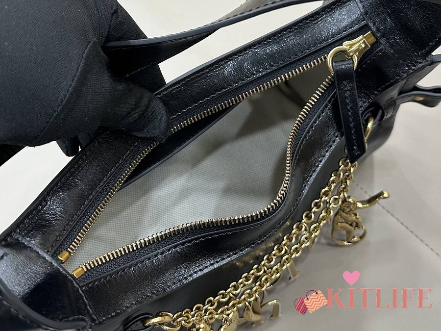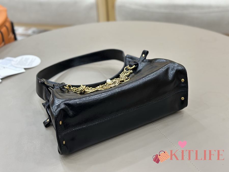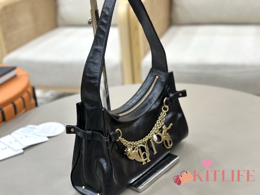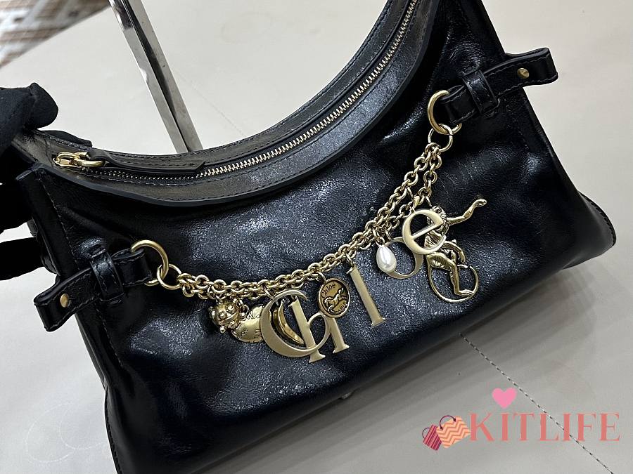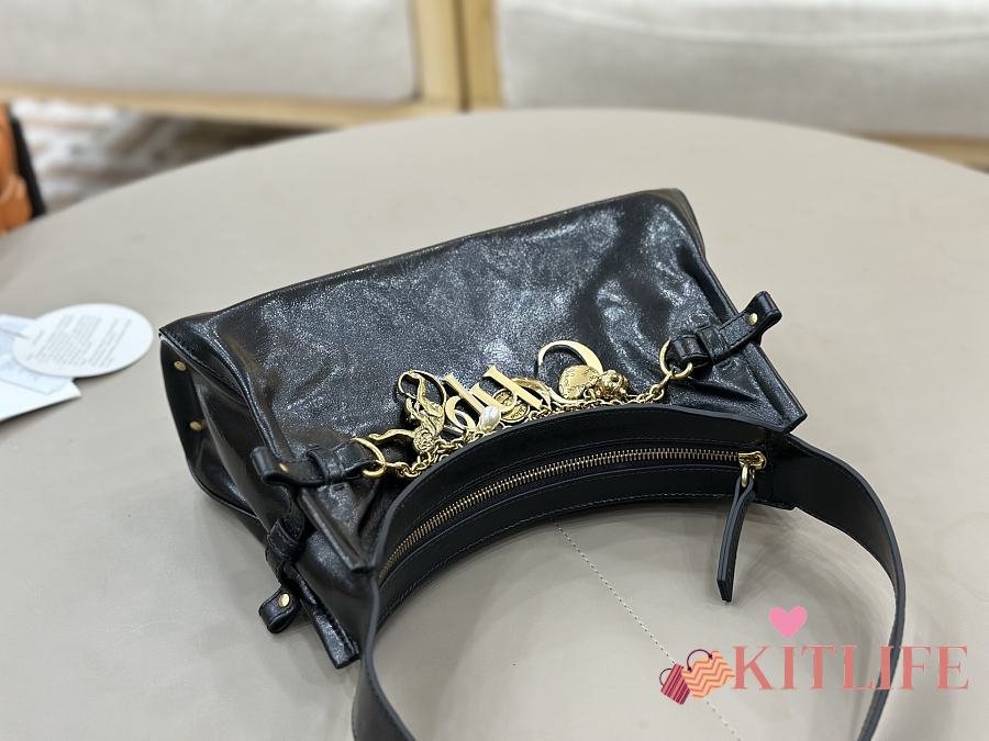 Kitlife Chloe Charms Small Hobo Bag In Black Leather 28.5x18x10cm