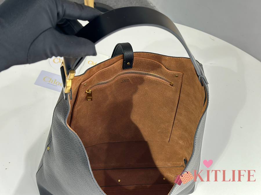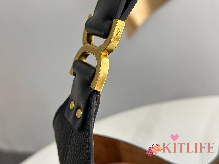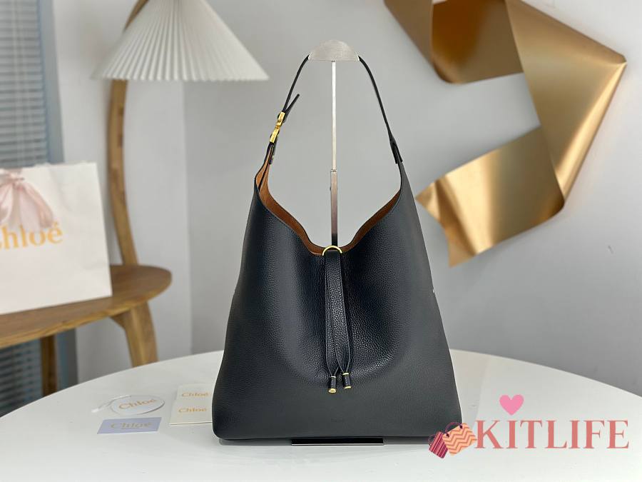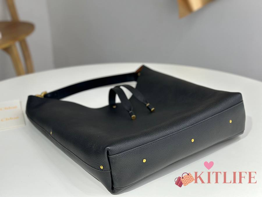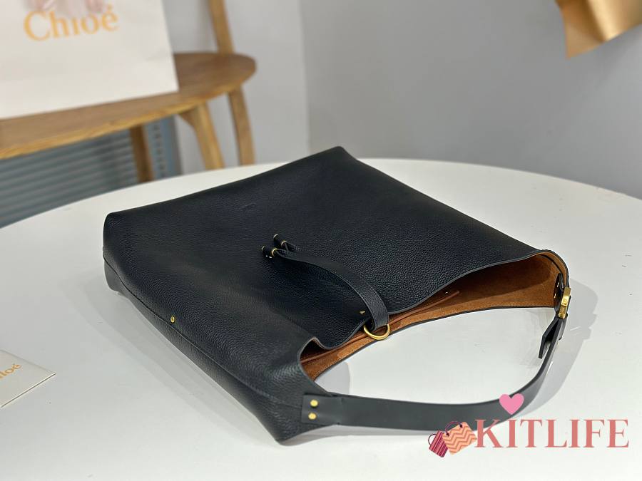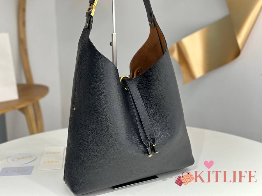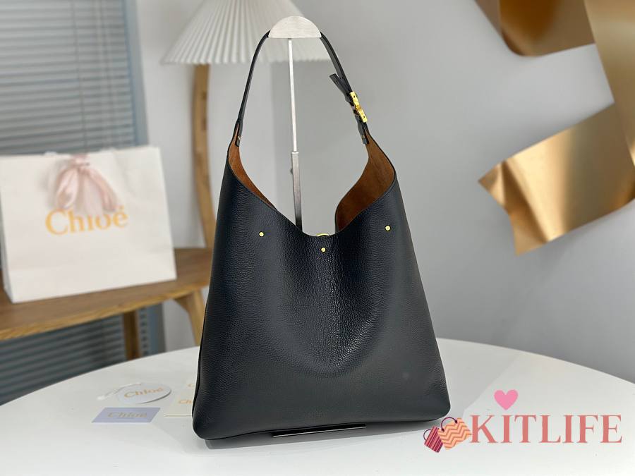 Kitlife Chloe Marcie Hobo Bag In Black Grained Leather 36x29x10cm