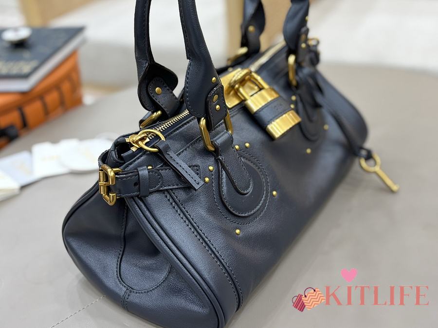Kitlife Chloe Paddington Bag In Dark Blue Leather 36x18x15cm