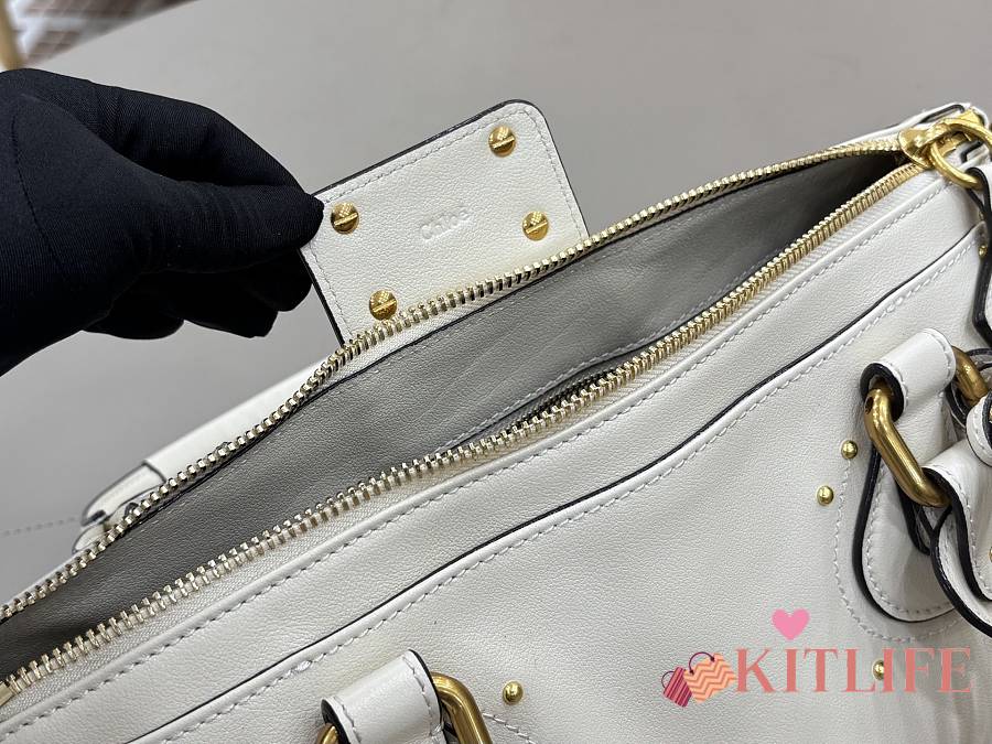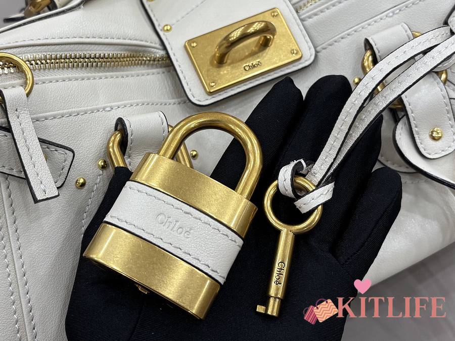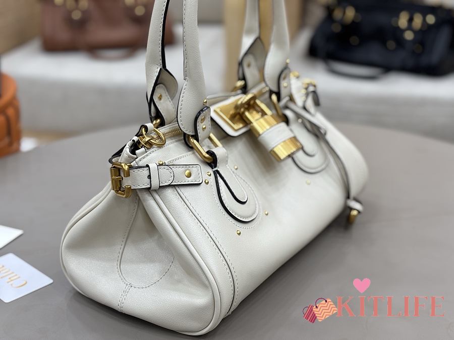 Kitlife Chloe Paddington Bag In White Leather 36x18x15cm