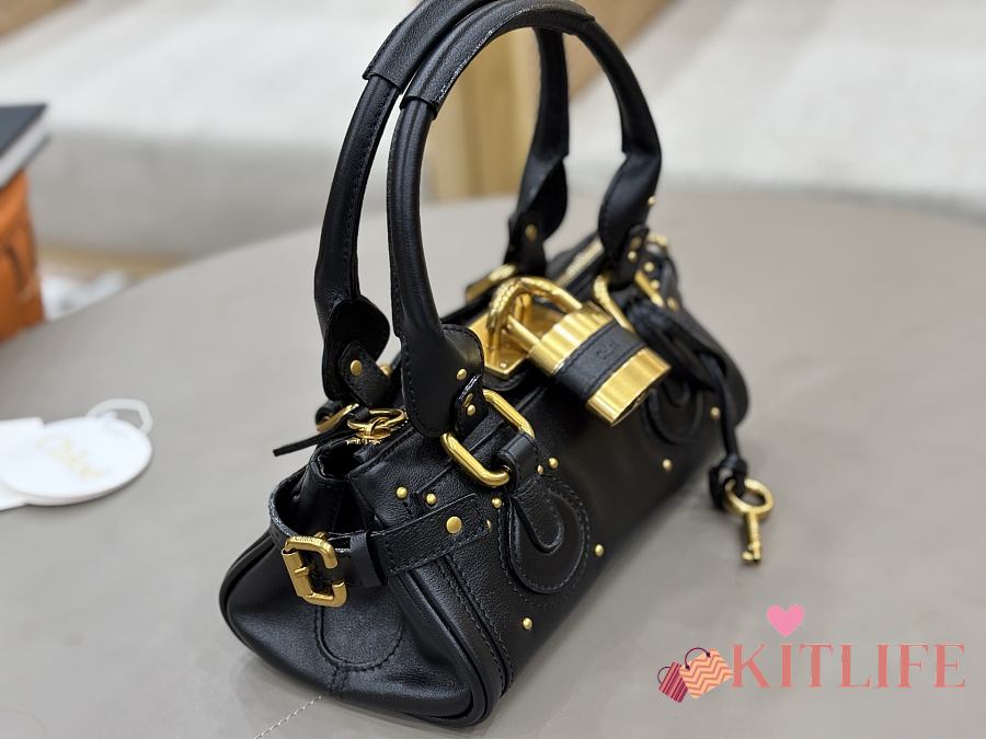 Kitlife Chloe Paddington Small Bag In Black Leather 26x12x12cm