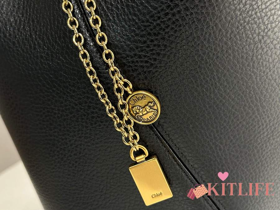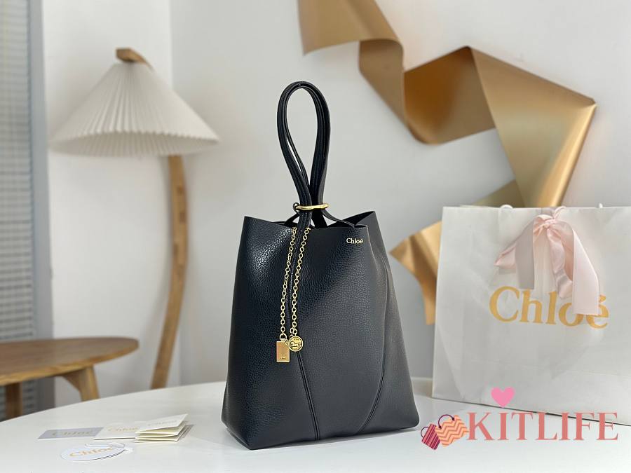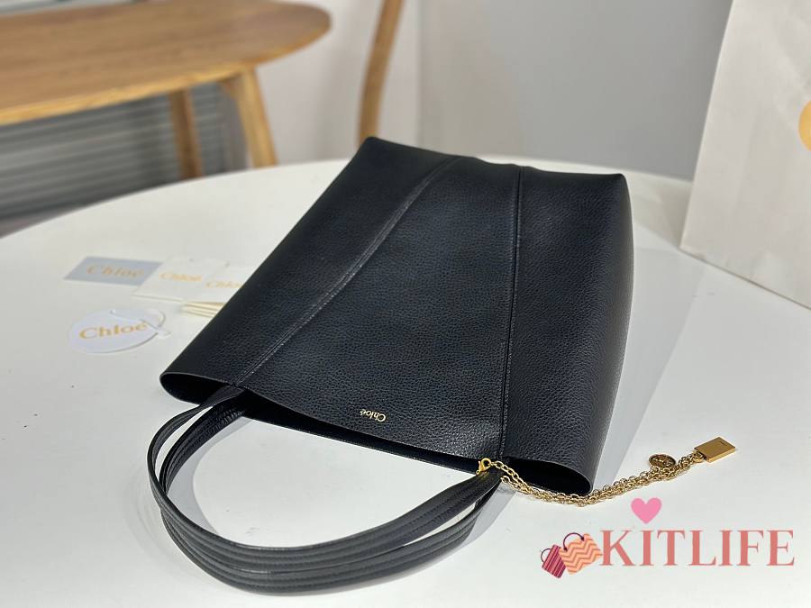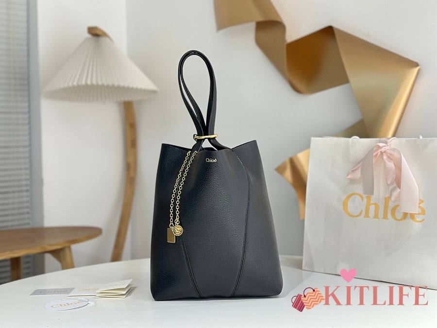 Kitlife Chloe Spin Tote Medium Bag Black Leather 27x30x14cm