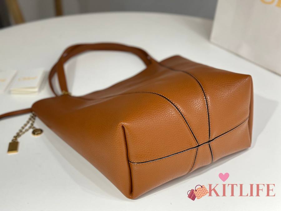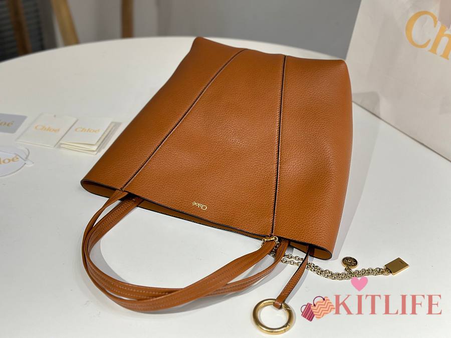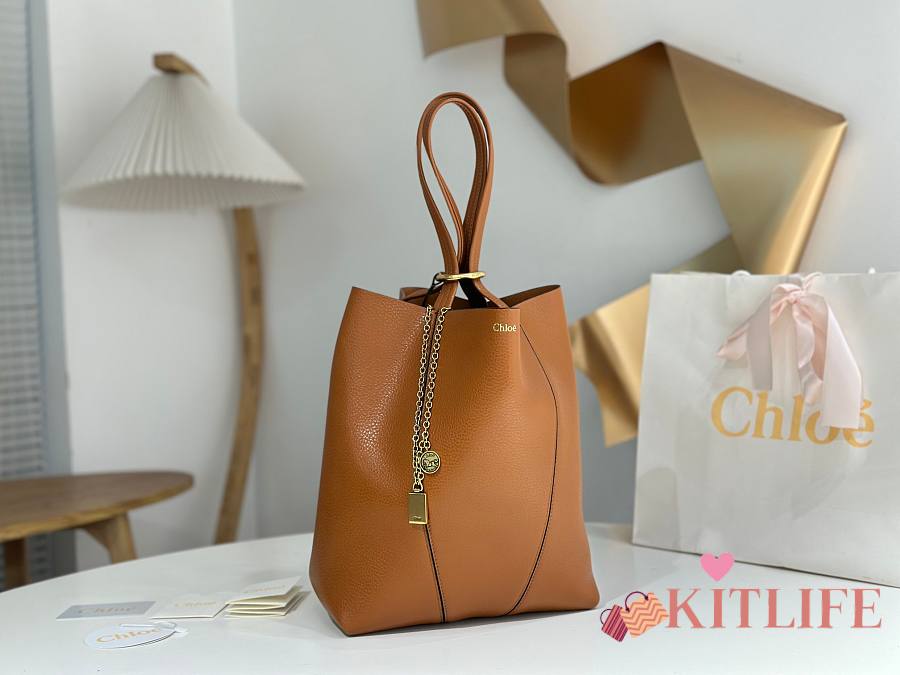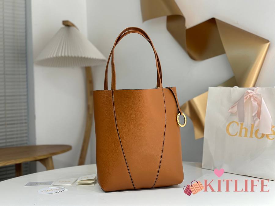 Kitlife Chloe Spin Tote Medium Bag Brown Leather 27x30x14cm