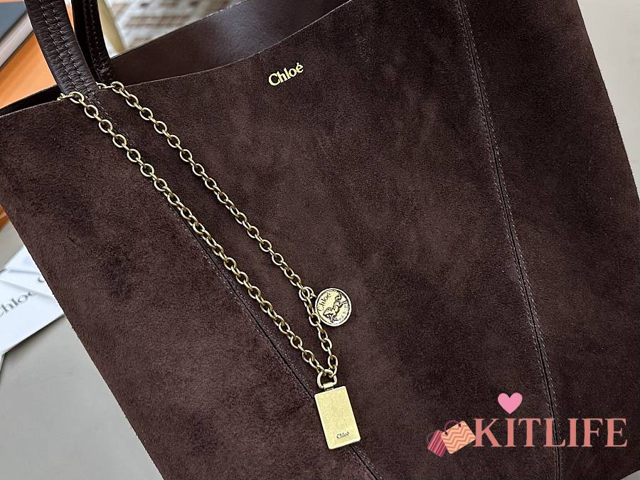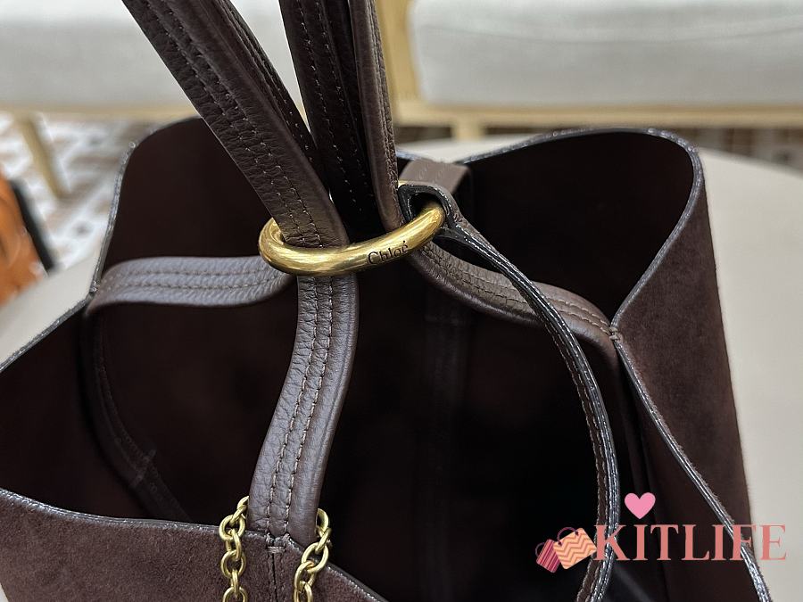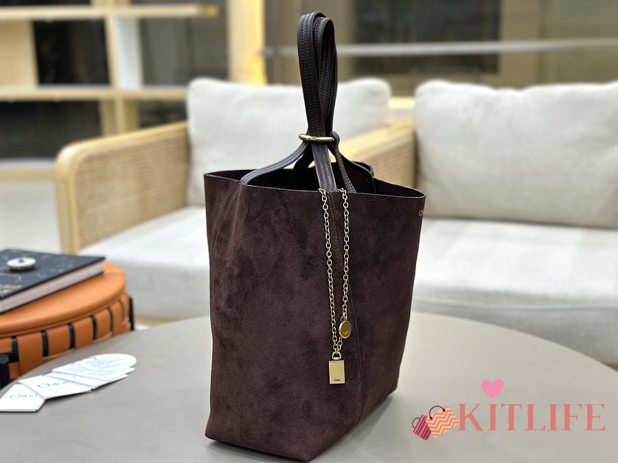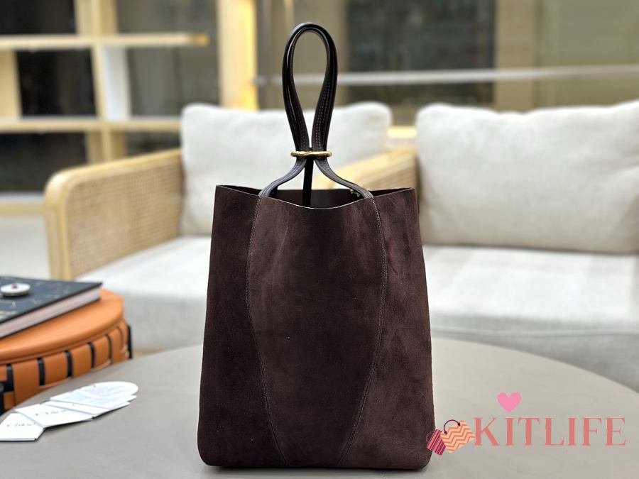 Kitlife Chloe Spin Tote Medium Bag Dark Brown Suede 27x30x14cm