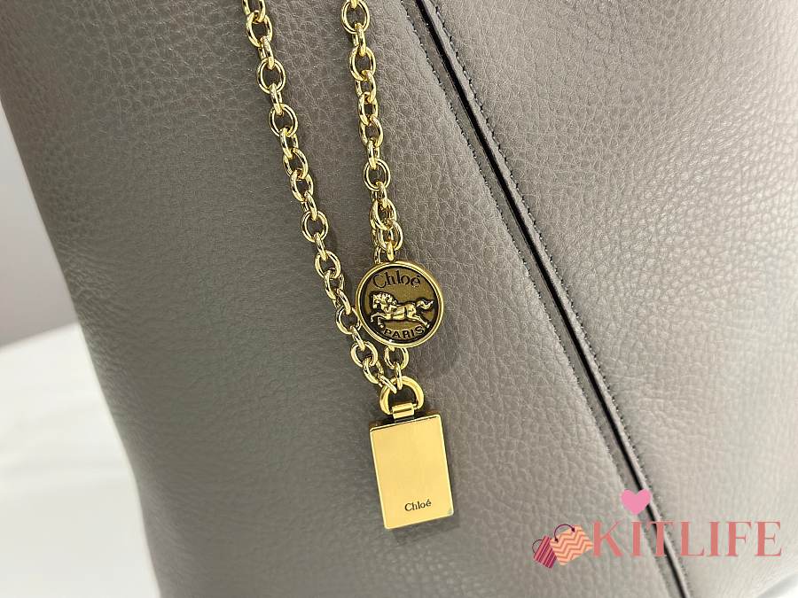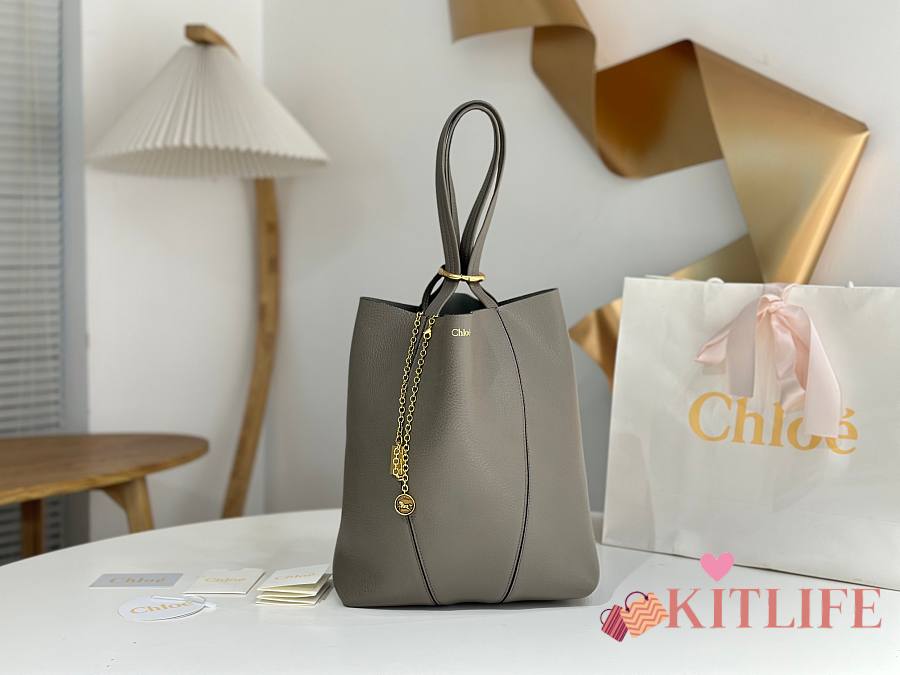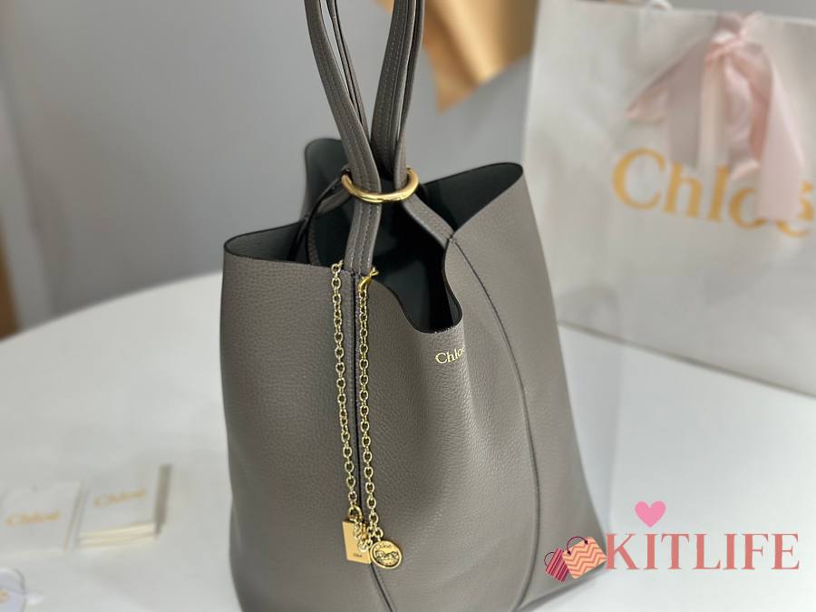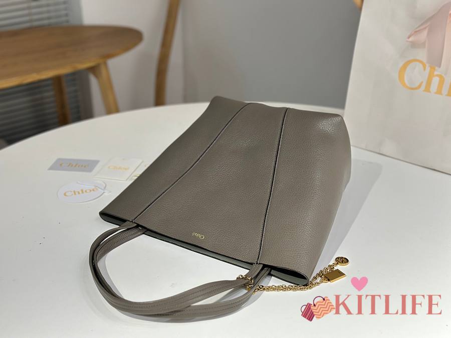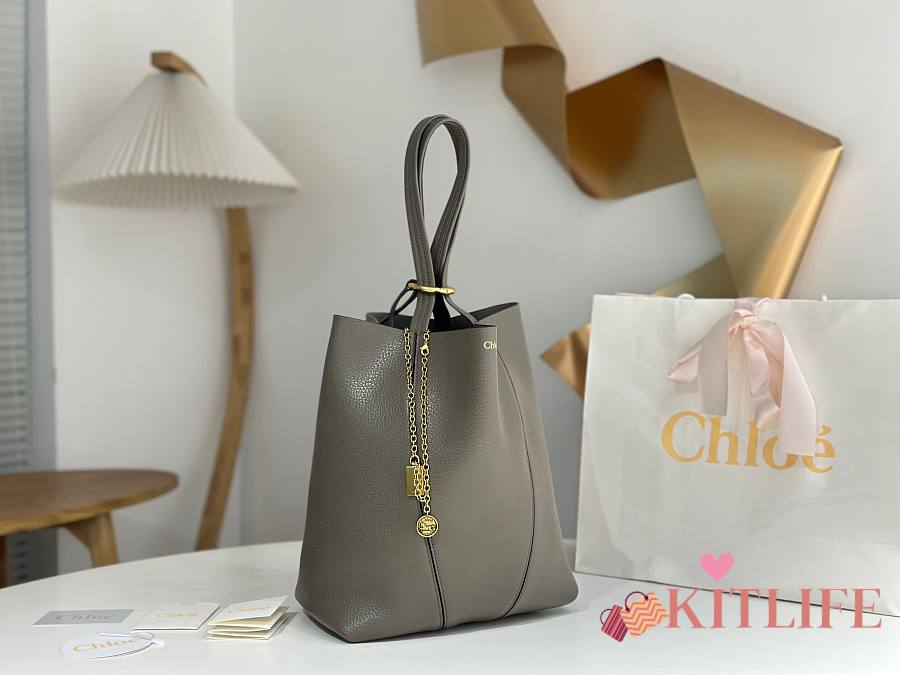 Kitlife Chloe Spin Tote Medium Bag Grey Leather 27x30x14cm